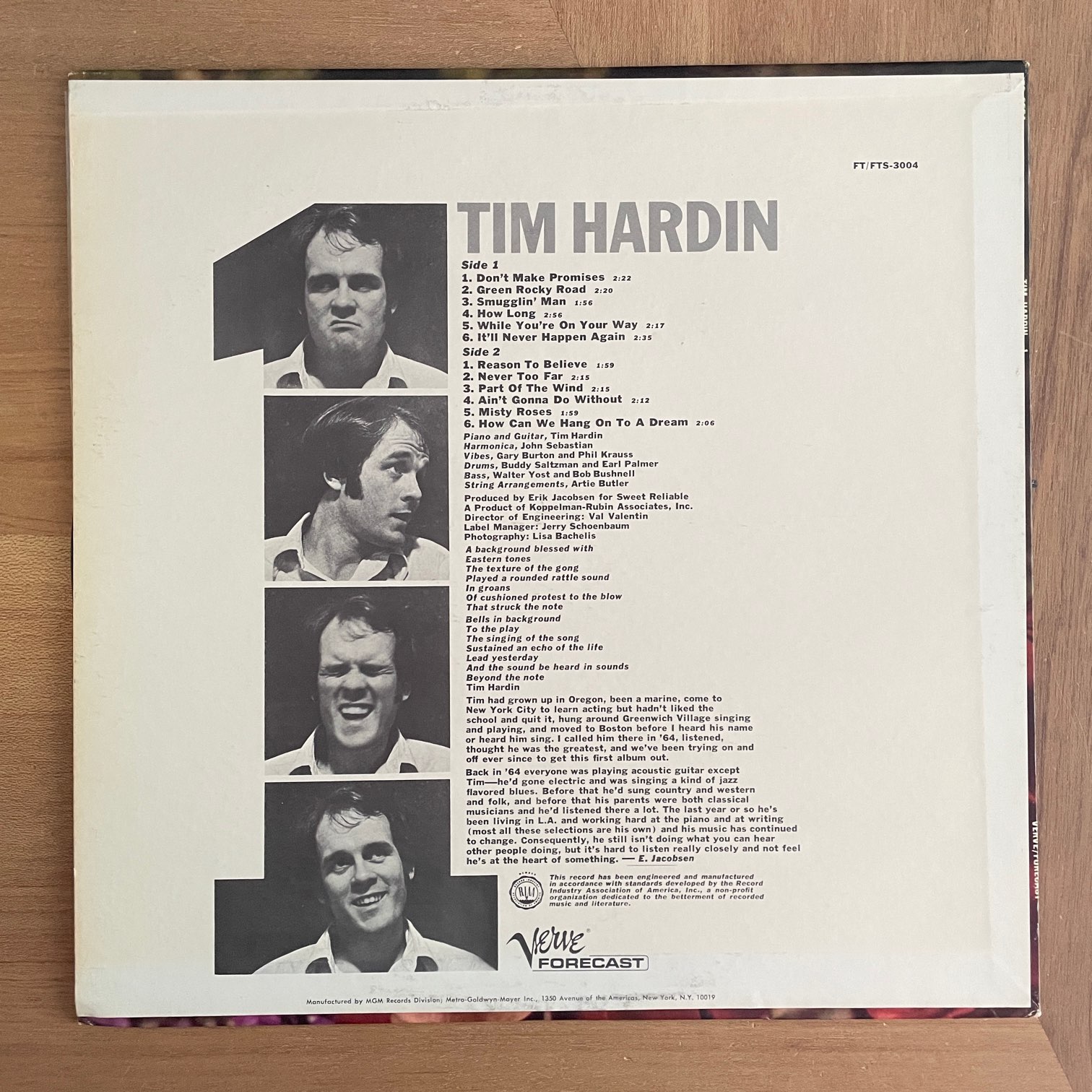 TIM HARDIN / 1 TIM HARDIN / 1 / FTS-3004 US STEREO ORIG. 66年verveからリリースされたアメリカ・ステレオ・オリジナル。60年代のNYで新鋭SSWがわいていた中で一際才能が突出していた青年のデビュー作。「MISTY ROSES」、「DON’T MAKE PROMISES」など名曲多数収録。 盤質:B+(B面スレあり少しチリつくとこあり) ジャケット:両面軽度スレ、軽度角潰れ。 試聴 DON’T MAKE PROMISES https://recordshopgg.com/wp-content/uploads/2025/10/TIM-HARDIN1.m4a MISTY ROSES https://recordshopgg.com/wp-content/uploads/2025/10/TIM-HARDIN-2.m4a (商品コード: 4933) 在庫状態 : 在庫有り ¥4,200(税込) 数量