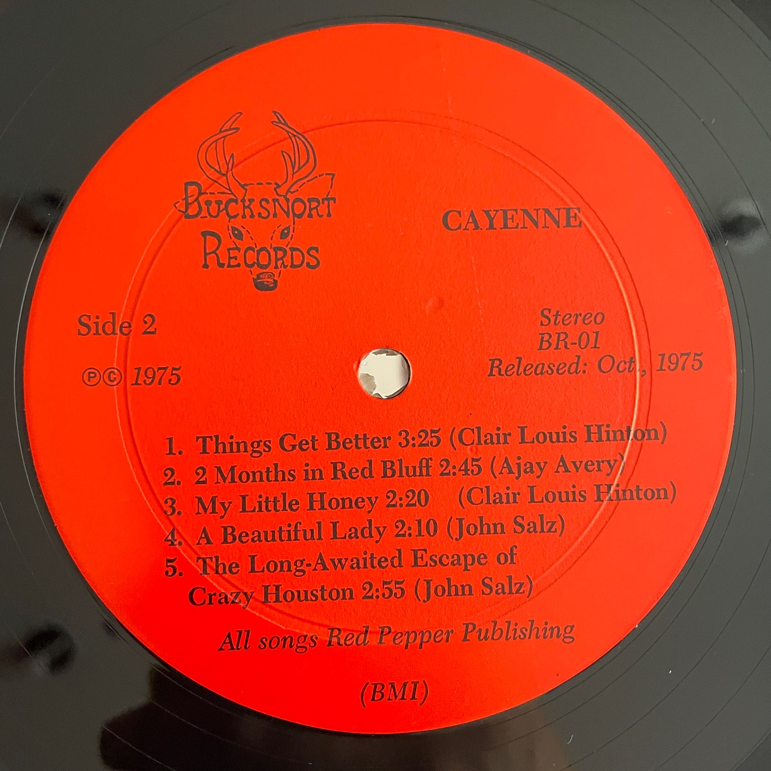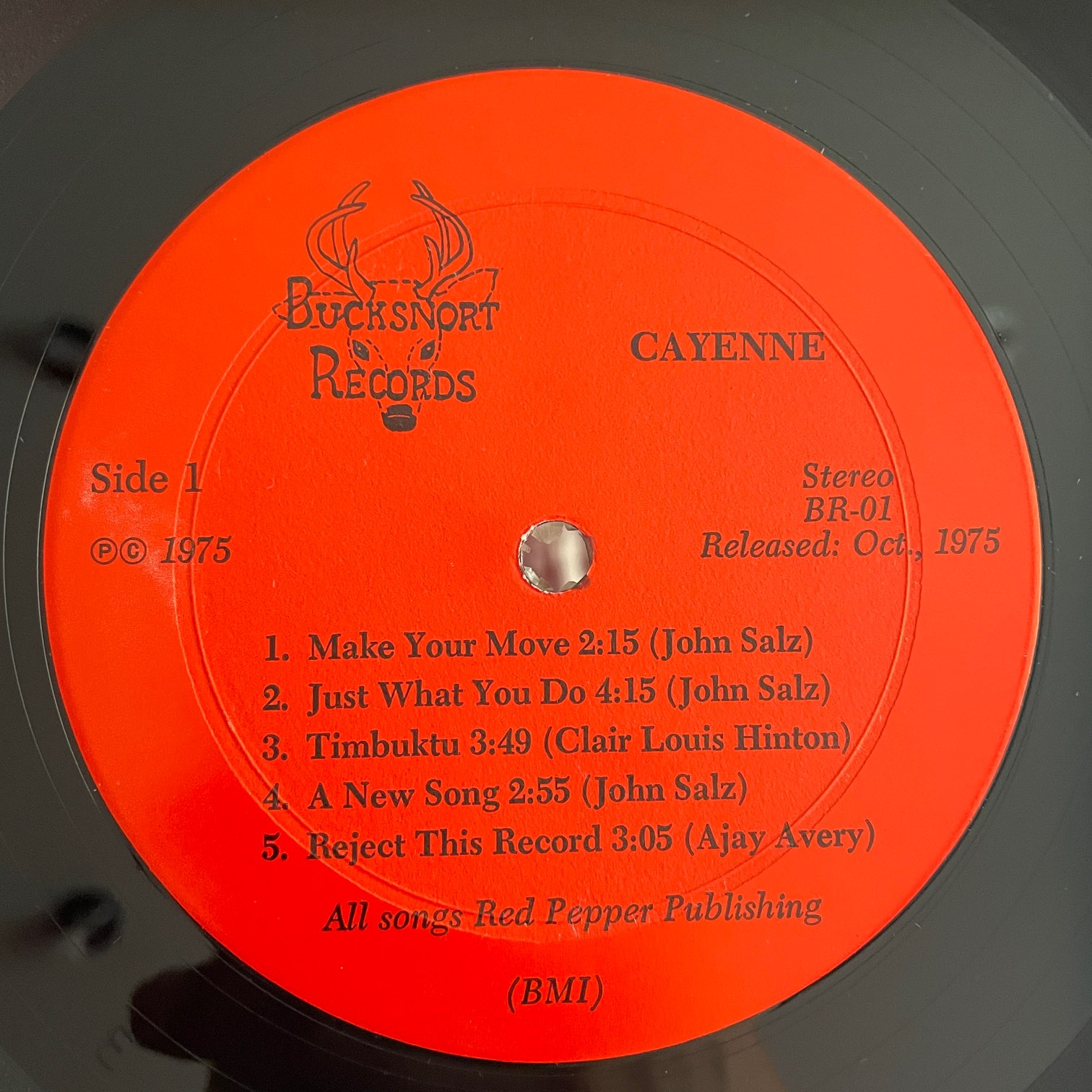 CAYENNE CAYENNE / BR-01 US ORIG. PRIVATE PRESS 75年bucksnort recordsなる自主レーベルからリリースされたアメリカ・オリジナル・自主盤。サンフランシスコのカントリーロックバンドですが、スワンプ系でジャケットも池の辺りで撮影されてていい感じと頷くばかり。 盤質:B+ ジャケット:表書き込み、両面・縁・角に軽度スレ、軽度角打ち。 試聴 MAKE YOUR MOVE https://recordshopgg.com/wp-content/uploads/2025/10/CAYENNE1.m4a JUST WHAT YOU DO https://recordshopgg.com/wp-content/uploads/2025/10/CAYENNE2.m4a (商品コード: 4938) 在庫状態 : 在庫有り ¥2,800(税込) 数量
