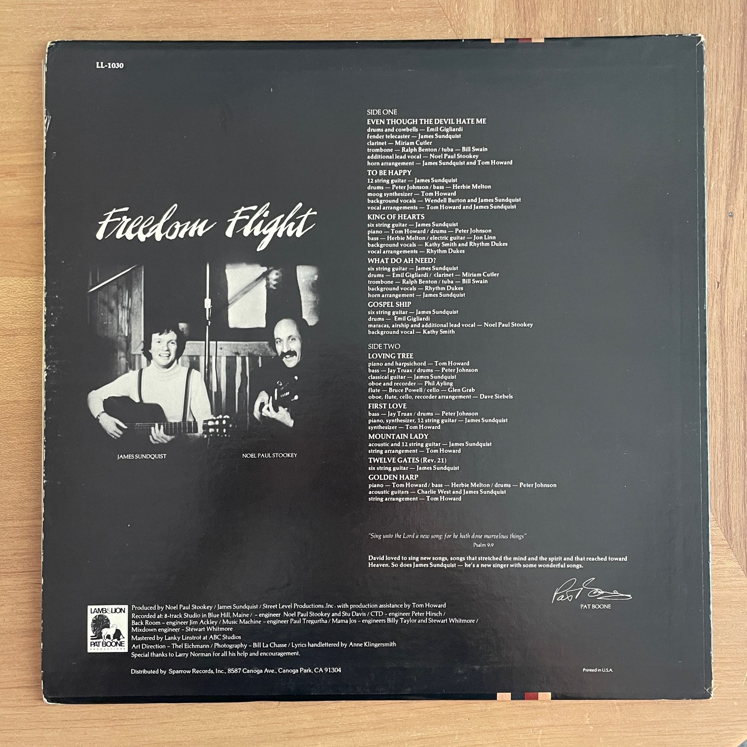 JAMES SUNDQUIST / FREEDOM FLIGHT JAMES SUNDQUIST / FREEDOM FLIGHT / LL-1030 US ORIG. 77年lamb&lionなるPAT BOONが作ったレーベルからリリースされたアメリカ・オリジナル。CCM系のレーベルで、このアルバムもCCM系のフォーク・ロック〜ソフト・ロックになってます。数曲毛色の違う曲をやってくれますが、それがまた良いです。 盤質:B+(軽度反り) ジャケット:角潰れ、軽度リングウェア。インナースリーブ底抜け。 試聴 TO BE HAPPY https://recordshopgg.com/wp-content/uploads/2025/10/JAMES-SUNDQUIST1.m4a KING OF HEARTS https://recordshopgg.com/wp-content/uploads/2025/10/JAMES-SUNDQUIST2.m4a (商品コード: 4939) 在庫状態 : 在庫有り ¥3,800(税込) 数量