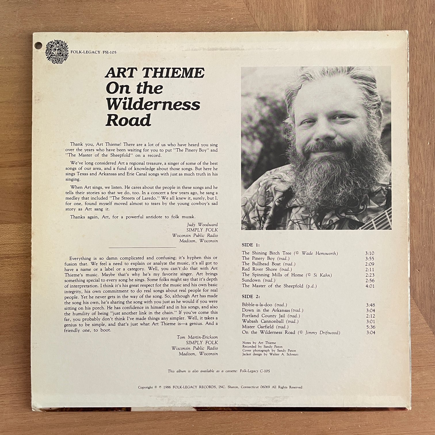 ART THIEME / ON THE WILDERNESS ROAD ART THIEME / ON THE WILDERNESS ROAD / FSI-105 US ORIG. 86年folk legacyからリリースされたアメリカ・オリジナル。アメリカのフォークシンガーで、このアルバムでもほぼトラッドをギターの弾き語りですが、3曲バンジョーでの弾き語りも披露してます。 盤質:B+(波打ちあり) ジャケット:パンチホール、縁・角に軽度スレ、軽度リングウェア、裏縁周囲軽度色褪せ。冊子あり。 試聴 THE PINERY BOY https://recordshopgg.com/wp-content/uploads/2025/10/ON-THE-WILDERNESS-ROAD-1.m4a PORTLAND COUNTY JAIL https://recordshopgg.com/wp-content/uploads/2025/10/ON-THE-WILDERNESS-ROAD-2.m4a (商品コード: 4995) 在庫状態 : 在庫有り ¥1,800(税込) 数量
