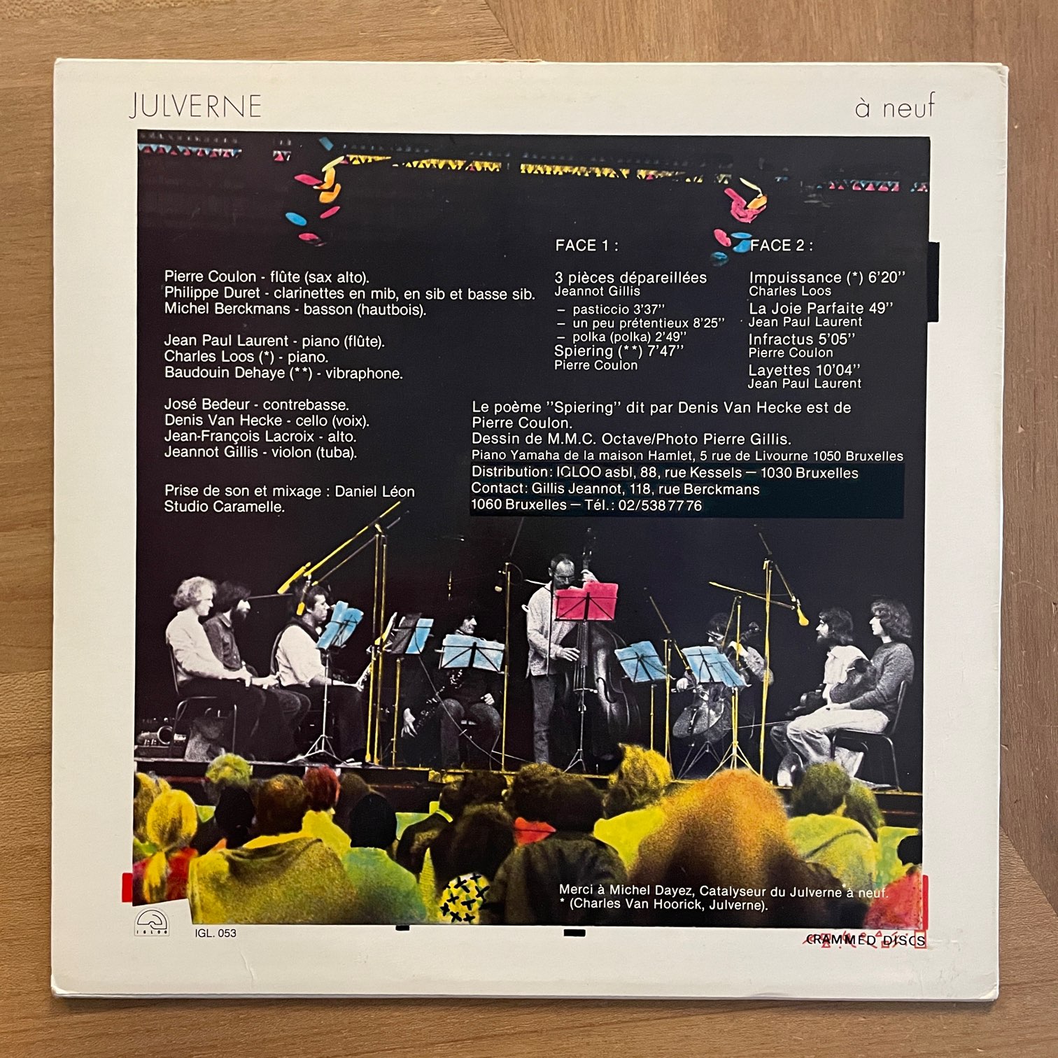87年iglooからリリースされたベルギー・再発盤。フルート・作曲のPIERRE COULONが中心人物のようで、アルバムによって参加メンバーが流動的に変化してます。このアルバムでは好きなジャズ・ピアニストのCHARLES LOOSが参加してるのが個人的に嬉しい、アヴァンギャルドな室内楽グループの2ndアルバム。