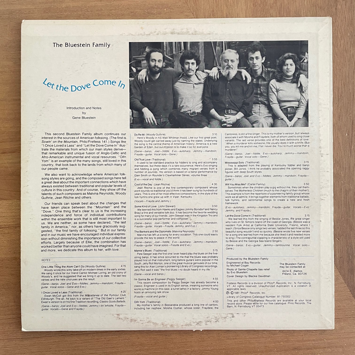 THE BLUESTEIN FAMILY / LET THE DOVE COME IN THE BLUESTEIN FAMILY / LET THE DOVE COME IN / FR156 US ORIG. 81年マイナーレーベルfretlessからリリースされたアメリカ・オリジナル。FAMILYと名乗っているので家族で参加してますが、裏に写真あります。男女ともにリードボーカル取って、トラッドからWOODY GUTHRIE,JEAN RITCHIEなどのカバーを披露してます。 盤質:A- ジャケット:5cm底抜け、リングウェア、縁・角に軽度スレ。 試聴 I ONCE LOVED A LASS https://recordshopgg.com/wp-content/uploads/2025/11/THE-BLUESTEIN-FAMILY1.m4a MAMIE’S BLUES https://recordshopgg.com/wp-content/uploads/2025/11/THE-BLUESTEIN-FAMILY2.m4a (商品コード: 5022) 在庫状態 : 在庫有り ¥2,300(税込) 数量