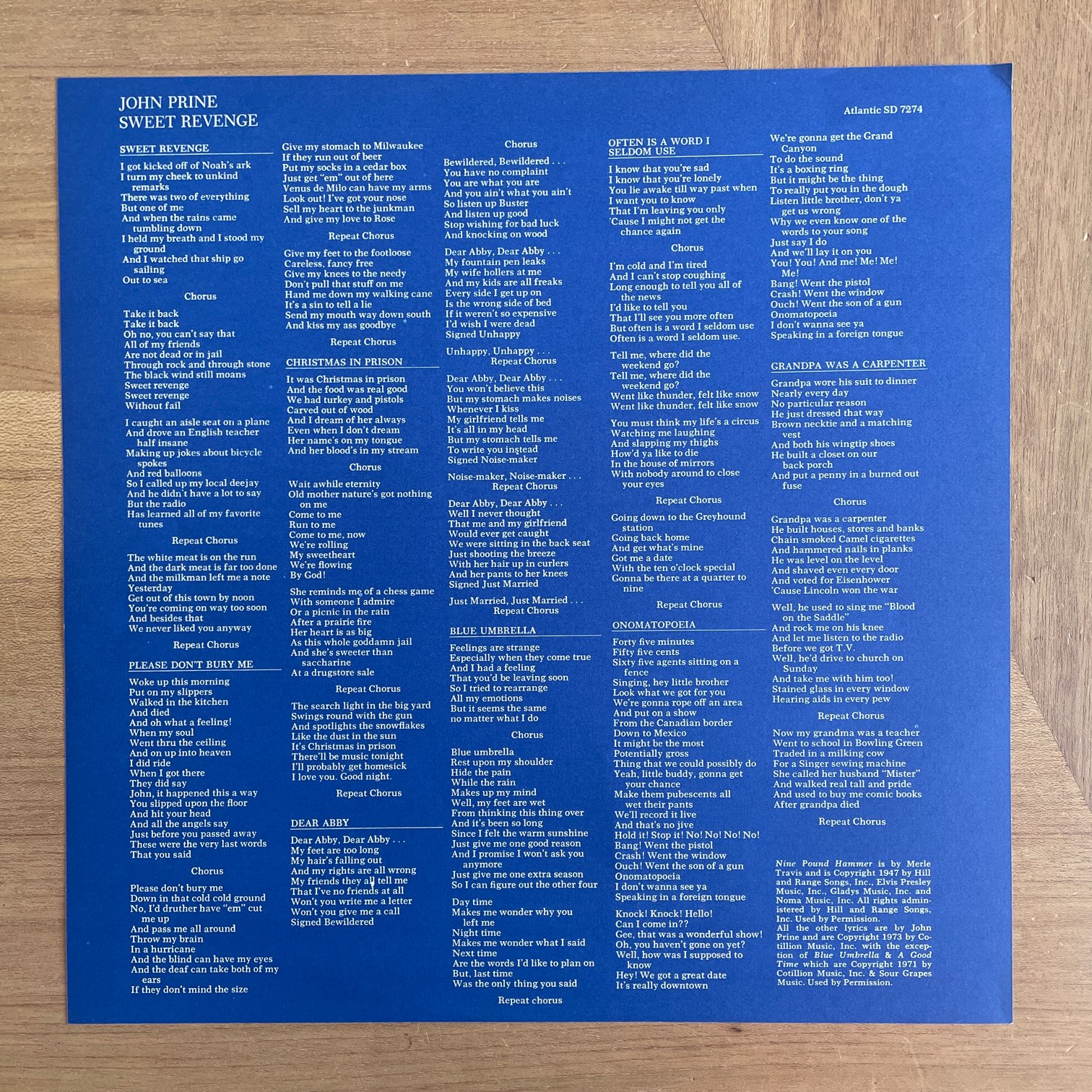 JOHN PRINE / SWEET REVENGE / SD7274 US REPRESS