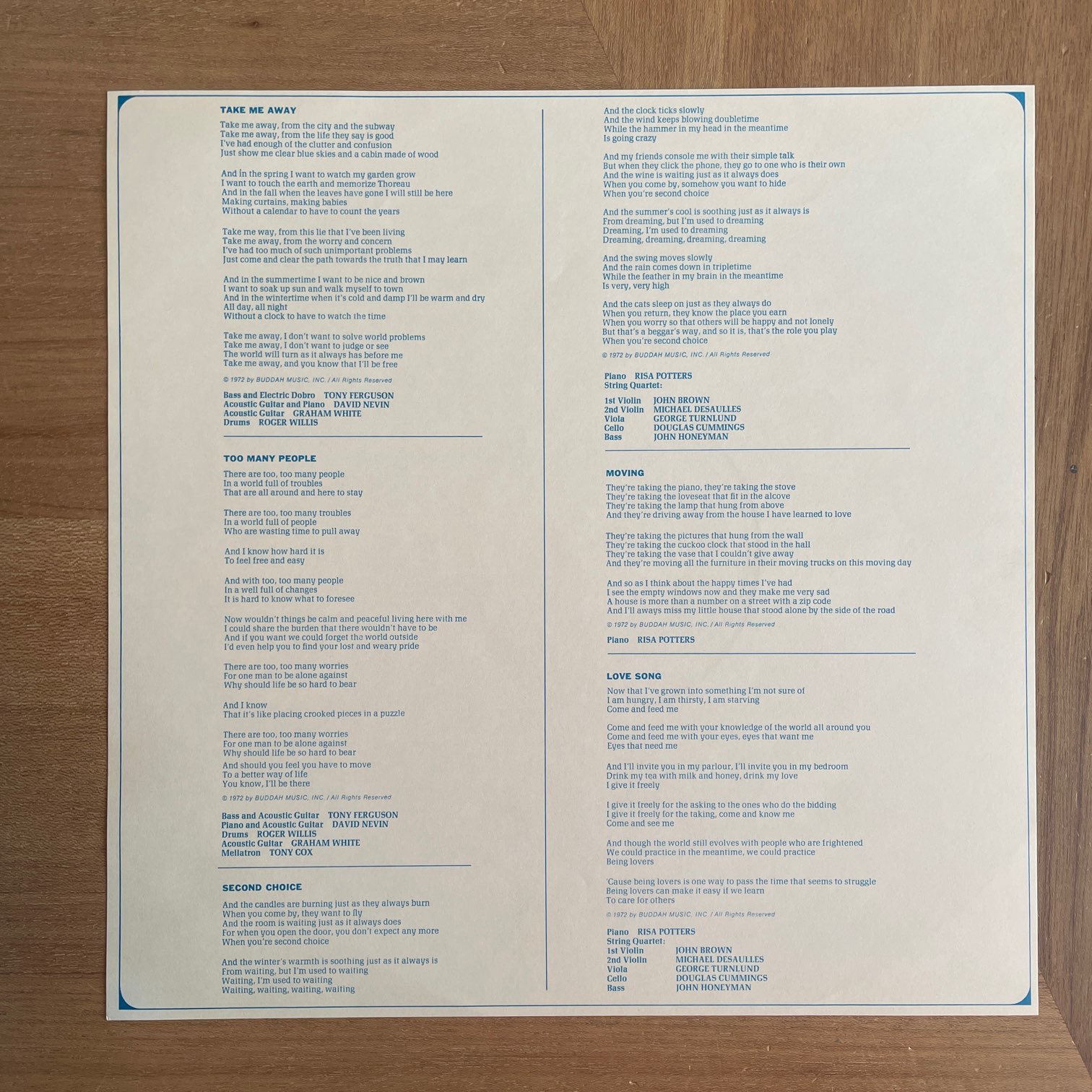 72年buddah recordsからリリースされたアメリカ・オリジナル・プロモ盤。アメリカのSSWの2nd。渡英してロック・バンド「CAPABILTY BROWN」の全面サポートを受けてのイギリス録音盤。ジャケットも雰囲気のあるフォークロック。