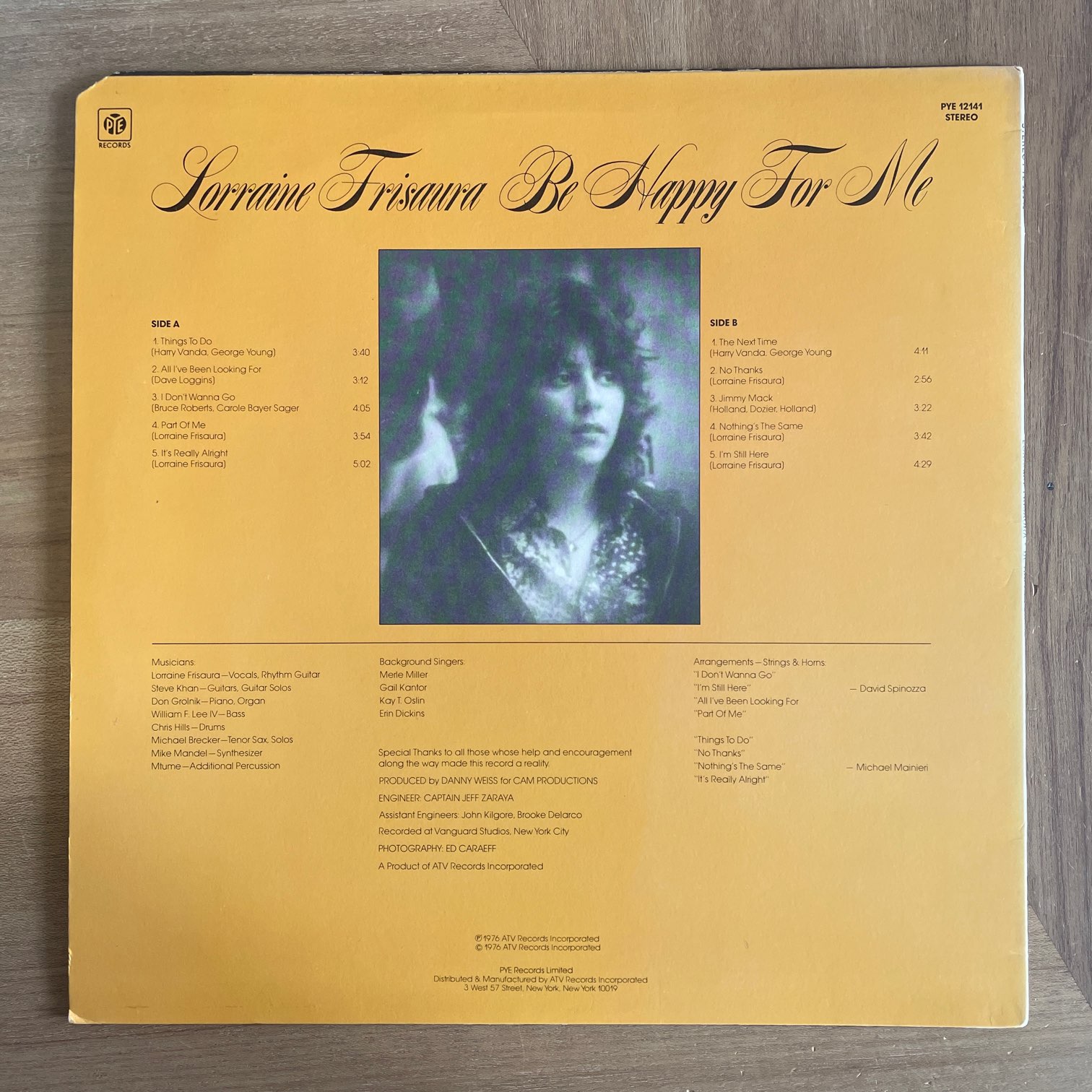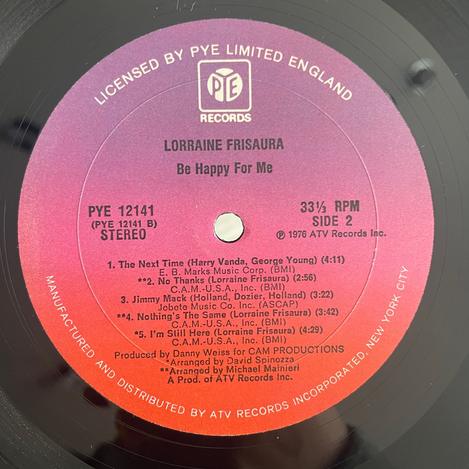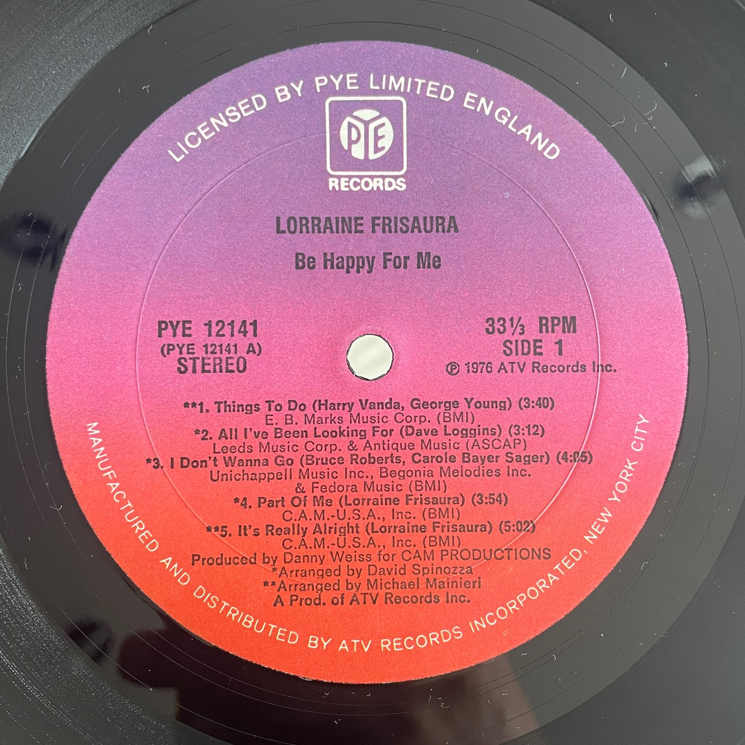 LORRAINE FRISAURA / BE HAPPY FOR ME LORRAINE FRISAURA / BE HAPPY FOR ME / PYE12141 US ORIG. 76年pyeからリリースされたアメリカ・オリジナル。イギリスのSSWによる唯一作?ジャズマンたちがバックをつとめてのNY録音盤。少しソウルフルなボーカルを聴かせてくれます。 盤質:A- ジャケット:カット盤、2cm底ヒビ、背軽度しわ。 試聴 ALL I’VE BEEN LOOKING FOR https://recordshopgg.com/wp-content/uploads/2025/11/LORRAINE-FRISAURA1.m4a NO THANKS https://recordshopgg.com/wp-content/uploads/2025/11/LORRAINE-FRISAURA2.m4a (商品コード: 5088) 在庫状態 : 在庫有り ¥1,500(税込) 数量