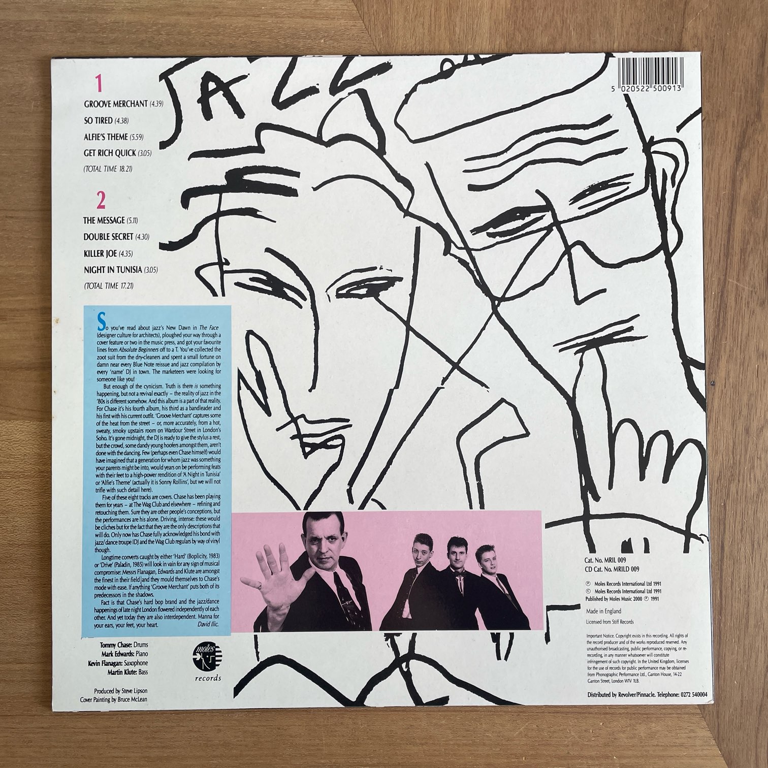 91年moles recordsからリリースされたイギリス・再発盤。オリジナルは表の人物が緑色ですが、青色もいいですね。内容はイギリスのドラマー、トミー・チェイスによるハードバップ。未聴の人は驚くかもしれないくらいかっこいいです。オリジナルもですが、このアルバムはラベルの表記と反対がプレスされてます。(A面と記載されてる方がB面。B面はその逆にA面)