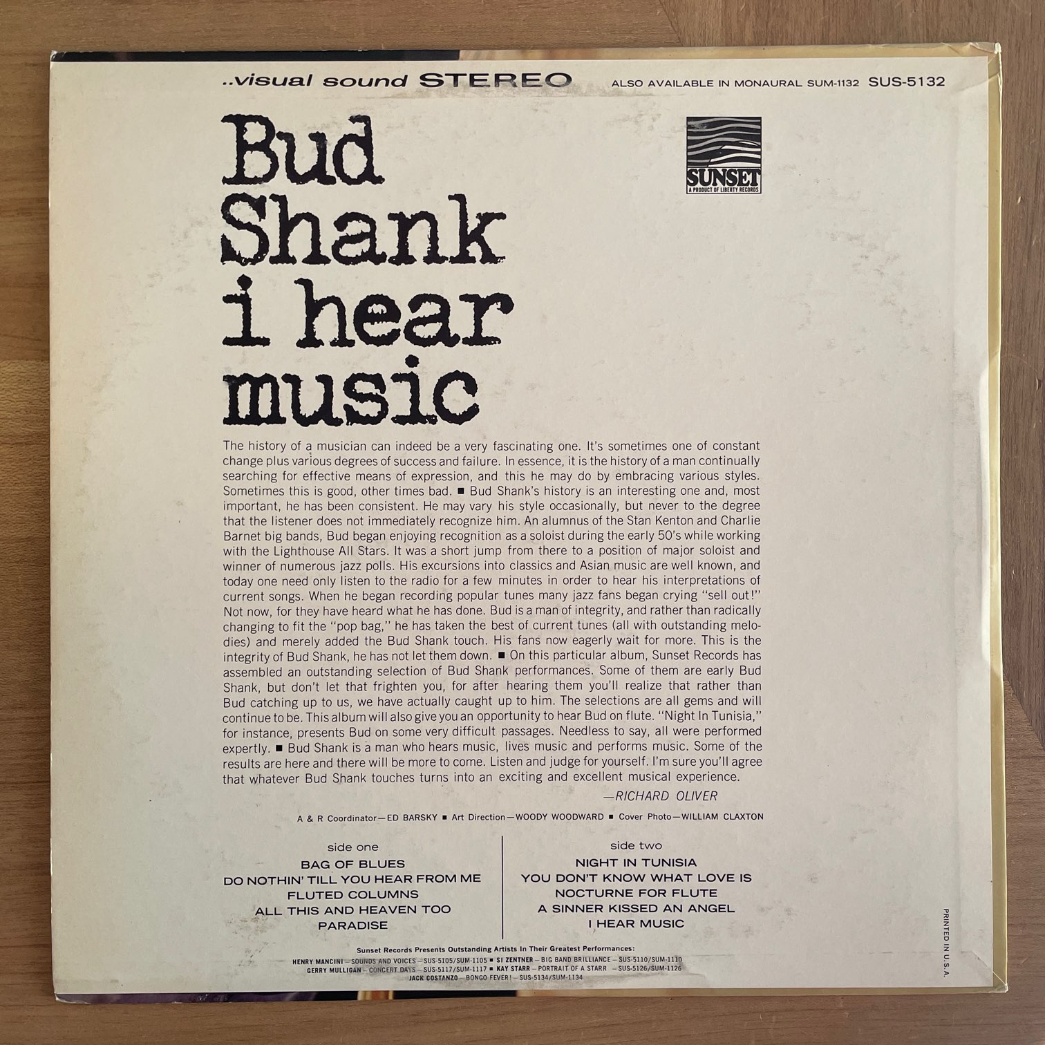 BUD SHANK / I HEAR MUSIC BUD SHANK / I HEAR MUSIC / SUS-5132 US ORIG. 66年SUNSETからリリースされたアメリカ・オリジナル。WEST COAST JAZZを代表するフルート・サックス奏者のバド・シャンクの曲をサンセットレコードが選んでベストにしたアルバム。 盤質:B+(チリつくとこあり) ジャケット:リングウェア、縁軽度スレ、軽度角潰れ、天縁周囲色褪せ。 試聴 NIGHT IN TUNISIA https://recordshopgg.com/wp-content/uploads/2025/11/BUD-SHANK.m4a I HEAR MUSIC https://recordshopgg.com/wp-content/uploads/2025/11/BUD-SHANK2.m4a (商品コード: 5107) 在庫状態 : 在庫有り ¥1,800(税込) 数量