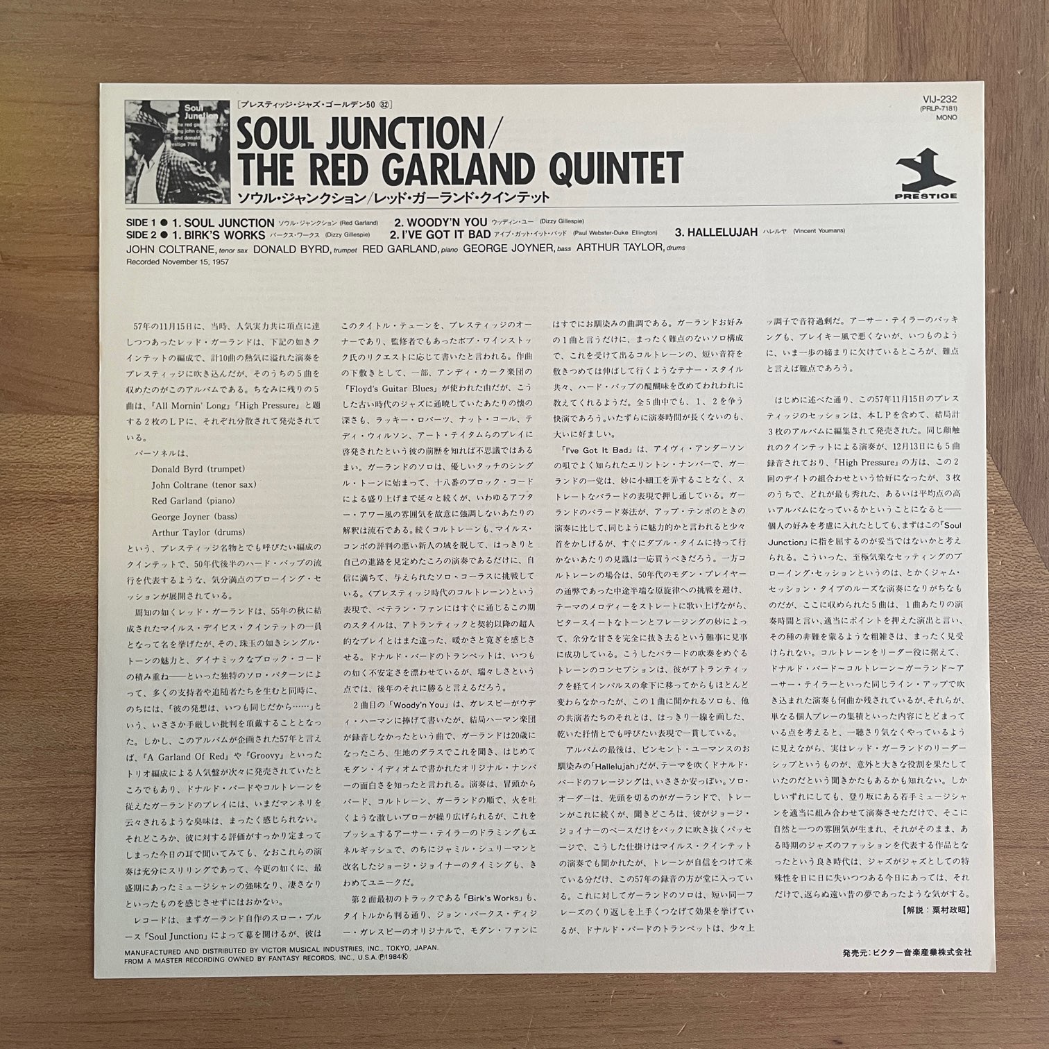 RED GARLAND QUINTET / SOUL JUNCTION / VIJ-232 JP REISSUE