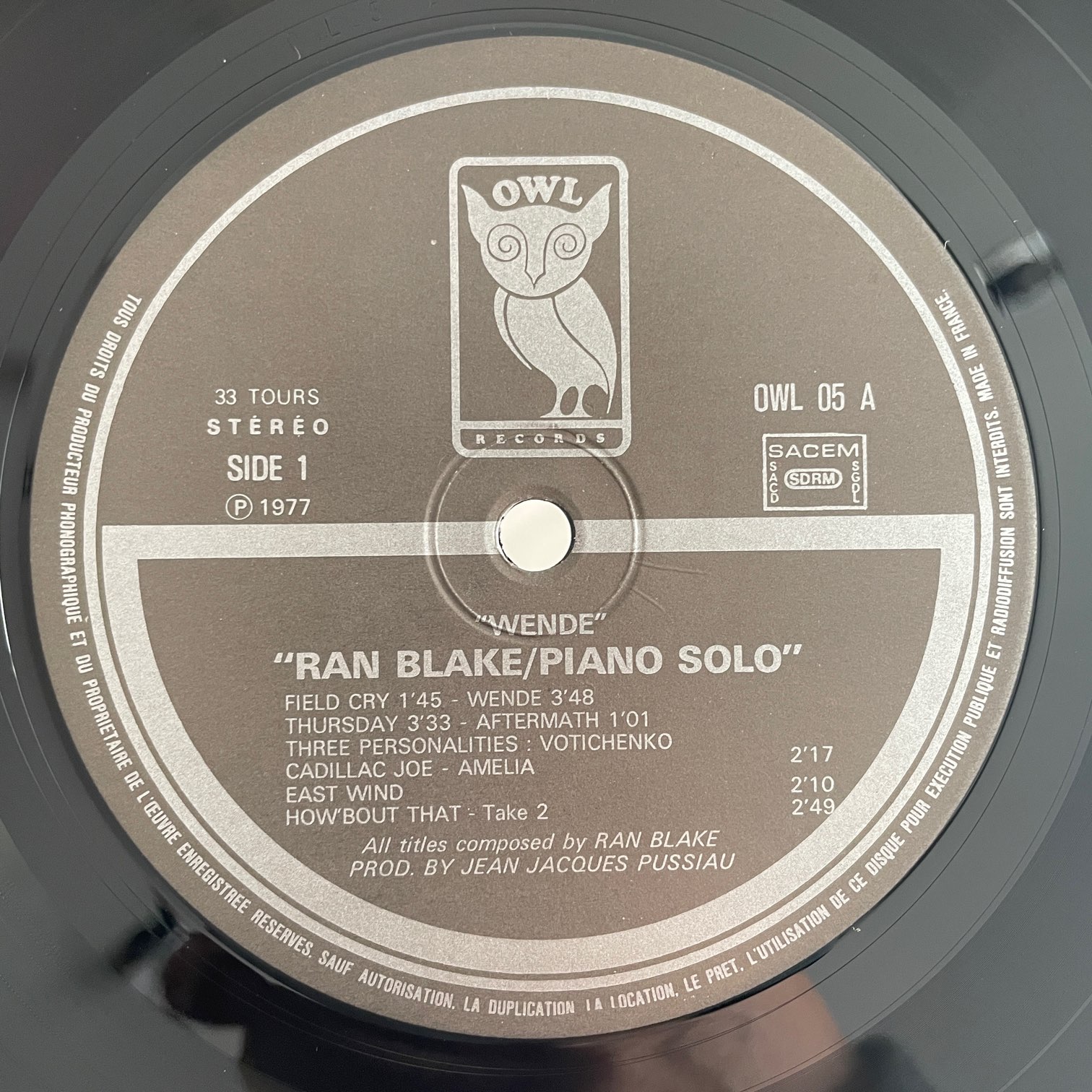 RAN BLAKE / WENDE RAN BLAKE / WENDE / OWL05 FRANCE ORIG. 77年owlからリリースされたフランス・オリジナル。50年代から活躍するアメリカのピアニストで70年代に欧州に移住したようで、フランスのレーベルからリリースされてます。特徴的なピアノを弾く人で彼の世界観に惹き込まれます。CDとはジャケ違い。 盤質:B+(チリつくとこあり) ジャケット:軽度角スレ、背周囲少ししわ。内ジャケシミ。 試聴 WENDE https://recordshopgg.com/wp-content/uploads/2025/11/WENDE-1.m4a JINXEY’S https://recordshopgg.com/wp-content/uploads/2025/11/WENDE-2.m4a (商品コード: 5110) 在庫状態 : 在庫有り ¥2,500(税込) 数量