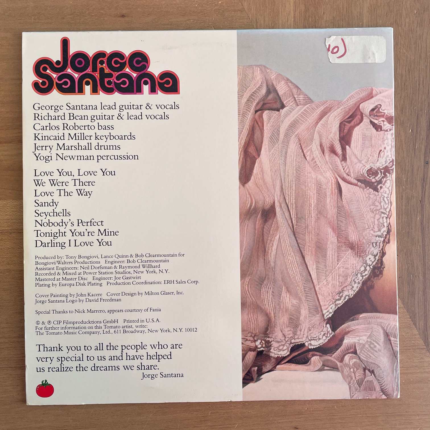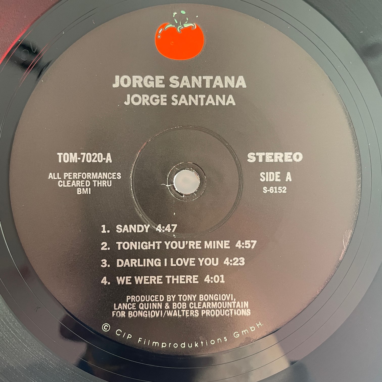 JORGE SANTANA JORGE SANTANA / TOM-7020 US ORIG. 78年tomatoからリリースされたアメリカ・オリジナル。カルロス・サンタナの弟によるソロ・1stアルバム。セクシーなジャケットともにダンスフロアをメロウに揺らすフリー・ソウル人気作。 盤質:B+(反りあり) ジャケット:裏にシール、ドリルホール、背しわ、軽度リングウェア、天縁周囲色褪せ。インナースリーブあり。 試聴 SANDY https://recordshopgg.com/wp-content/uploads/2025/11/JORGE-SANTANA-1.m4a WE WRE THER https://recordshopgg.com/wp-content/uploads/2025/11/JORGE-SANTANA-2.m4a (商品コード: 5115) 在庫状態 : 在庫有り ¥3,800(税込) 数量