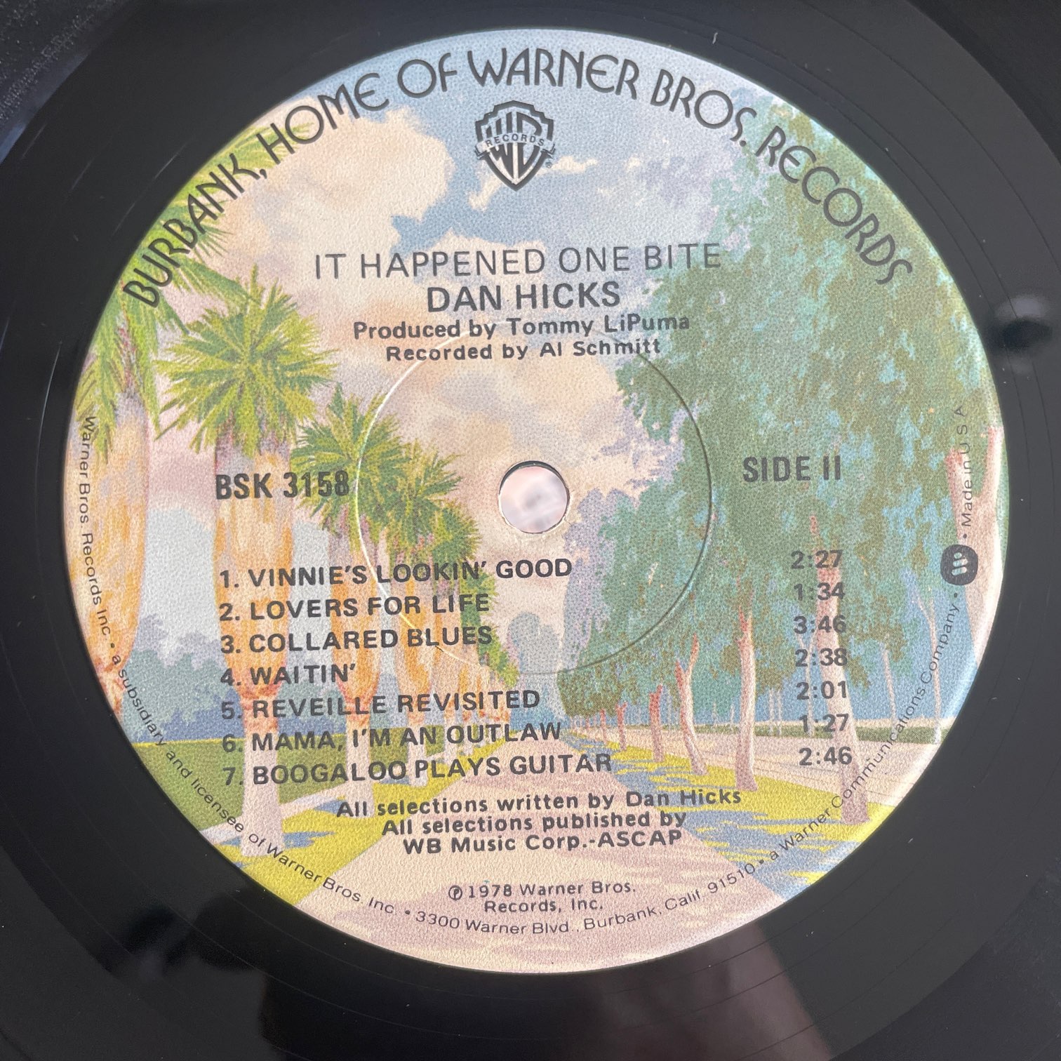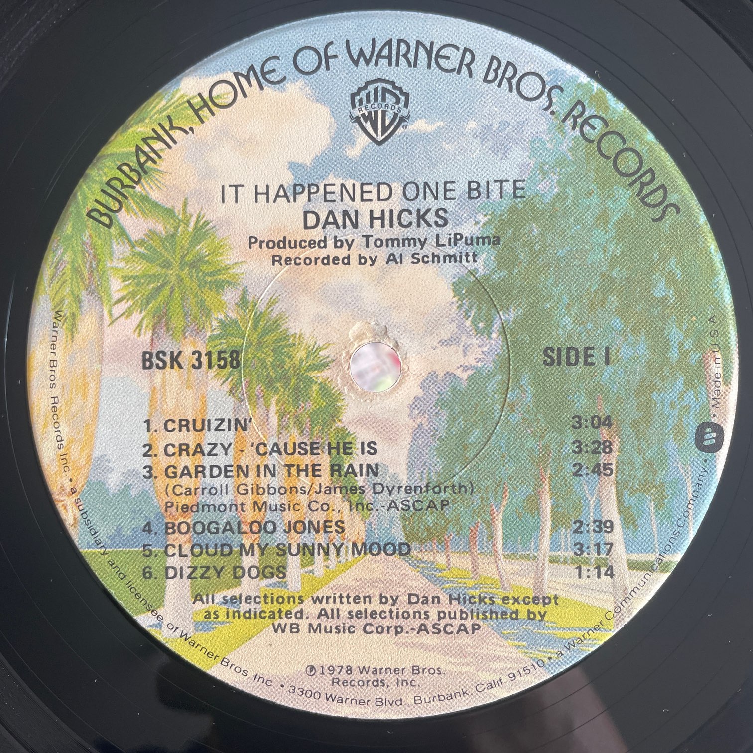 DAN HICKS / IT HAPPENED ONE BITE DAN HICKS / IT HAPPENED ONE BITE / BSK3158 US ORIG. 再入荷 78年warnerからリリースされたアメリカ・オリジナル。ダン・ヒックスの中でも人気のアルバム。アコースティック・スウィングな世界へようこそ。 盤質:A- ジャケット:カット盤、軽度リングウェア、縁軽度スレ、角潰れ。 試聴 CRUIZIN’ https://recordshopgg.com/wp-content/uploads/2025/11/DAN-HICKS1.m4a GARDEN IN THE RAIN https://recordshopgg.com/wp-content/uploads/2025/11/DAN-HICKS2.m4a (商品コード: 5120) 在庫状態 : 在庫有り ¥2,800(税込) 数量