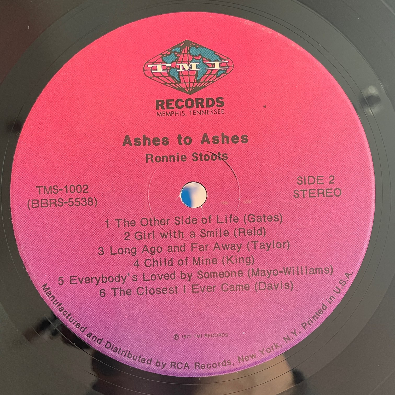 RONNIE STOOTS / ASHES TO ASHES RONNIE STOOTS / ASHES TO ASHES / TMS-1002 US ORIG. 72年マイナーレーベルTMIからリリースされたアメリカ・オリジナル。STAXのマーキーズのボーカリストとして活躍してたこともある、ロニーの唯一のソロ作。SSWのカヴァー多く、冒頭はキャロル・キングの「HOME AGAIN」。タイトル曲はA&Mの名作曲家、DENNIS LAMBERTのソロアルバムから。 盤質:A- ジャケット:シュリンク付き、右上角カット部分から取り出し口まで破れ。右下角スレ。 試聴 HOME AGAIN https://recordshopgg.com/wp-content/uploads/2025/11/RONNIE-STOOTS1.m4a ASHES TO ASHES https://recordshopgg.com/wp-content/uploads/2025/11/RONNIE-STOOTS2.m4a (商品コード: 5124) 在庫状態 : 在庫有り ¥2,300(税込) 数量