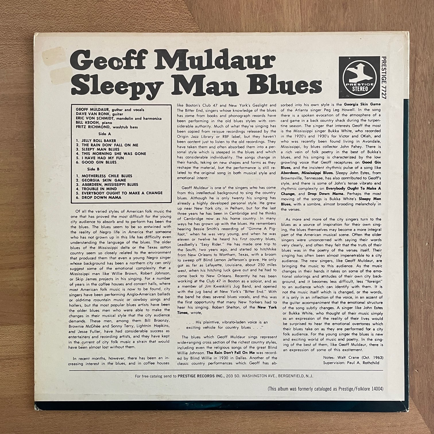 69年prestigeからリリースされたアメリカ・紺色ラベル・VAN GELDER刻印あり。63年にリリースされたジェフ・マルダーのソロ1stアルバム。同年にJIM KWESKIN AND THE JUG BANDにも参加してますが、このソロでは戦前ブルースをDAVE VAN RONK,ERIC VON SCHMIDTなどとやってます。