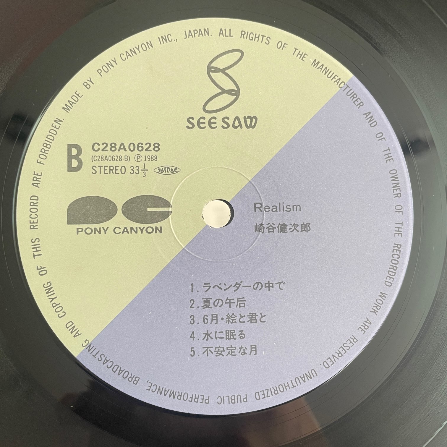 崎谷健次郎 / REALISM 崎谷健次郎 / REALISM / C28A0628 JP ORIG. 再入荷 88年see sawからリリースされた日本・初回盤。2ndアルバムとなる「リアリズム」ですが、とてもいいアルバムです。基本ブギーなシティポップですが、ボサ調の「ラベンダーの中で」やレゲエ調の「6月・絵と君と」、日向敏文さんのようなアンビエントアンサンブルで歌うバラード「水に眠る」など、ブギーものももちろん良いですが、他の曲も素晴らしい。 盤質:A- ジャケット:天縁周囲黄ばみ、両面軽度汚れ。帯あり、インナースリーブあり。 試聴 THIS TIME https://recordshopgg.com/wp-content/uploads/2025/12/崎谷健次郎.m4a 水に眠る https://recordshopgg.com/wp-content/uploads/2025/12/崎谷健次郎2.m4a (商品コード: 5198) 在庫状態 : 在庫有り ¥4,200(税込) 数量
