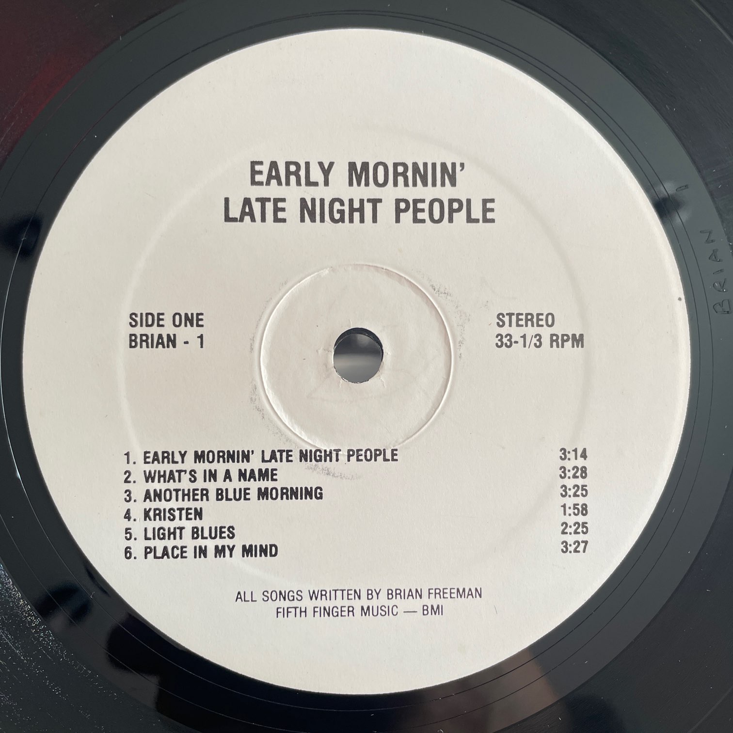 BRIAN FREEMAN / EARLY MORNIN’ LATE NIGHT PEOPLE BRIAN FREEMAN / EARLY MORNIN' LATE NIGHT PEOPLE / BRAIN-1 US ORIG. PRIVATE PRESS 80年?に自主リリースされたアメリカ・オリジナル・自主盤。オレゴンのフォーク系SSWによる1stアルバム。1人でやってる曲もありますが、ドラムが入ったりする曲あり。Bラストに「UNTITLED」なる曲が収録されてますが、それがとてもよかった。 盤質:B+ ジャケット:軽度リングウェア、縁スレ、角潰れ。 試聴 NORTHERN CITY BLUES https://recordshopgg.com/wp-content/uploads/2025/12/BRIAN-FREEMAN-1.m4a UNTITLED https://recordshopgg.com/wp-content/uploads/2025/12/BRIAN-FREEMAN-2.m4a (商品コード: 5205) 在庫状態 : 在庫有り ¥2,800(税込) 数量