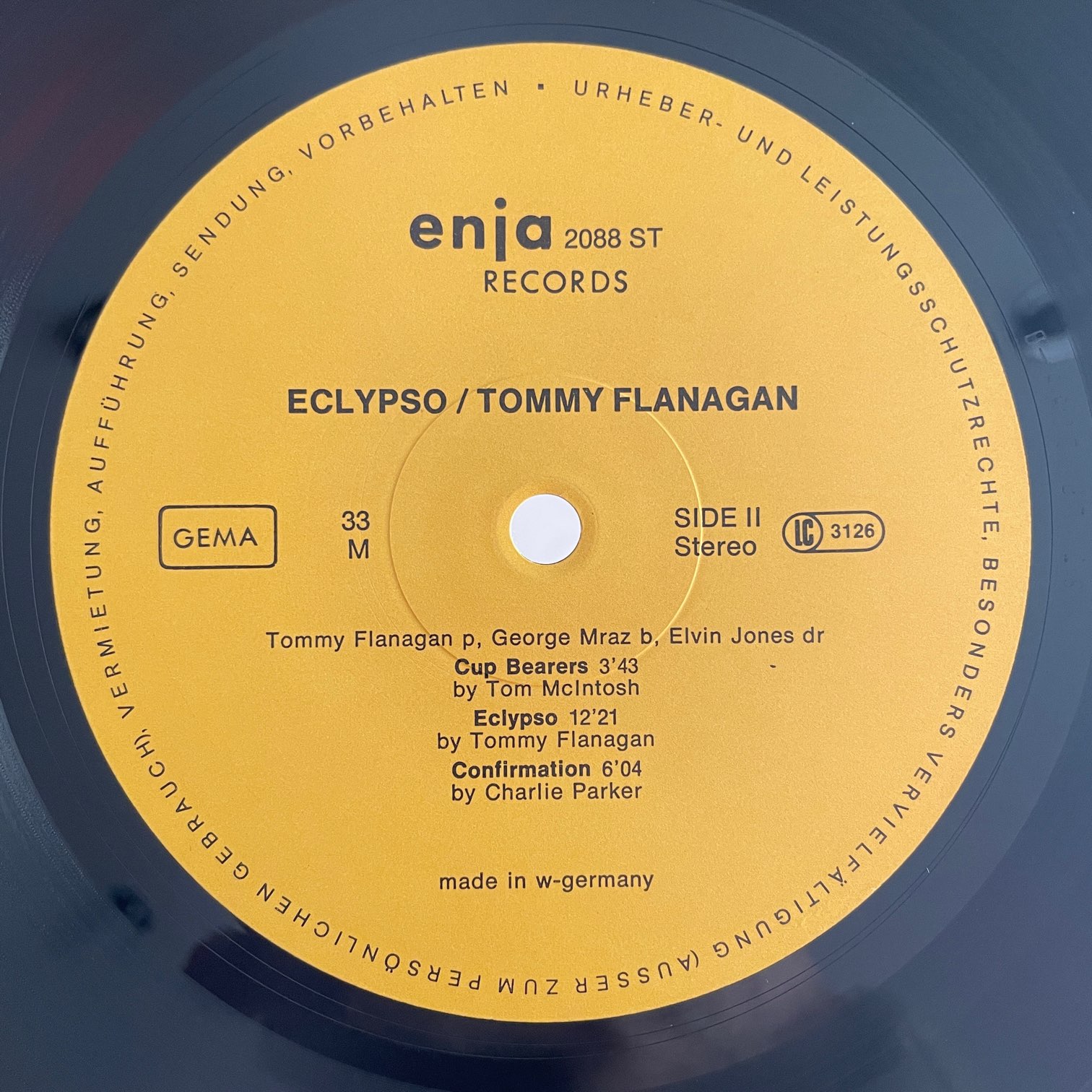 TOMMY FLANAGAN / ECLYPSO TOMMY FLANAGAN / ECLYPSO / 2088 GERMANY ORIG. 77年enjaからリリースされたドイツ・オリジナル。トミー・フラナガンの名作の一枚。GEORGE MRAZ,ELVIN JONESという素晴らしいメンツと、「OLEO」「RELAXIN’ AT CAMARILLO」「CUP BEARERS」などの素晴らしい選曲と素晴らしいオリジナルのタイトル曲。 盤質:B+(軽度スレありますがほぼノイズ入りません) ジャケット:コーティングジャケ、縁しわ、両面・取り出し口・角に軽度スレ。 試聴 OLEO https://recordshopgg.com/wp-content/uploads/2025/12/TOMMY-FLANAGAN1.m4a ECLYPSO https://recordshopgg.com/wp-content/uploads/2025/12/TOMMY-FLANAGAN2.m4a (商品コード: 5222) 在庫状態 : 在庫有り ¥3,200(税込) 数量