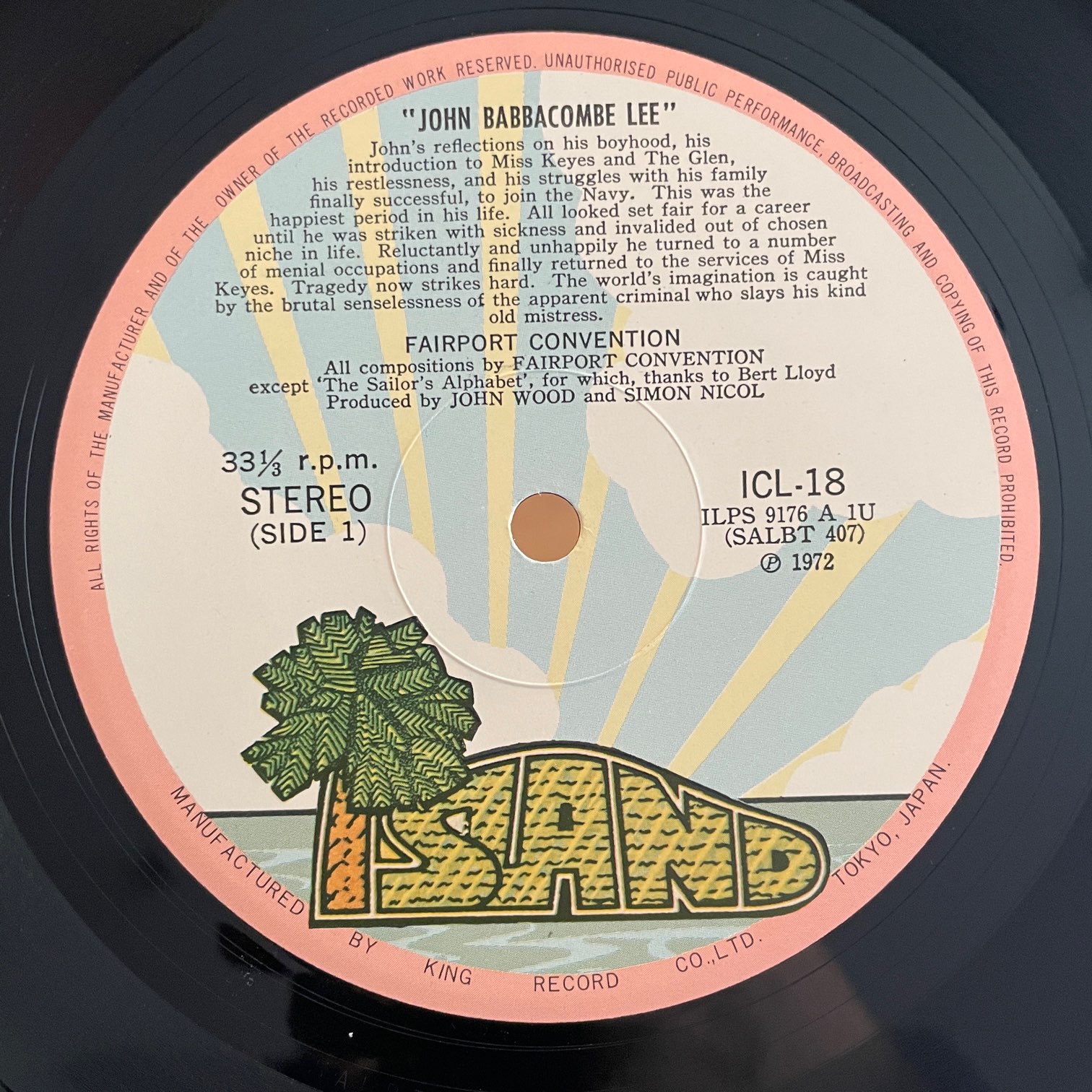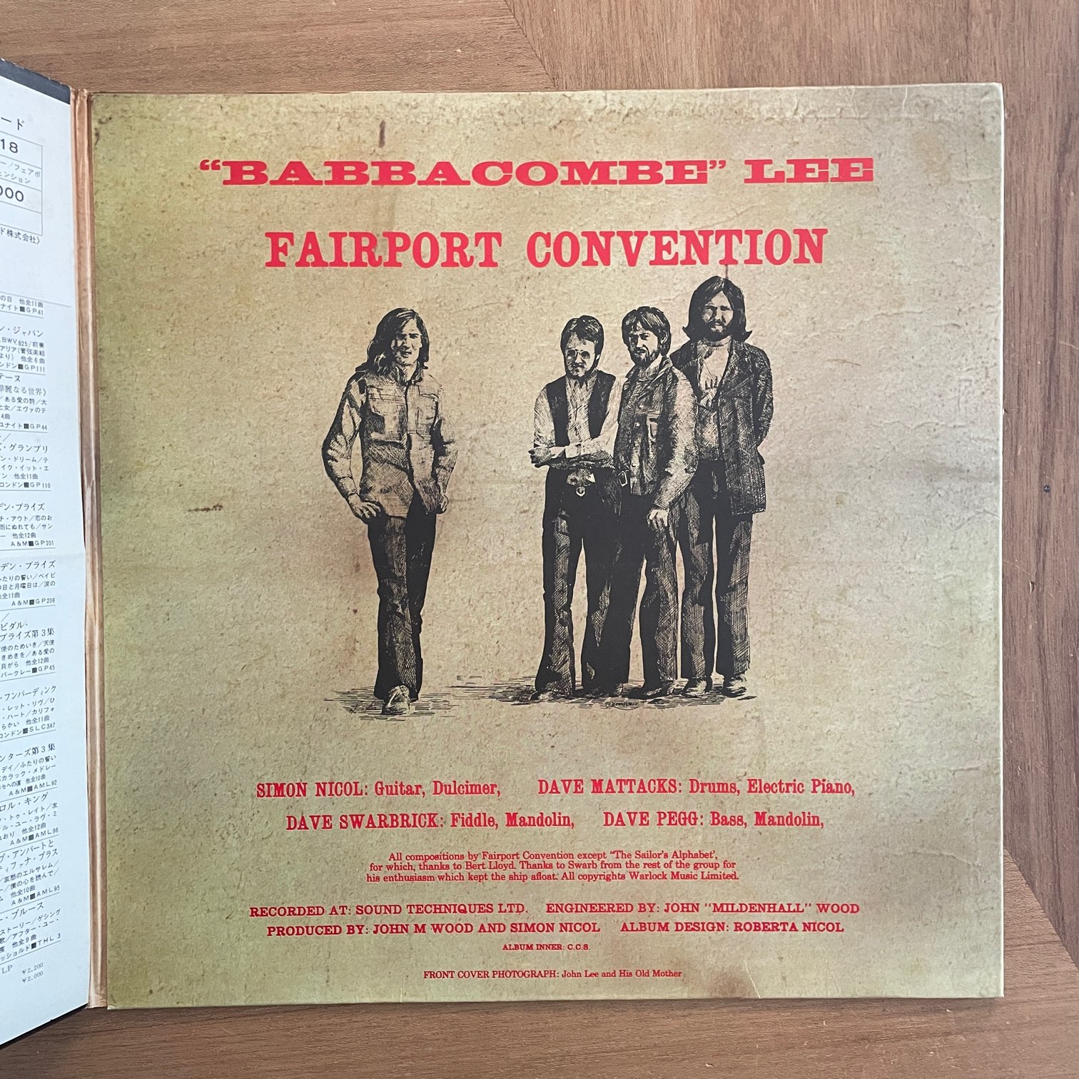 FAIRPORT CONVENTION / BABBACOMBE LEE FAIRPORT CONVENTION / BABBACOMBE LEE / ICL-18 JP ORIG. 72年islandからリリースされた日本・初回盤。ジョン・ババコム・リーの人生をたどったコンセプト・アルバムで、フェアポート・コンベンションの7枚目のアルバム。 盤質:B+(軽度ソリ) ジャケット:内側にポケットがあるジャケ。しみ、縁・角にすれ。一箇所角折れ。インナースリーブ抜け、帯中央に折れじわ・天縁スレ。ライナーなし。 試聴 A-1 https://recordshopgg.com/wp-content/uploads/2025/12/FAIRPORT-CONVENTION-1.m4a B-1 https://recordshopgg.com/wp-content/uploads/2025/12/FAIRPORT-CONVENTION2.m4a (商品コード: 5258) 在庫状態 : 在庫有り ¥2,800(税込) 数量