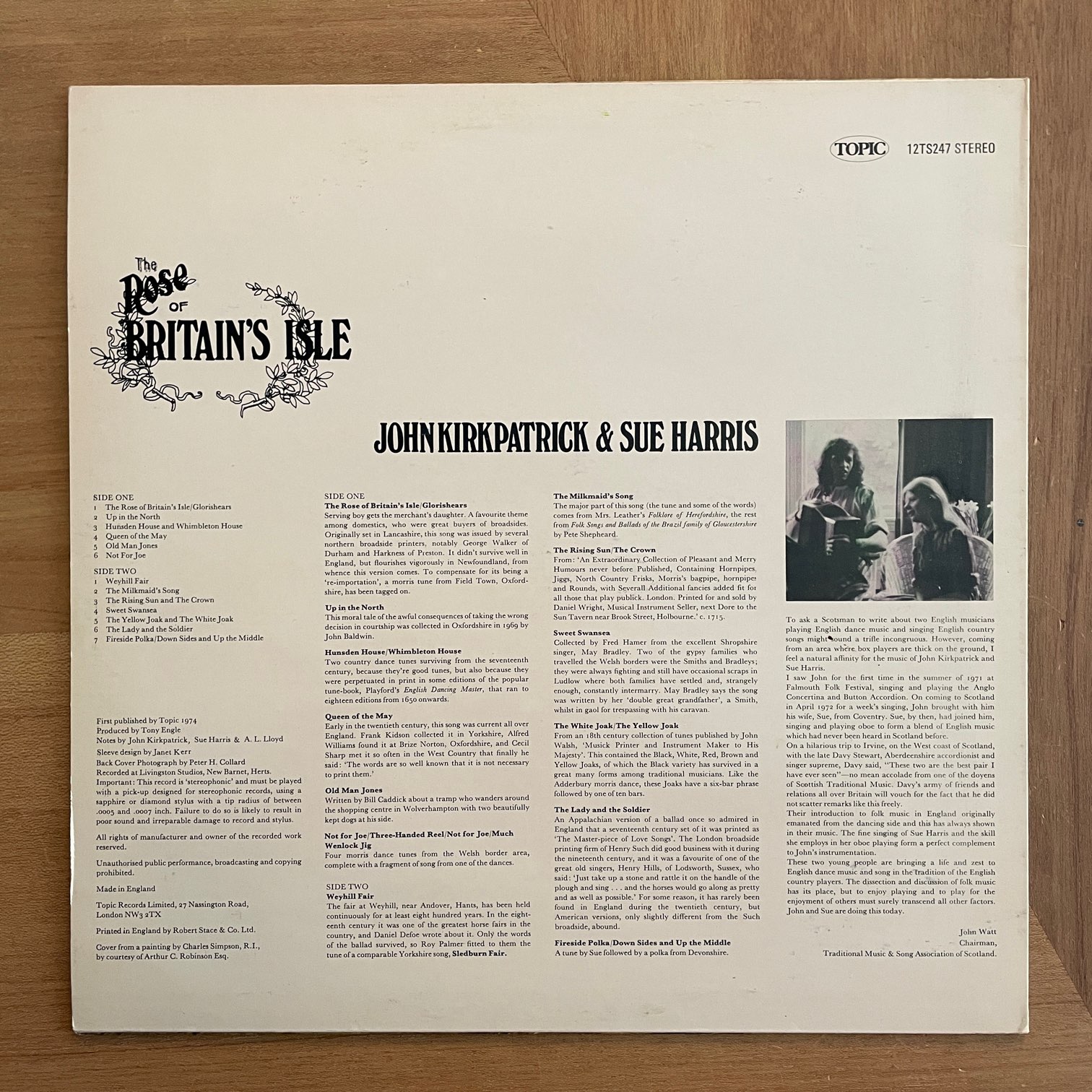 JOHN KIRKPATRICK & SUE HARRIS / THE ROSE OR BRITAIN’S ISLE JOHN KIRKPATRICK & SUE HARRIS / THE ROSE OR BRITAIN'S ISLE / 12TS247 UK REISSUE 70年代?80年代?TOPICからリリースされたイギリス・再発盤。夫婦名義でリリースされた1枚目。JOHNのアコーディオンと共に少しの楽器で演奏されるトラッドの数々。そして奥さんのSUEの声が素晴らしい。ジャケットの絵も内容と相性も良くて人気のある1枚。 盤質:A- ジャケット:背周囲に軽度しわ、裏に軽度スレ。 試聴 THE ROSE OR BRITAIN’S ISLE https://recordshopgg.com/wp-content/uploads/2025/12/JOHN-KIRKPATRICK1.m4a WEYHILL FAIR https://recordshopgg.com/wp-content/uploads/2025/12/JOHN-KIRKPATRICK2.m4a (商品コード: 5256) 在庫状態 : 売り切れ 只今お取扱い出来ません