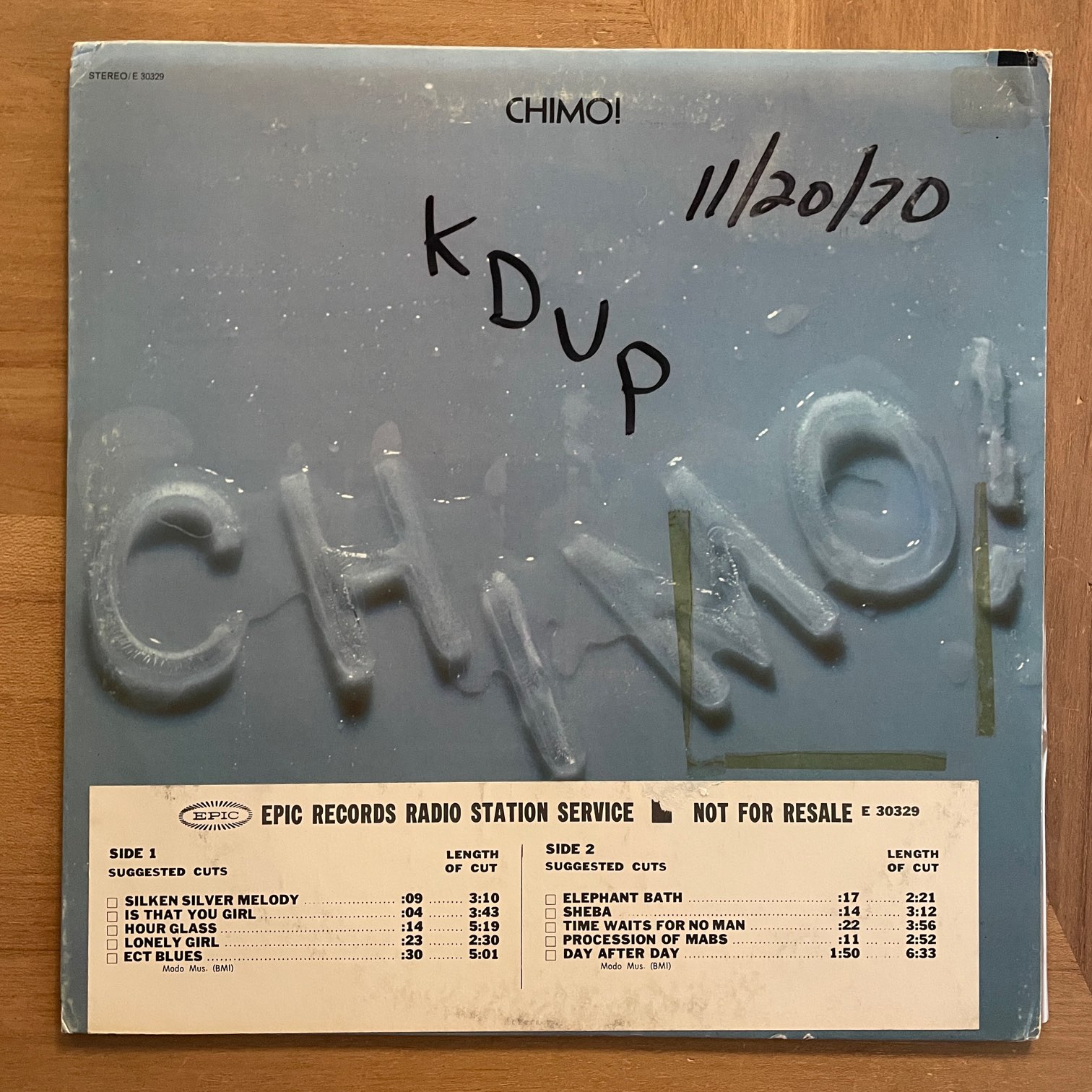 CHIMO! CHIMO! / E30329 US ORIG. 70年EPICからリリースされたアメリカ・オリジナル。カナダのロックバンドの1stアルバム。少しサイケがかったり、ジャズロックなところもあるアルバム。ラジオ局からの放出物のようでジャケットに書き込み・テープあり。 盤質:A- ジャケット:プロモシール。表書き込み・テープ残り。縁スレ、リングウェア、角潰れ。 試聴 ECT BLUES https://recordshopgg.com/wp-content/uploads/2025/12/CHIMO-1.m4a SHEBA https://recordshopgg.com/wp-content/uploads/2025/12/CHIMO-2.m4a (商品コード: 5266) 在庫状態 : 在庫有り ¥2,300(税込) 数量