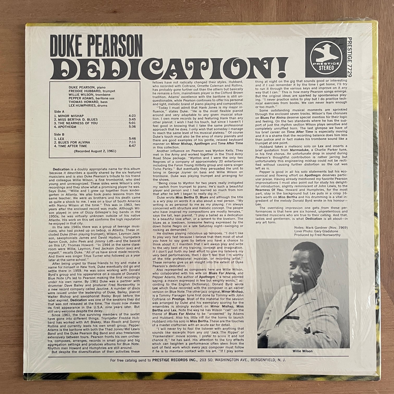 DUKE PEARSON / DEDICATION! DUKE PEARSON / DEDICATION! / PRST7729 US REISSUE 70年prestigeからリリースされたアメリカ盤。66年にFONTANAからリリースされたFREDDY HUBBARDの「GROOVY!」と同内容のアルバム。リリースは66年ですが録音は61年。先の2人以外にWILLIE WILSON(TB),PEPPER ADAMS(BS),THMAS HOWARD(B),LEX HUMPHRIES(D)の編成。 盤質:B+ ジャケット:シュリンク付きで概ね綺麗です。 試聴 MINOR MISHAP https://recordshopgg.com/wp-content/uploads/2025/12/DUKE-PEARSON-1.m4a LEX https://recordshopgg.com/wp-content/uploads/2025/12/DUKE-PEARSON-2.m4a (商品コード: 5311) 在庫状態 : 在庫有り ¥5,800(税込) 数量