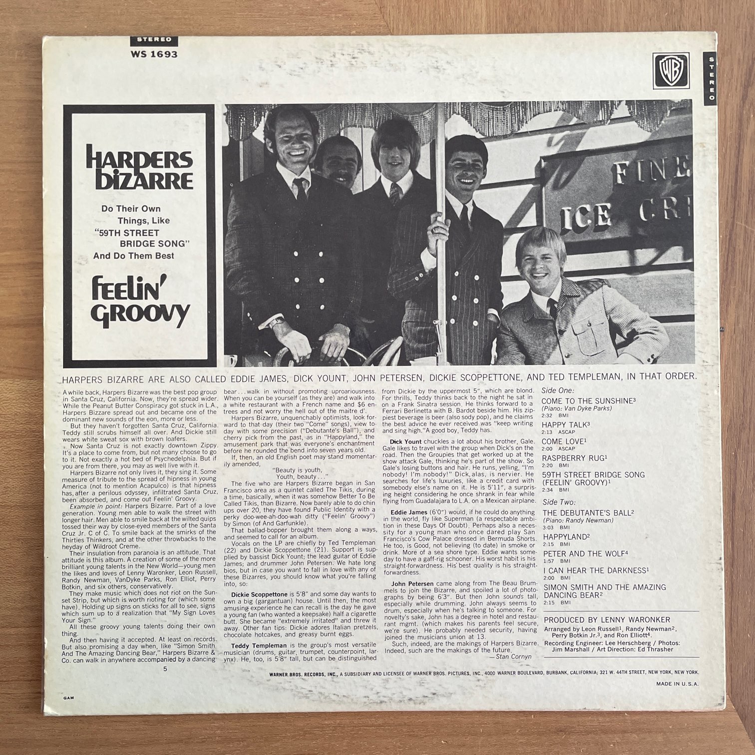 HARPERS BIZARRE / FEELIN’ GROOVY HARPERS BIZARRE / FEELIN' GROOVY / WS1693 US ORIG. 67年warner bros.からリリースされたアメリカ・ステレオ・オリジナル。ハーモニーも美しいソフト・ロック・グループのデビュー作。「COME TO THE SUNSHINE」にはPIANOにVAN DYKE PARKS参加。タイトル曲はPAUL SIMONの名曲カヴァー。 盤質:B+ ジャケット:裏軽度リングウェア、縁・角にスレ。 試聴 COME TO THE SUNSHINE https://recordshopgg.com/wp-content/uploads/2025/12/HARPERS-BIZARRE-1.m4a 59TH STREET BRIDGE SONG https://recordshopgg.com/wp-content/uploads/2025/12/HARPERS-BIZARRE2.m4a (商品コード: 5288) 在庫状態 : 在庫有り ¥2,800(税込) 数量
