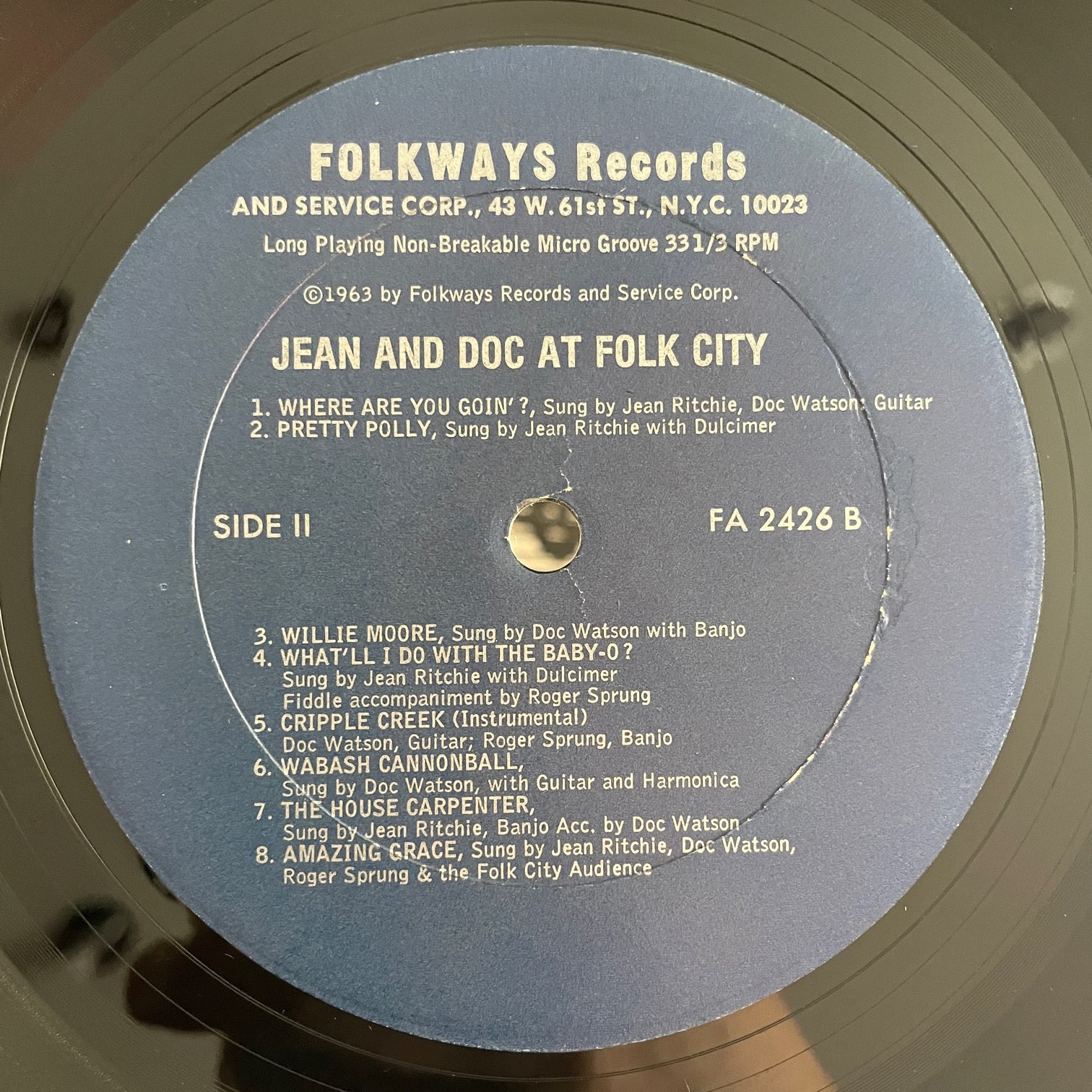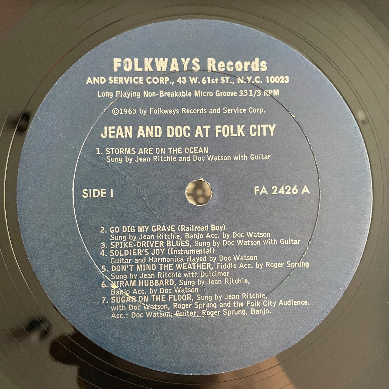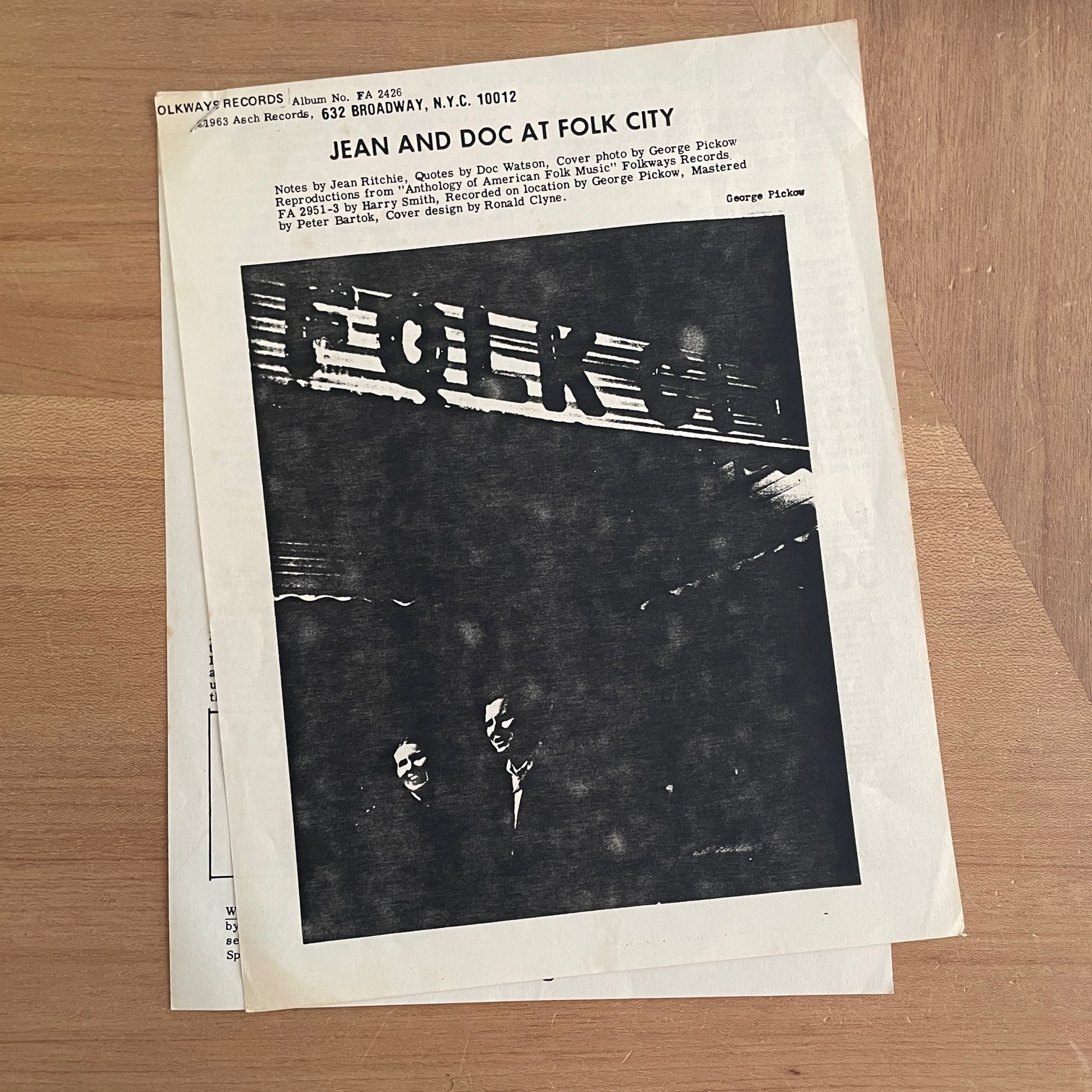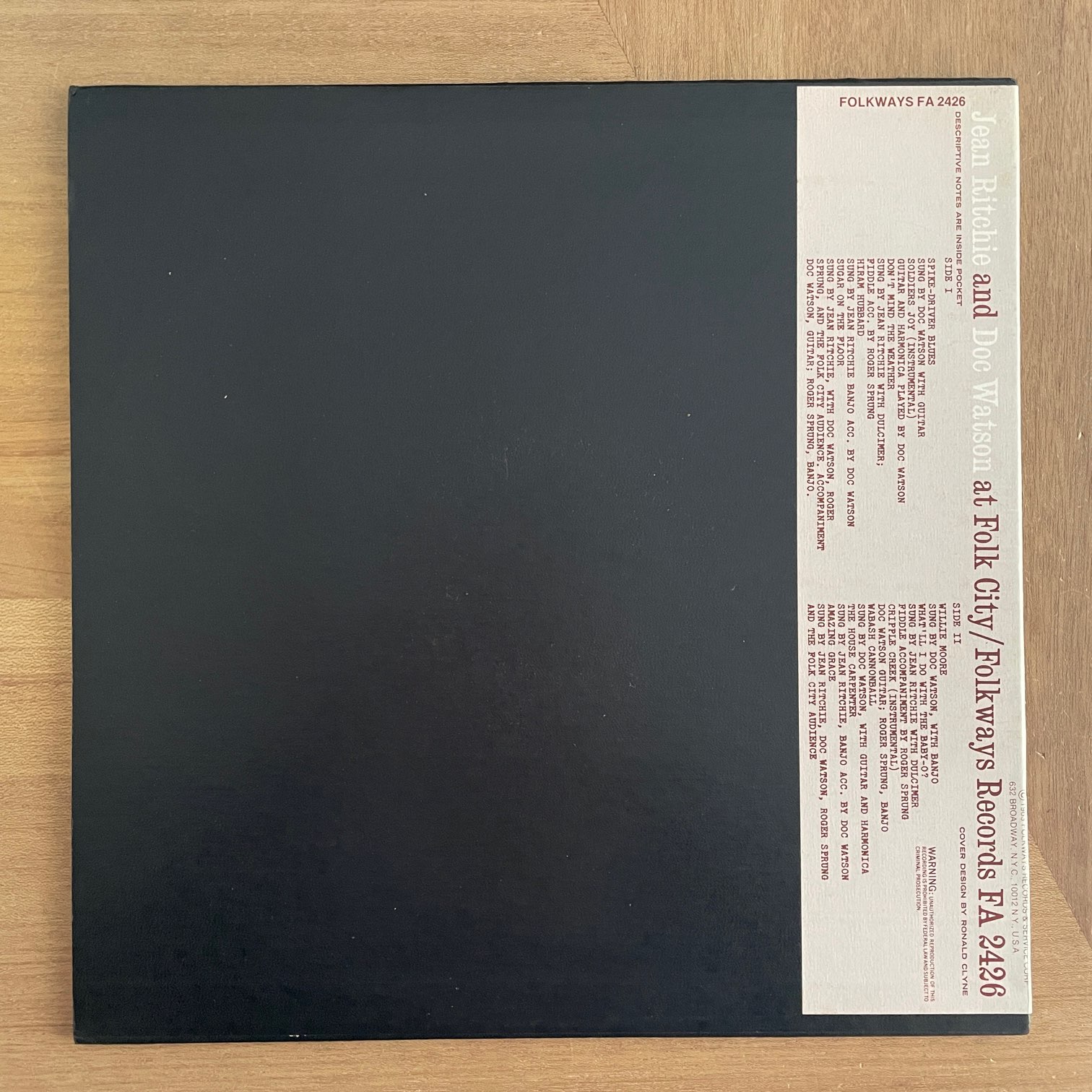JEAN RITCHIE AND DOC WATSON / AT FOLK CITY JEAN RITCHIE AND DOC WATSON / AT FOLK CITY / FA2426 US REISSUE 70年代?にFOLKWAYSからリリースされたと思われるアメリカ・再発盤。フォーク・シンガーとして初期から活動してる2人のライブ盤。ダルシマーと歌のジーン・リッチーとギター・バンジョーと歌のドク・ワトソンの2人ですが、1人でやってる曲もあります。 盤質:B+ ジャケット:両面軽度スレ程度で概ね綺麗です。厚紙の仕切りあり、インサートあり。 試聴 STORMS ARE ON THE OCEAN https://recordshopgg.com/wp-content/uploads/2025/12/JEAN-RITCHIE-.m4a SPIKE-DRIVER BLUES https://recordshopgg.com/wp-content/uploads/2025/12/JEAN-RITCHIE-2.m4a (商品コード: 5295) 在庫状態 : 在庫有り ¥1,500(税込) 数量