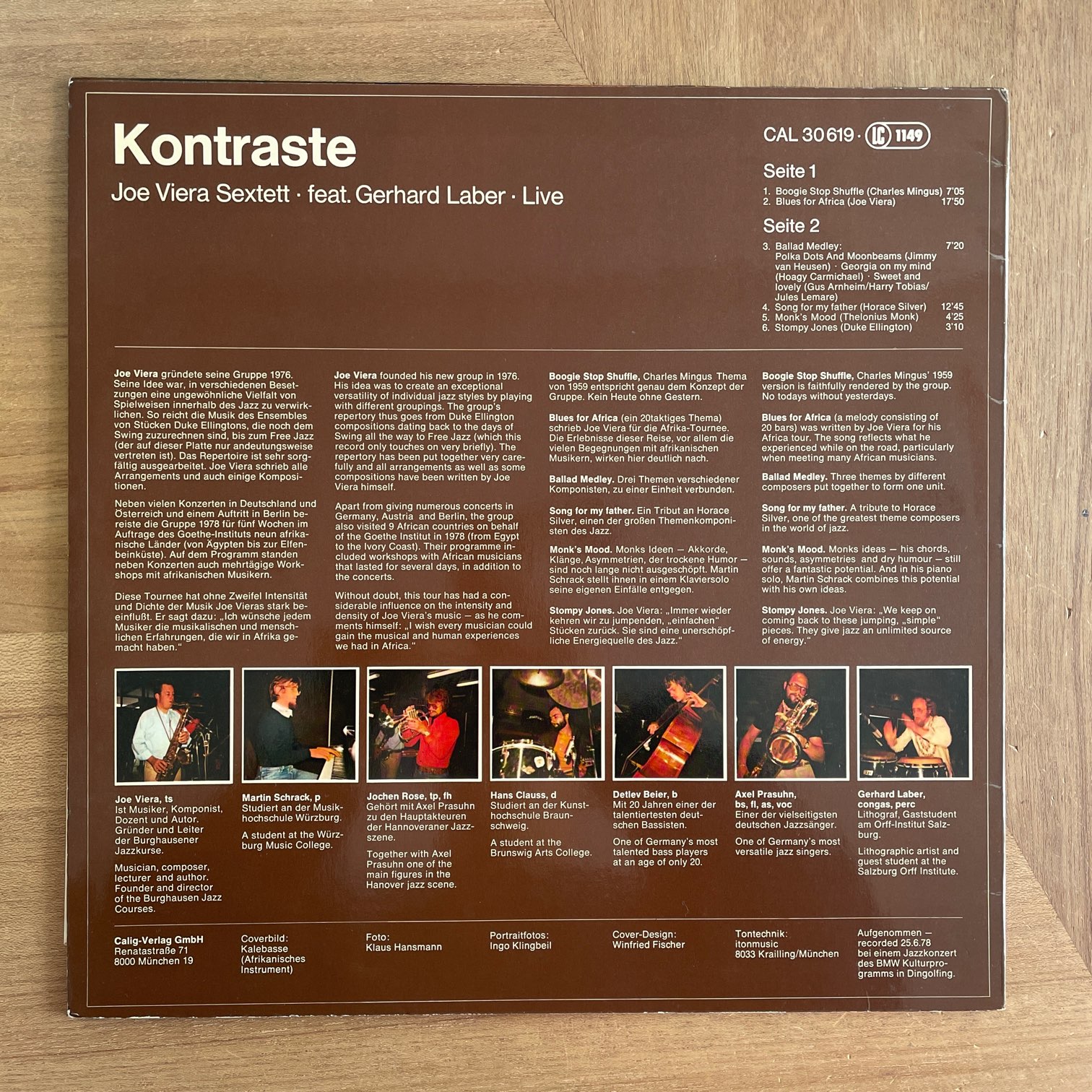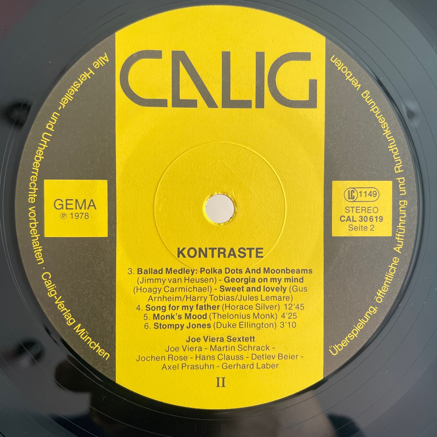 JOE VIERA SEXTETT / KONTRASTE JOE VIERA SEXTETT / KONTRASTE / CAL30619 GERMANY ORIG. 78年caligからリリースされたドイツ・オリジナル。ジャケットが物語っているようにパーカッションをフューチャーしてのサックス奏者JOE VIERAの作品。パーカッションはGERHARD LABERが参加し、素晴らしいアルバムに仕上げてます。特にB-2の「SONG FOR MY FATHER」はボーカルまで入って、嬉しい。 盤質:B+ ジャケット:軽度角スレ、縁軽度しわ。 試聴 BOOGIE STOP SHUFFLE https://recordshopgg.com/wp-content/uploads/2026/01/JOE-VIERA-1.m4a SONG FOR MY FATHER https://recordshopgg.com/wp-content/uploads/2026/01/JOE-VIERA-2.m4a (商品コード: 5351) 在庫状態 : 在庫有り ¥2,800(税込) 数量