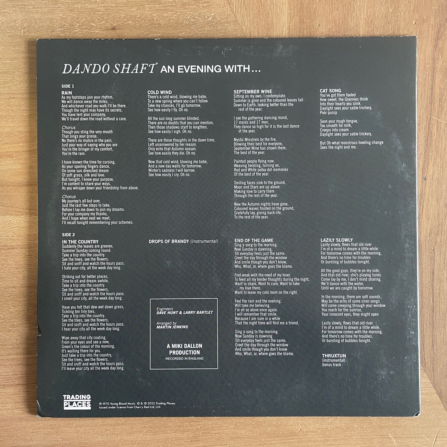 DANDO SHAFT / AN EVENING WITH… DANDO SHAFT / AN EVENING WITH... / TDP54083 UK REISSUE 23年TRADING PLACESからリリースされたイギリス・再発盤。ラビリンス6084。各人のテクニックも素晴らしくボーカルの声もいい、イギリスのフォーク・バンド、ダンドー・シャフトのデビュー作。イギリスらしいアシッド感が漂うフォーク・アルバムはハマります。 盤質:B+(B-3にプレスミスあり) ジャケット:軽度リングウェア、取り出し口に1箇所凹み傷、軽度角潰れ。 試聴 RAIN https://recordshopgg.com/wp-content/uploads/2026/01/DANDO-SHAFT1.m4a END OF THE GAME(B-3プレスミス部分) https://recordshopgg.com/wp-content/uploads/2026/01/DANDO-SHAFT2.m4a (商品コード: 5368) 在庫状態 : 在庫有り ¥3,200(税込) 数量