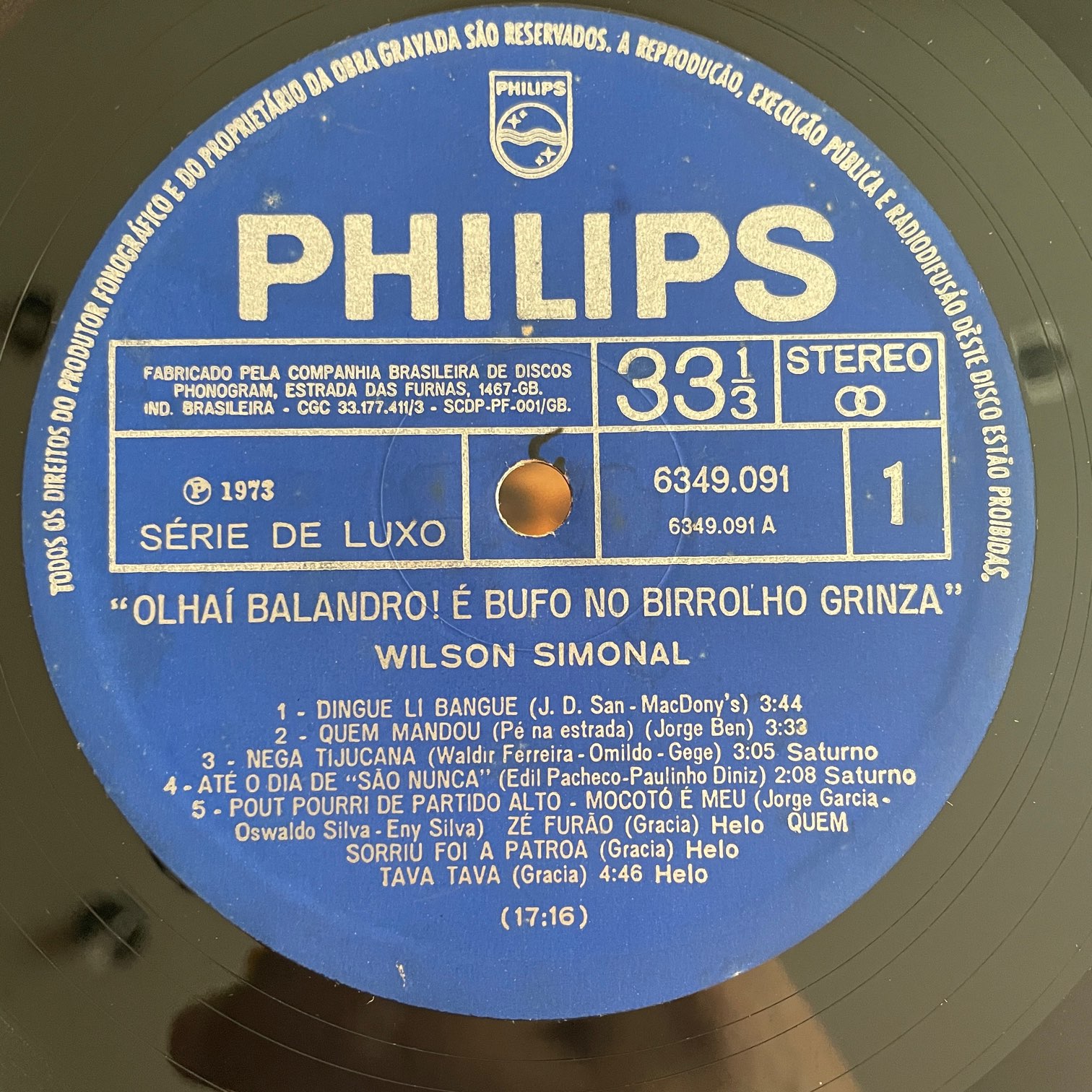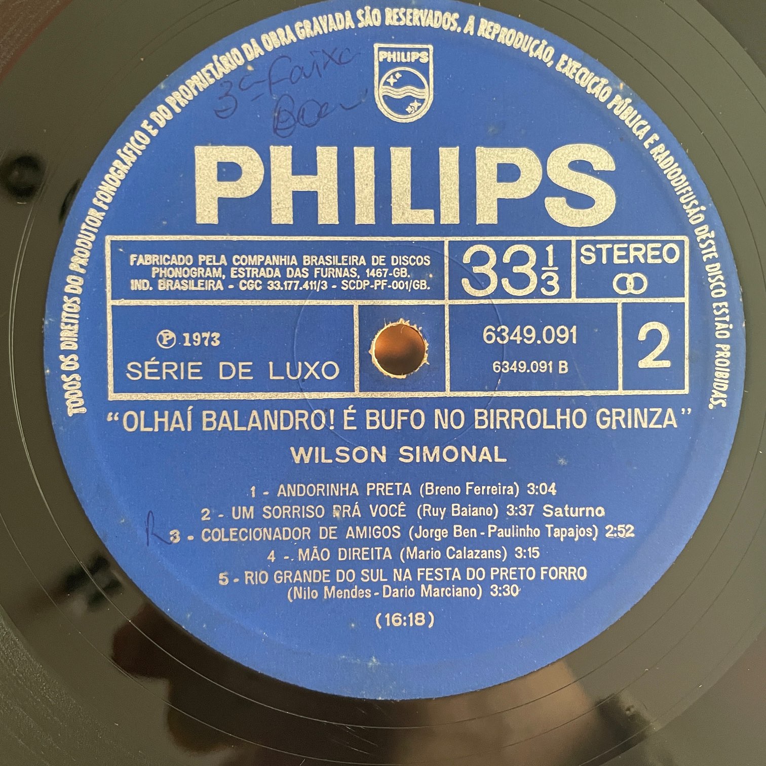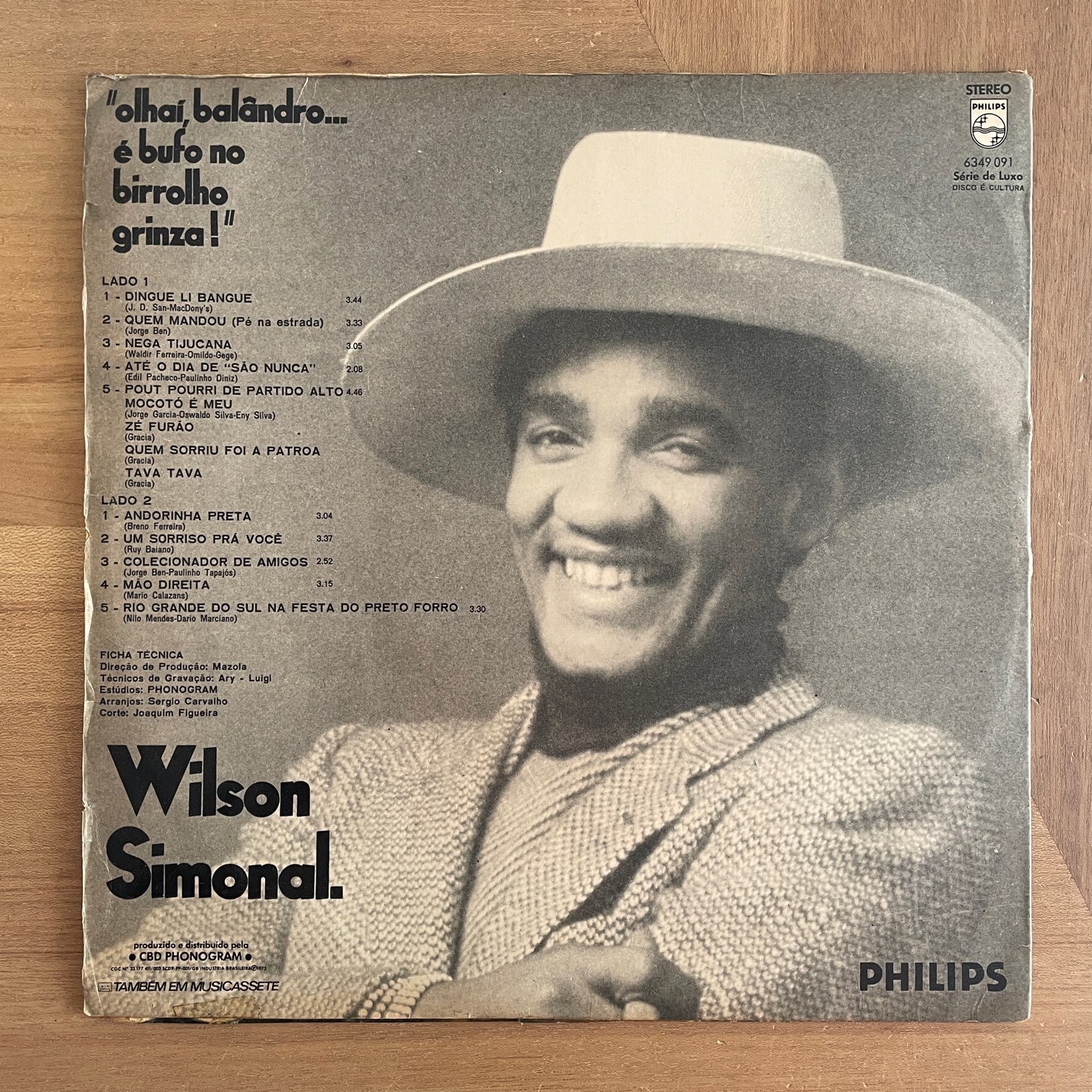 73年philipsからリリースされたブラジル・オリジナル。ポップなサンビスタとして人気のウィルソン・シモナールの73年盤。ソウルテイストな曲も織り交ぜてのサンバ。「DINGUE LI BANGUE」「COLECIONADOR DE AMIGOS」などを筆頭にいい曲多いです。