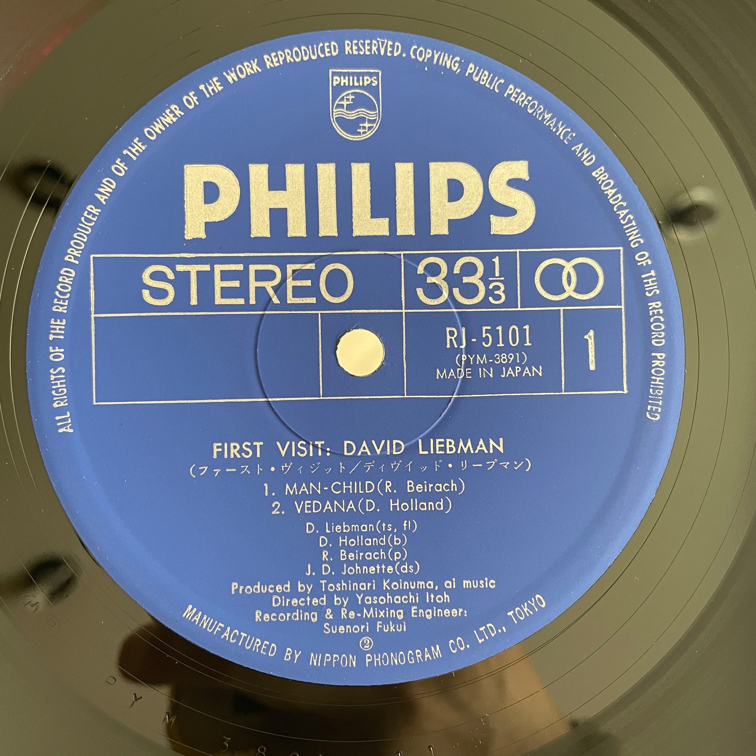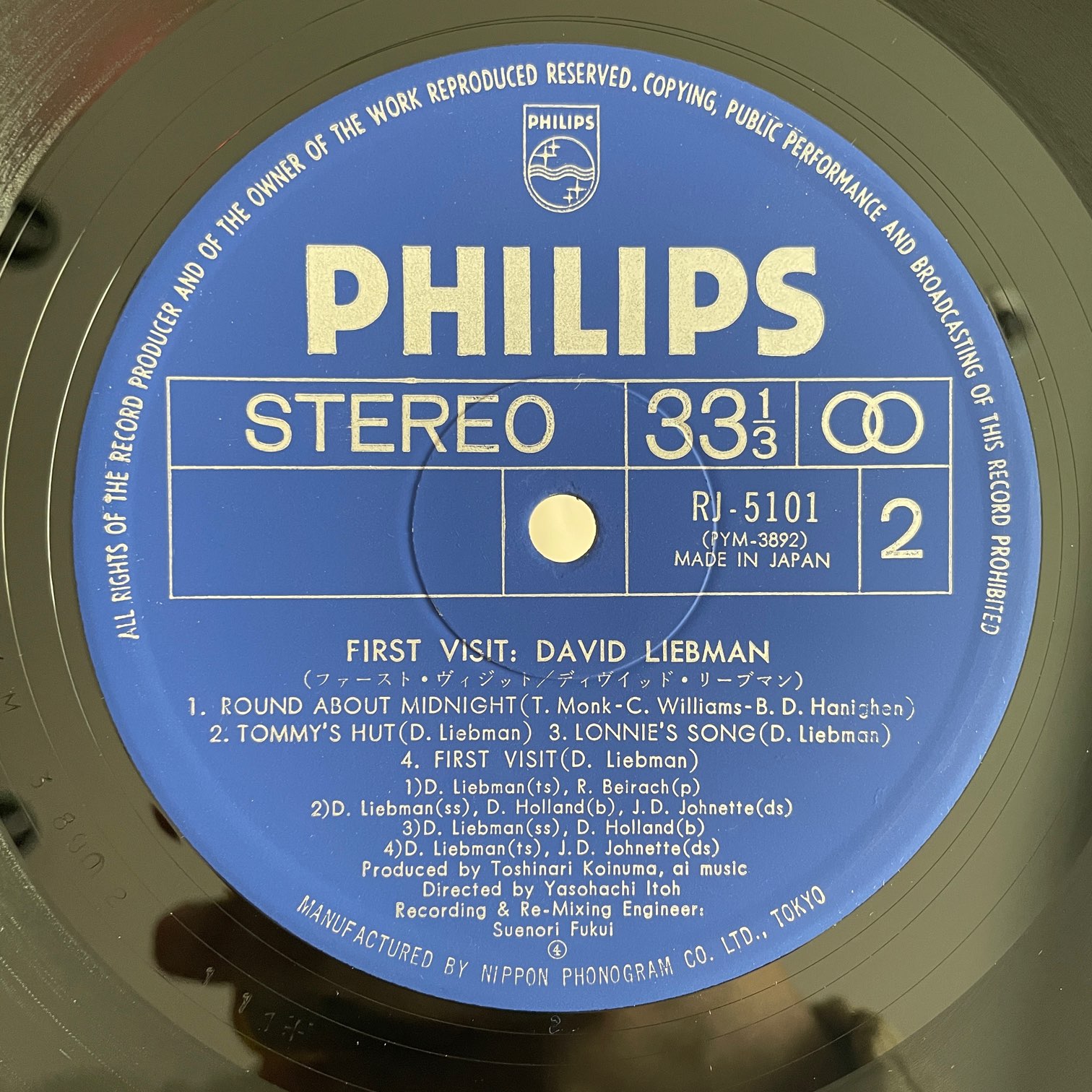 DAVID LIEBMAN / FIRST VISIT DAVID LIEBMAN / FIRST VISIT / RJ-5101 JP ORIG. 日本企画盤 73年philipsからリリースされた日本・オリジナル。日本録音の国内企画盤。DAVID HOLLAND,RICHARD BEIRACH,JACK DEJOHNETTEとのカルテット編成。この時期のリーブマンはマイルスバンドにいる時期でマイルスもリーブマンのサックスを絶賛してる。 盤質:A- ジャケット:内ジャケ軽度シミ、帯なし。 試聴 MAN CHILD https://recordshopgg.com/wp-content/uploads/2026/01/DAVID-LIEBMAN1.m4a RAUND ABOUT MIDNIGHT https://recordshopgg.com/wp-content/uploads/2026/01/DAVID-LIEBMAN2.m4a (商品コード: 5377) 在庫状態 : 在庫有り ¥2,500(税込) 数量