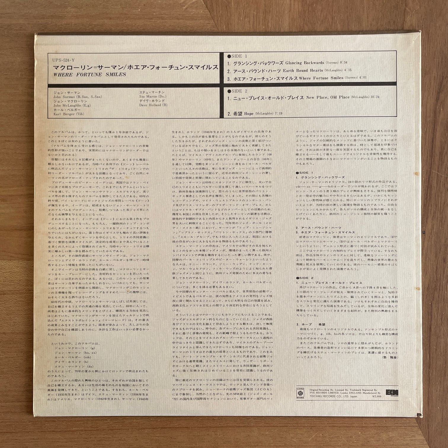 JOHN SURMAN / WHERE FORTUNE SMILES / UPS-524-Y JP ORIG.