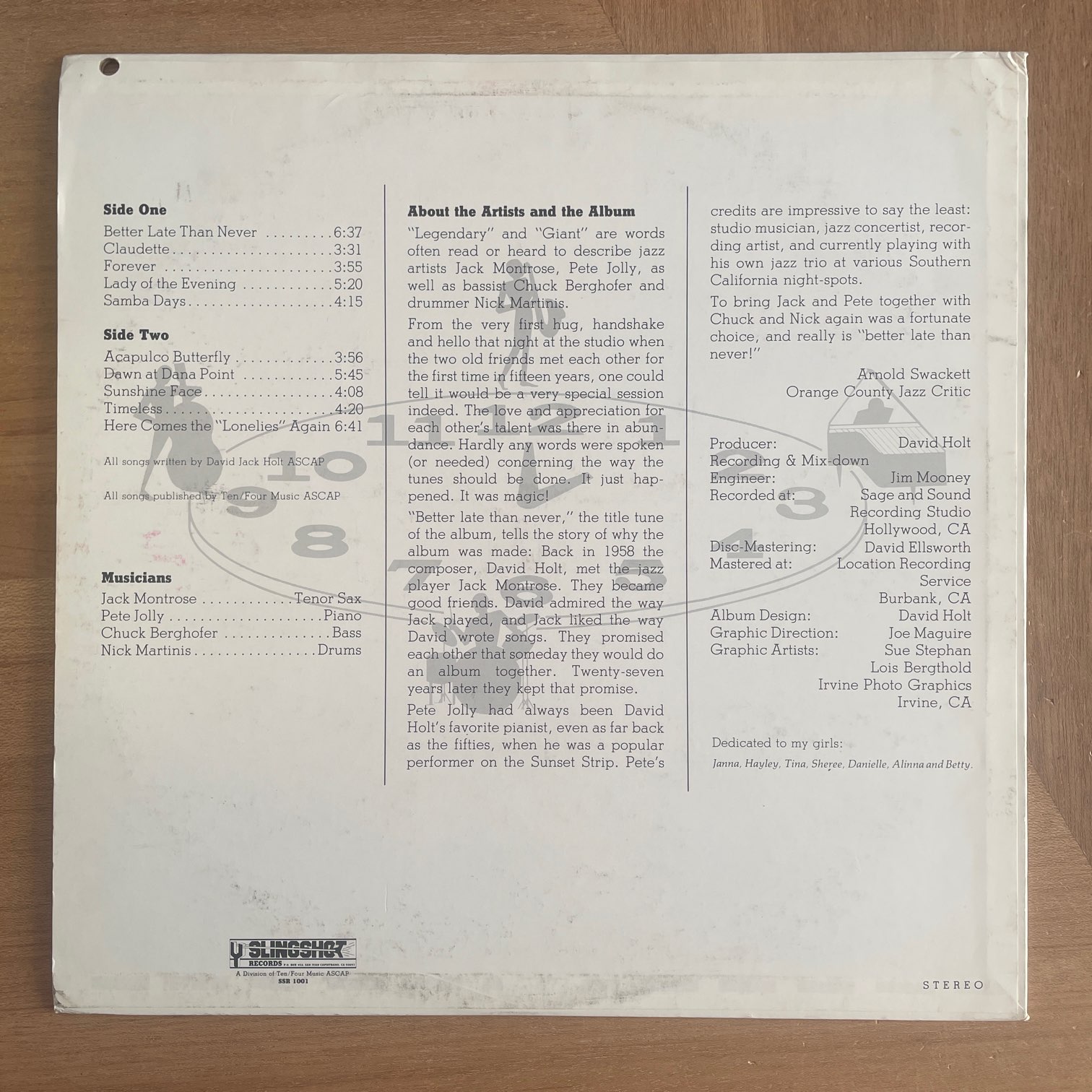 JACK MONTROSE-PETE JOLLY QUARTET / BETTER LATE THAN NEVER / SSR1001 US ORIG. PRIVATE PRESS
