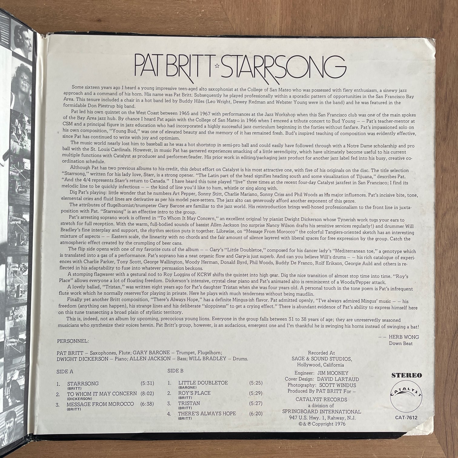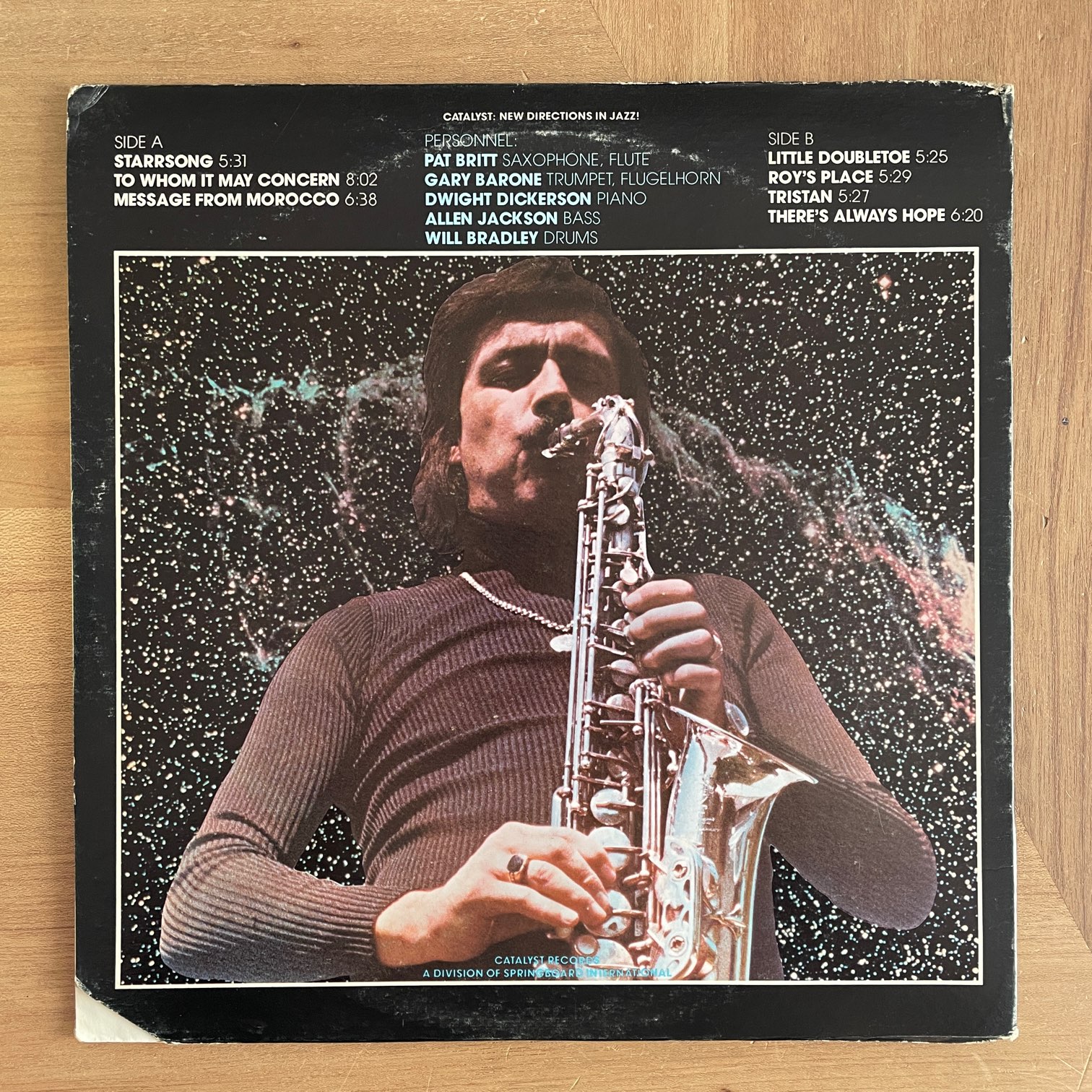 PAT BRITT / STARRSONG PAT BRITT / STARRSONG / CAT-7612 US ORIG. 76年catalystからリリースされたアメリカ・オリジナル。アメリカのサックス奏者によるハードバップ。GARY BARONE,DWIGHT DICKERSON,ALLEN JACKSON,WILLBRADLEYによるクインテット編成。CATALYSTってレーベルからリリースってとこも期待してしまう。 盤質:B+ ジャケット:カット盤、天縁潰れ、軽度リングウェア、縁スレ、角潰れ。 試聴 STARRSONG https://recordshopgg.com/wp-content/uploads/2026/01/PAT-BRITT-1.m4a LITTLE DOUBLETOE https://recordshopgg.com/wp-content/uploads/2026/01/PAT-BRITT-2.m4a (商品コード: 5382) 在庫状態 : 在庫有り ¥2,500(税込) 数量