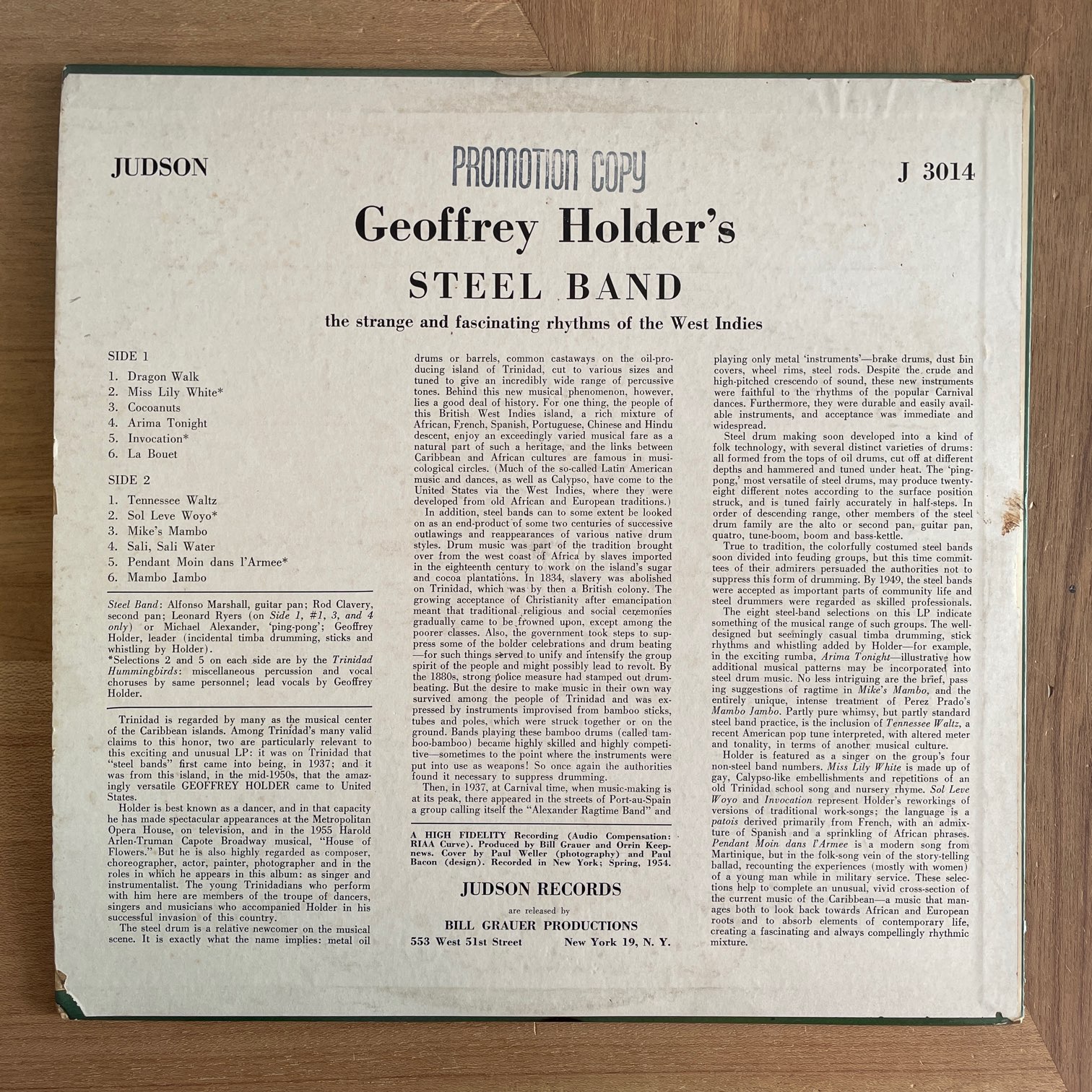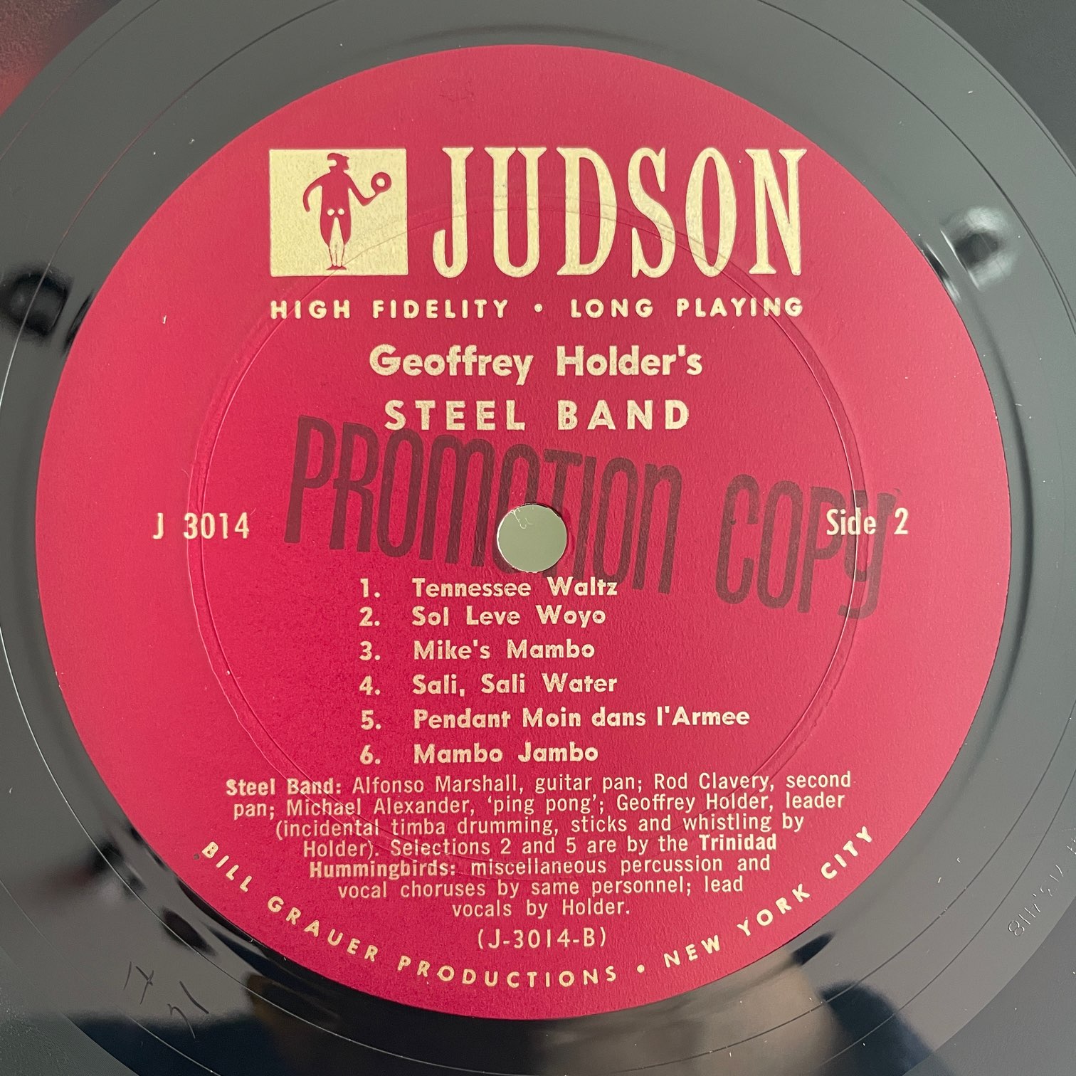 58年judsonからリリースされたアメリカ・オリジナル・モノ・深溝あり。ナイスジャケットのスティール・パンもの。12曲中4曲ボーカル入りのインスト・アルバム。スティールパンは多くなくて2~3つ程度で演奏されていて、そこにパーカッションが時々入るような小編成のアルバム。