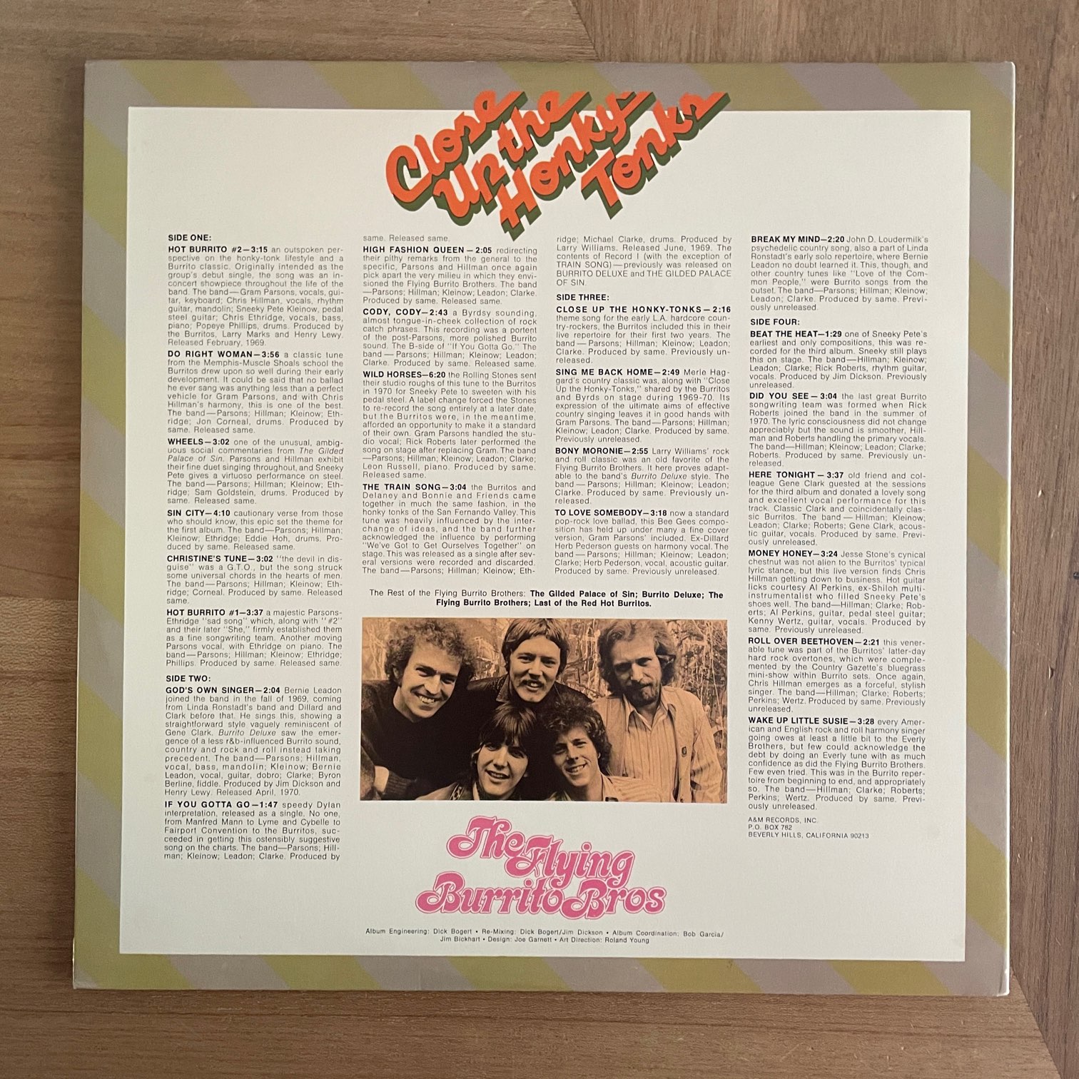 THE FLYING BURRITO BROS. / CLOSE UP THE HONKY TONKS 1968-1972 THE FLYING BURRITO BROS. / CLOSE UP THE HONKY TONKS 1968-1972 / SP-3631 US ORIG. 74年A&Mからリリースされたアメリカ・オリジナル。GRAM PARSONSとCHRIS HILLMANがBYRDSを脱退して始めたカントリー・ロック・バンドのベスト盤。ディラン、ストーンズなどのカヴァーも収録されてます。 盤質:A- ジャケット:概ね綺麗です。 試聴 HOT BURRITO #1 https://recordshopgg.com/wp-content/uploads/2026/01/CLOSE-UP-THE-HONKY-TONKS1.m4a WILD HORSES https://recordshopgg.com/wp-content/uploads/2026/01/CLOSE-UP-THE-HONKY-TONKS2.m4a (商品コード: 5421) 在庫状態 : 在庫有り ¥1,500(税込) 数量