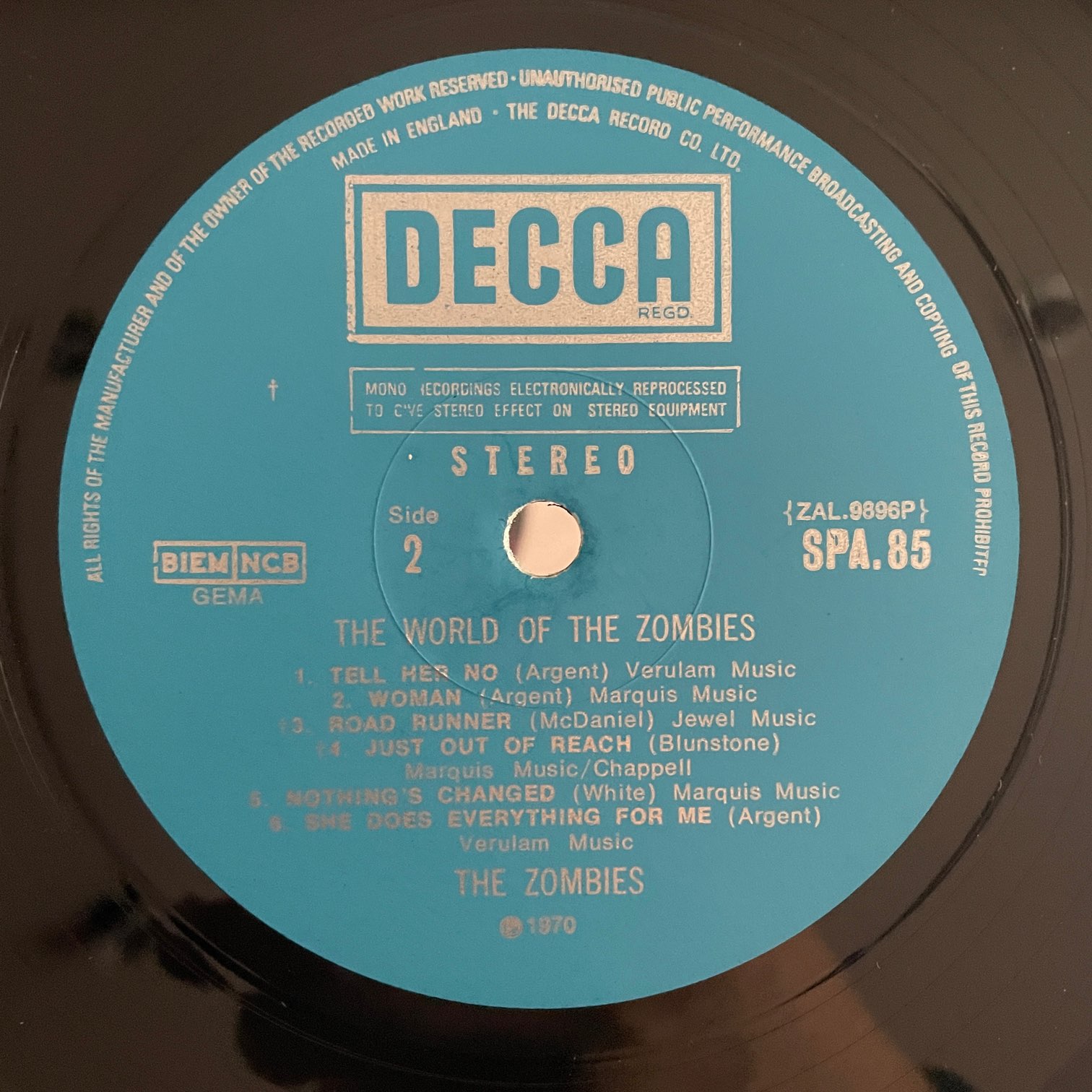 70年deccaからリリースされたイギリス・オリジナル。1stと同じ写真を使ってるからややこしくなるんですが、こちらはデッカ時代の編集盤。ヒット曲「SHE’S NOT THERE」ももちろん収録されてる一枚。