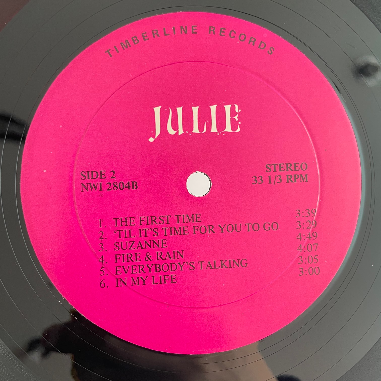 JULIE McCARL / JULIE JULIE McCARL / JULIE / NWI2804 US ORIG. PRIVATE PRESS 72年timberline recordsからリリースされたアメリカ・オリジナル・自主盤。基本的にはギターの弾き語りですが、2人のサポートが参加してます。しかし、この選曲は70年代SSWベストのような選曲になってますね。 盤質:B(スレ・傷あり時々チリ・パチ入ることあり。B面反り) ジャケット:シュリンク付き、角・取り出し口軽度スレ。 試聴 BO JANGLES https://recordshopgg.com/wp-content/uploads/2026/02/JULIE1.m4a EVERYBODY’S TALKING https://recordshopgg.com/wp-content/uploads/2026/02/JULIE2.m4a (商品コード: 5448) 在庫状態 : 売り切れ 只今お取扱い出来ません