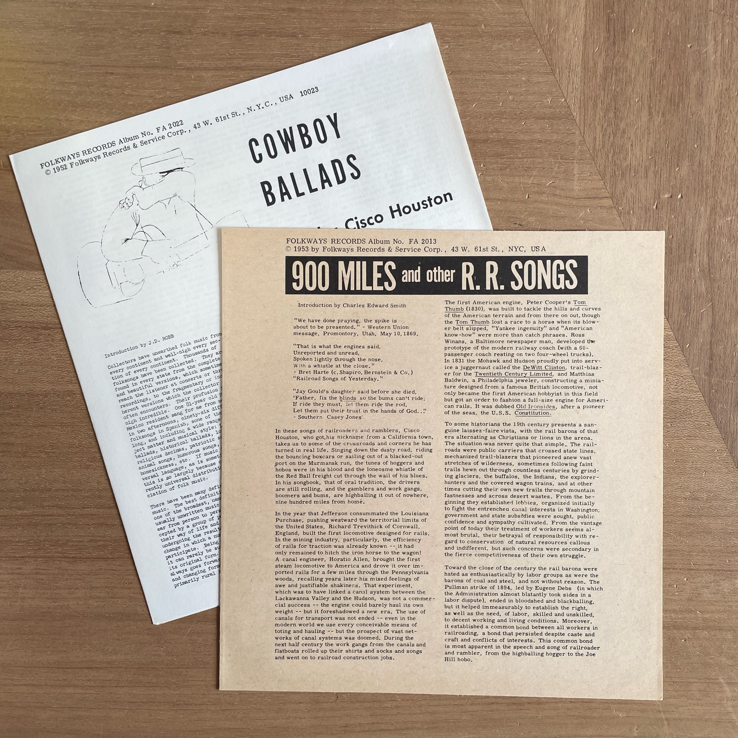 CISCO HOUSTON / COWBOY BALLADS & 900 MILES AND OTHER R.R.SONGS / FA2022, FA2013 US REISSUE