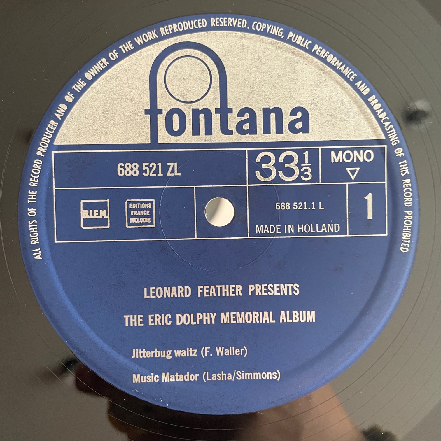 ERIC DOLPHY / MEMORIAL ALBUM / 688521ZL NETHERLANDS ORIG. MONO