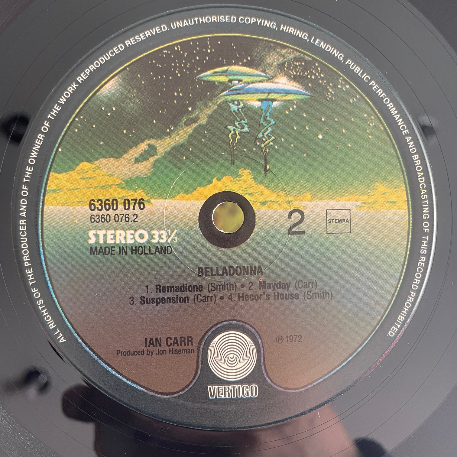 IAN CARR / BELLADONNA IAN CARR / BELLADONNA / 6360076 NETHERLANDS REISSUE 70年代VERTIGOからリリースされたオランダ盤。NUCLEUS解散後のソロ作品ですが、参加メンバーはほぼNUCLEUSでALAN HOLDSWORTHが参加してます。フュージョンとロックが混ざり合って、エレクトリック・マイルスに通じる内容は72年録音。 盤質:B+(A面冒頭に小傷あり10回ほどプチ音入りますが、他は綺麗) ジャケット:内ジャケ・表に軽度しみ。角に軽度スレ。 試聴 BELLADONNA(A-1傷部分) https://recordshopgg.com/wp-content/uploads/2026/02/IAN-CARR1.m4a REMADIONE https://recordshopgg.com/wp-content/uploads/2026/02/IAN-CARR2.m4a (商品コード: 5504) 在庫状態 : 在庫有り ¥4,800(税込) 数量