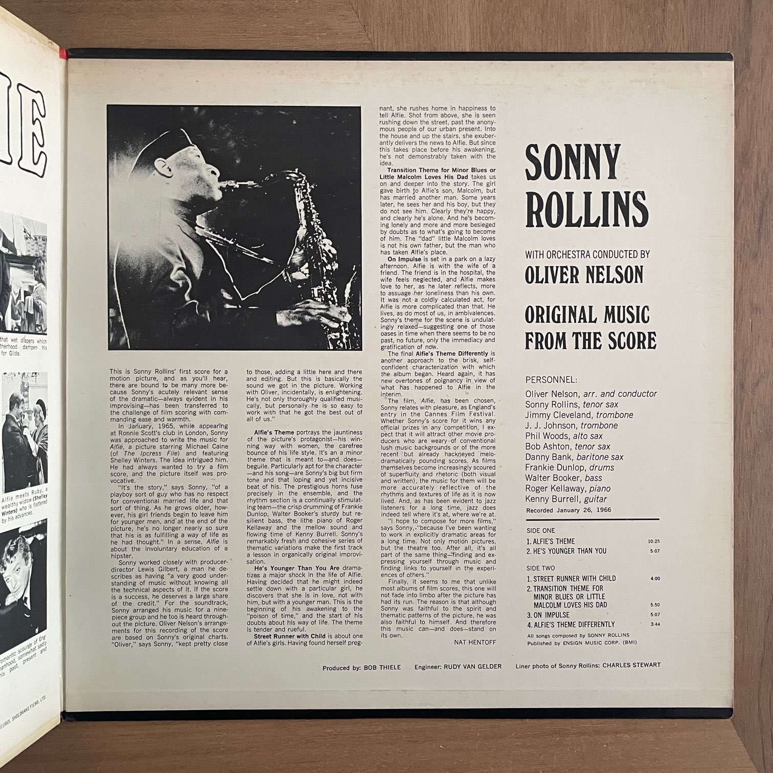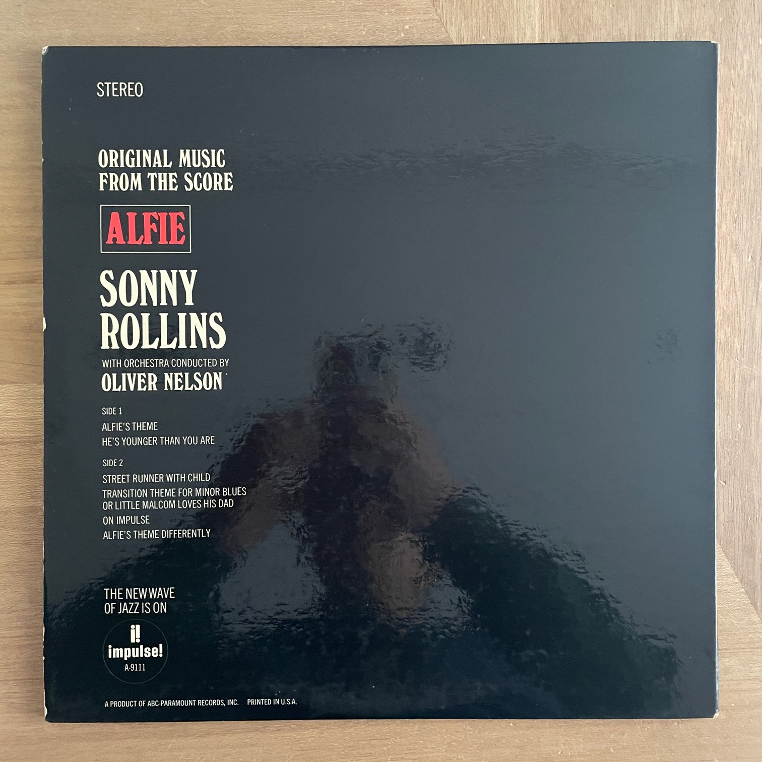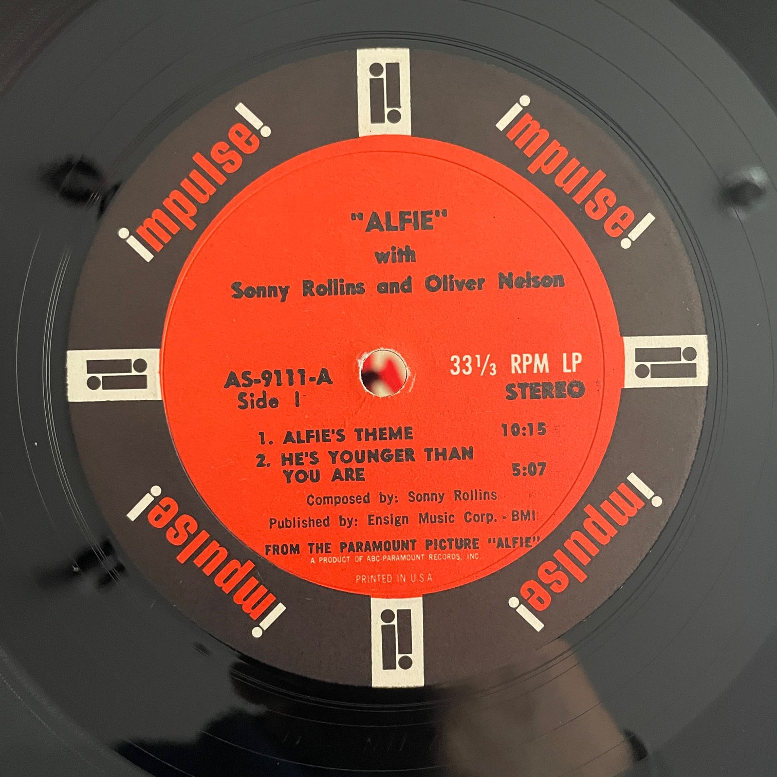 66年impuls!からリリースされたアメリカ・ステレオ・vangelder刻印あり・赤顔ジャケ。OLVER NELSONが指揮をとって、ロリンズが気持ちよく吹いてる映画「ALFIE」のサントラ。J.J.JOHNSON,PHIL WOODS,KENNY BURRELLなどが参加。高音質としても知られてる赤顔ジャケ盤でレコードで感じてください。