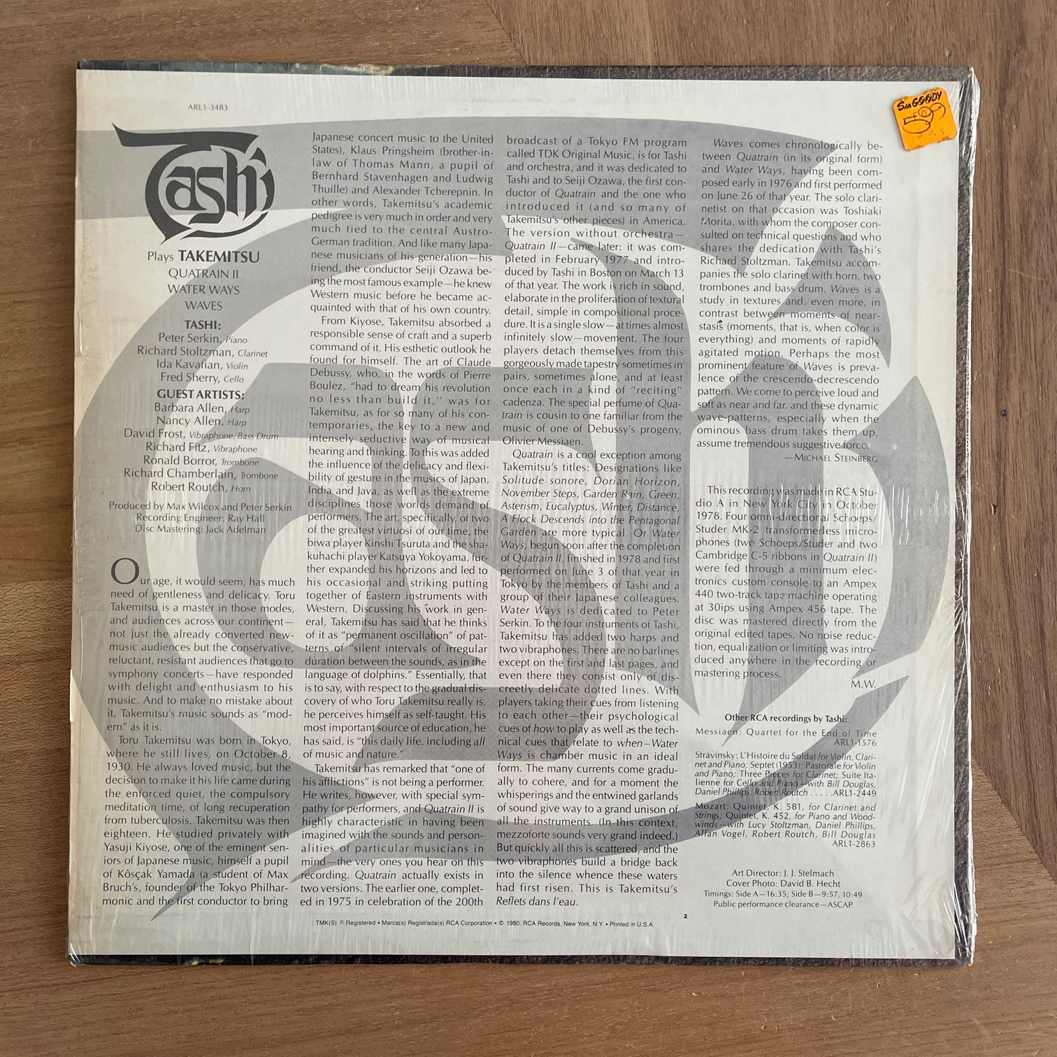 80年RCAからリリースされたアメリカ・オリジナル。武満徹の曲をTASHIが演奏するという内容の現代音楽。TASHIはピアニストのPeter Serkin率いる4人からなる室内楽グループで、このアルバムにはゲストで7人の演者が参加してます。長岡鉄男セレクト盤。