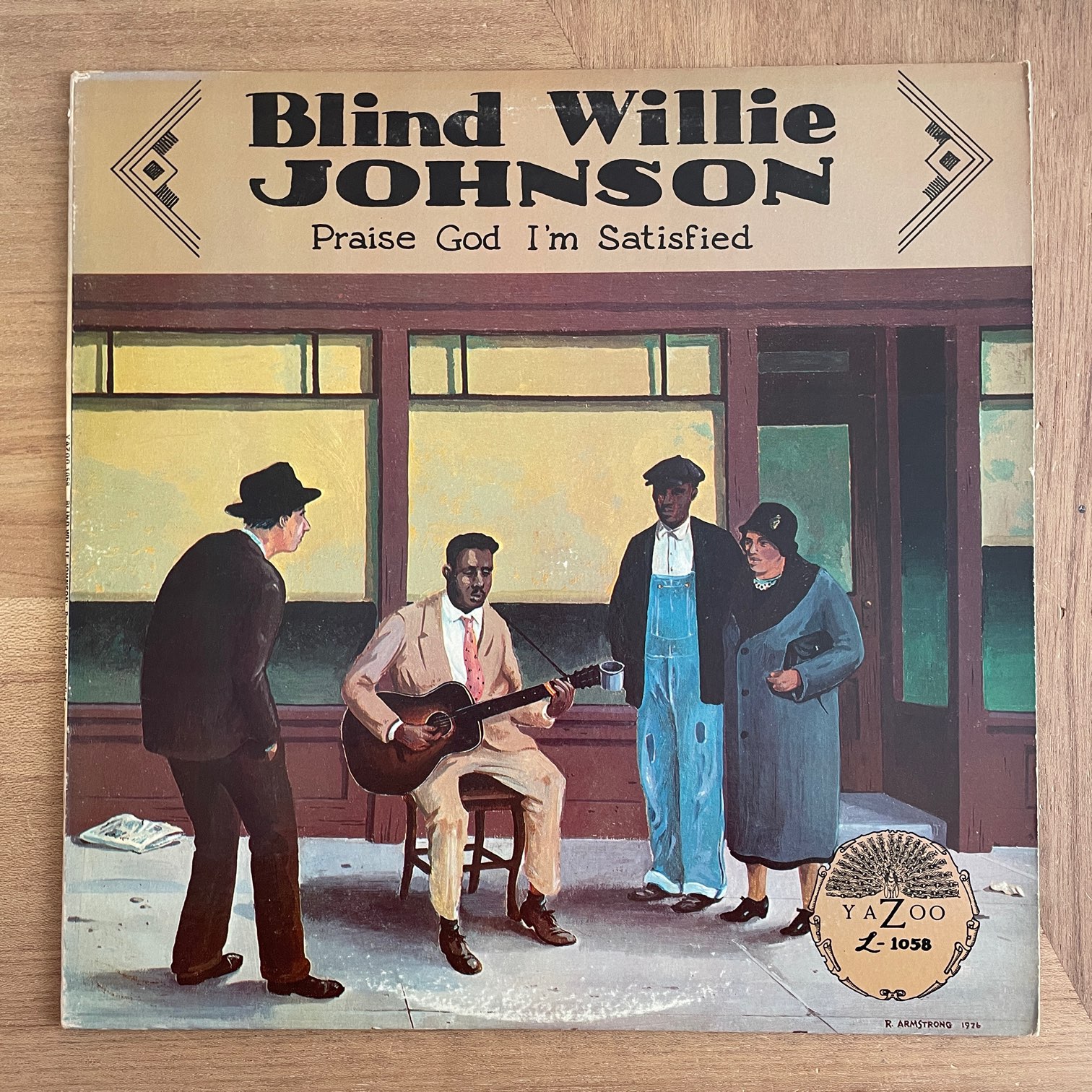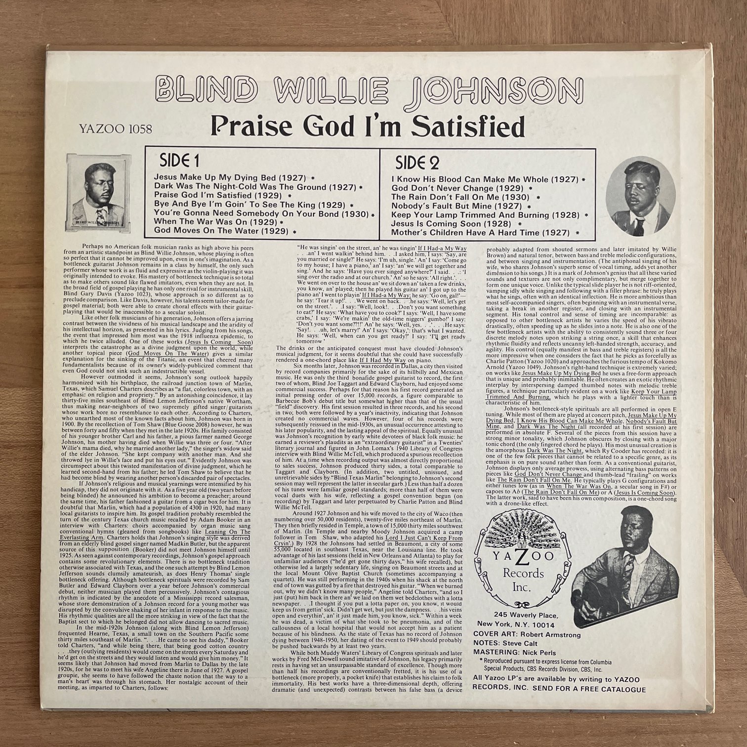 80年代yazooからリリースされたアメリカ・マルチカラーラベルの再発盤。ダミ声とスライドギターが特徴的な盲目のブルースマンで1920年代に活躍。「DARK WAS THE NIGHT-COLD WAS THE GROUND」は77年宇宙に打ち上げられたボイジャー探査機に搭載されたボイジャーレコードにモーツァルトやベートーベンと一緒に収録された1曲。20年代に録音されたSP盤からの盤起こしですのでチリノイズは元々です。ロバート・アームストロングのジャケ画も最高。