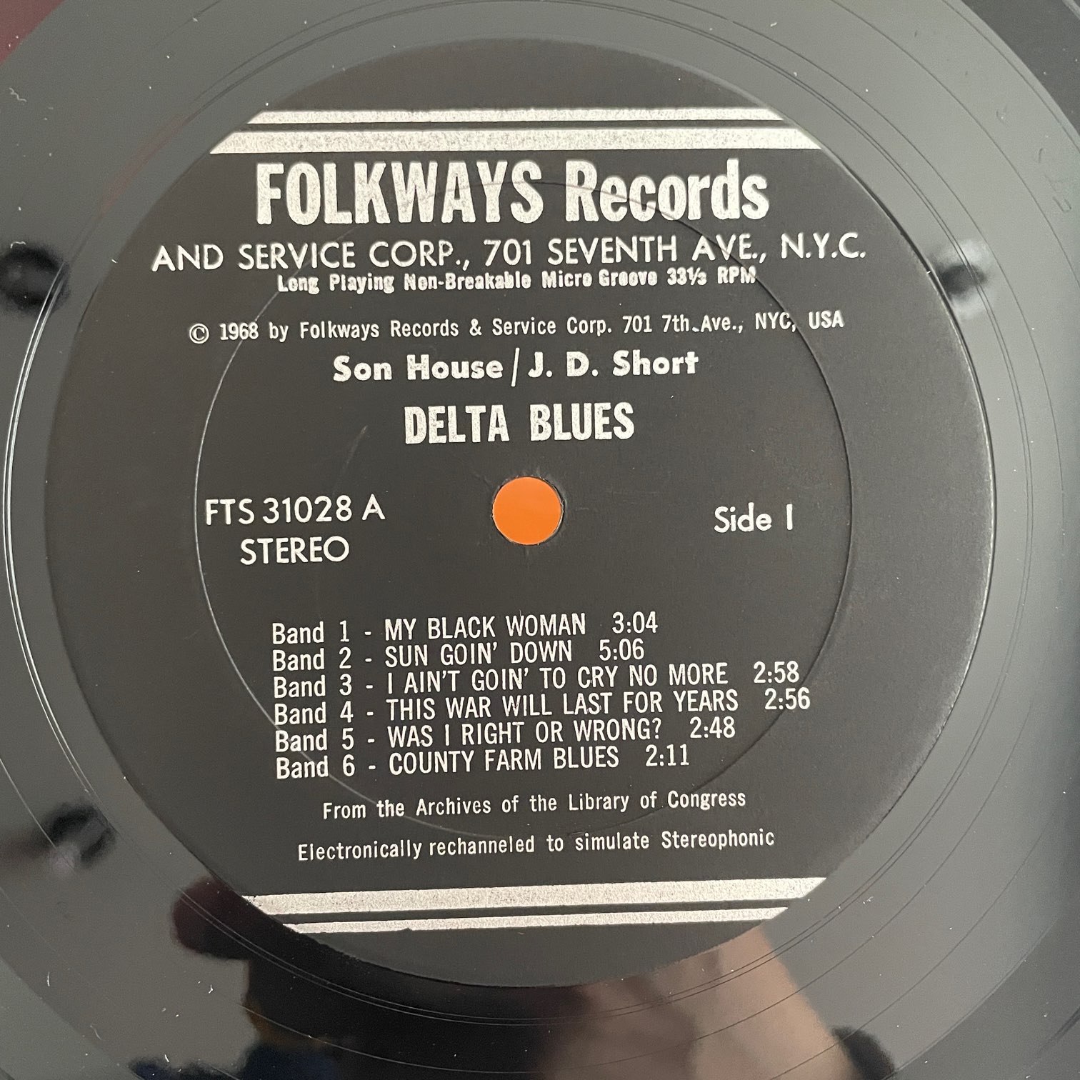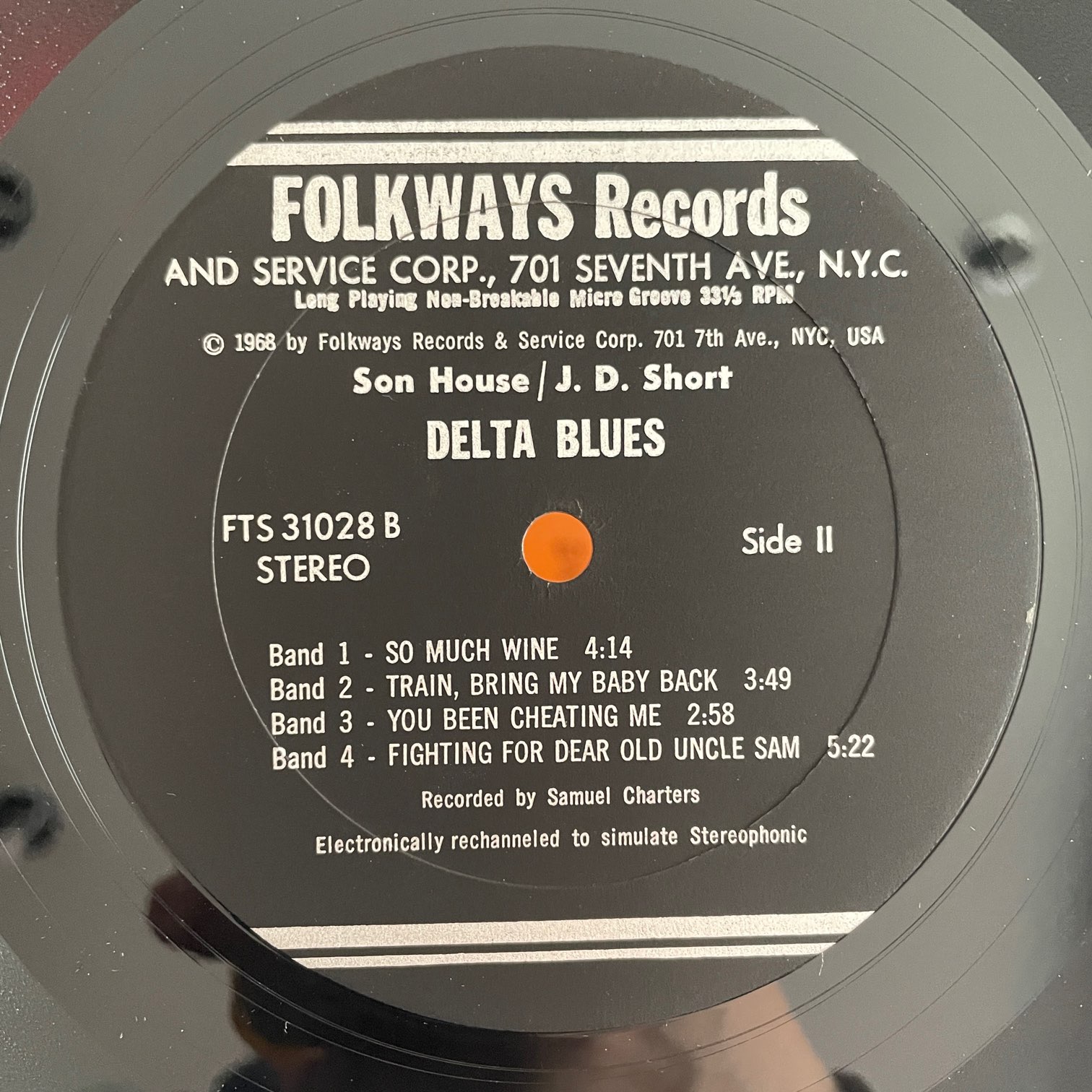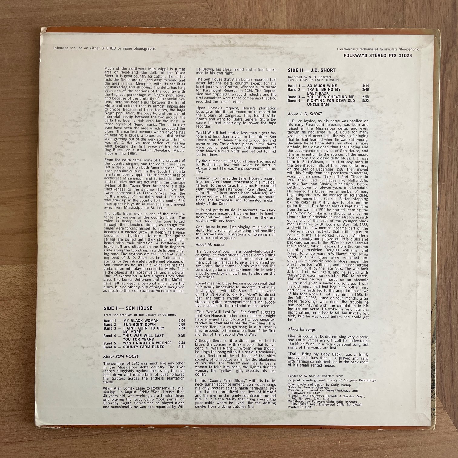 68年FOLKWAYSからリリースされたアメリカ・再発。63年オリジナルリリースのとはジャケ違い。A面はSON HOUSE,B面はJ.D.SHORTのブルースでセントルイス録音盤。しかし、ブルースでよく聞かれるこもったような音がしてますが、これはスタジオじゃなくて図書館で録音したからだと思われます。