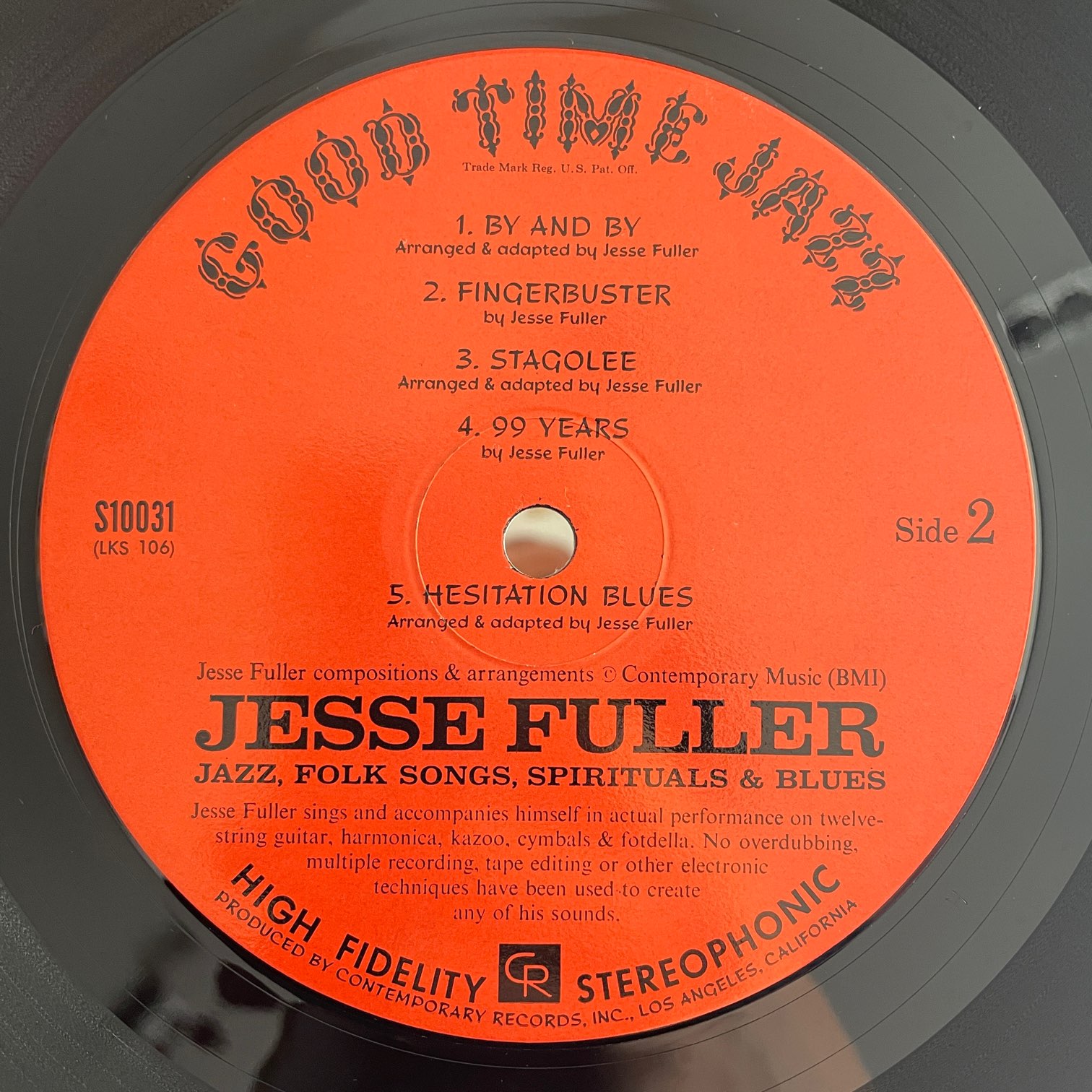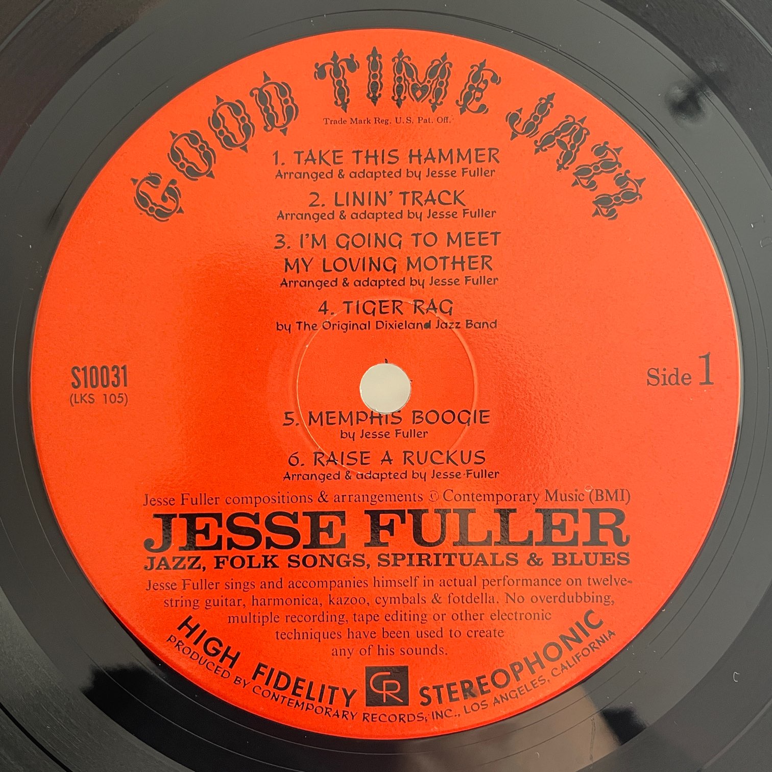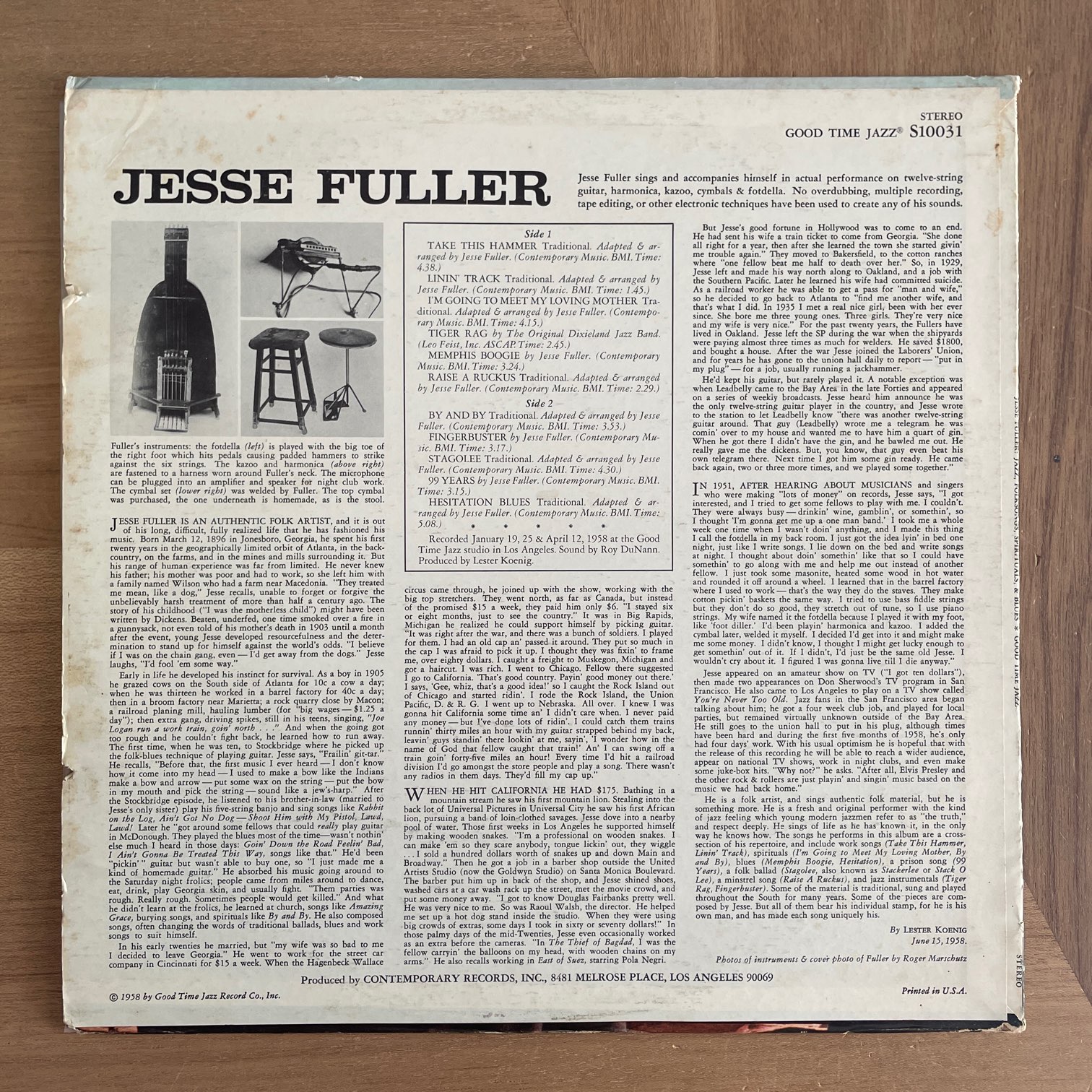 JESSE FULLER / JAZZ, FOLK SONGS, SPIRITUALS & BLUES JESSE FULLER / JAZZ, FOLK SONGS, SPIRITUALS & BLUES / S10031 US REISSUE 70年代?good time jazzからリリースされたアメリカ・再発盤。ギター・ボーカルはもちろんのことベース、ハープ、打楽器まで元祖1人バンドのサンフランシスコのブルースマン、ジェシ・フラーの58年リリース盤。 盤質:B+(軽度反り) ジャケット:リングウェア、縁スレ、角潰れ、取り出し口凹み傷2箇所あり(裏ジャケ写真で確認できます)、しみ。 試聴 TAKE THIS HAMMER https://recordshopgg.com/wp-content/uploads/2026/02/JESSE-FULLER1.m4a BY AND BY https://recordshopgg.com/wp-content/uploads/2026/02/JESSE-FULLER2.m4a (商品コード: 5524) 在庫状態 : 在庫有り ¥1,800(税込) 数量