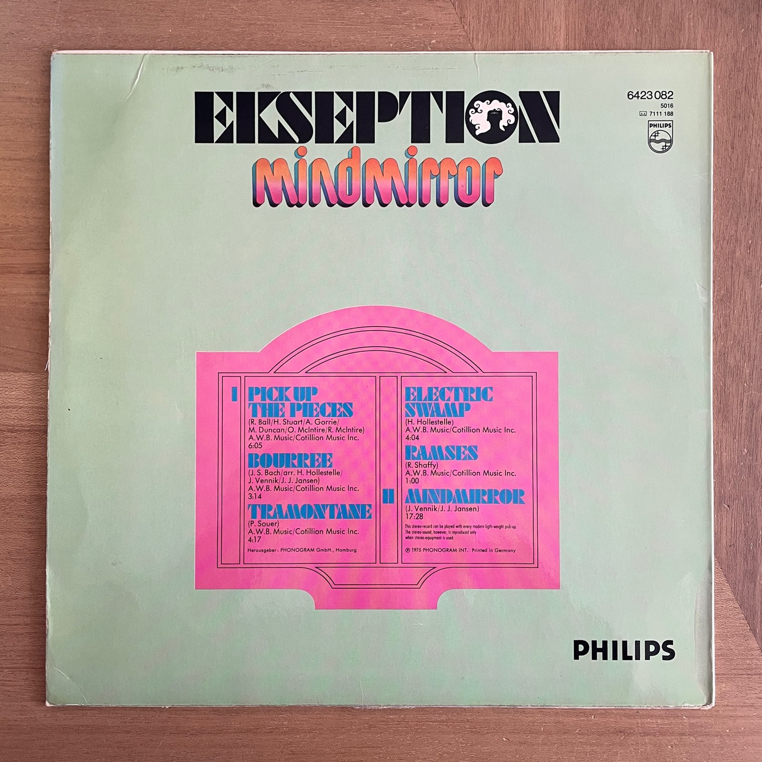 EKSEPTION / MINDMIRROR EKSEPTION / MINDMIRROR / 6423082 GERMANY ORIG. 75年PHILIPSからリリースされたドイツ・オリジナル。オランダのジャズ・ロック〜フュージョン・バンドの75年作。AVERAGE WHITE BANDの「PICK UP THE PIECES」のナイスカヴァーから始まるアルバムで、B面は17分を超えるタイトル曲の1曲で勝負してます。 盤質:B+(チリつくとこあり) ジャケット:コーティングジャケ、縁しわ、折れジワ、3cm底抜け、軽度角潰れ。 試聴 PICK UP THE PIECES https://recordshopgg.com/wp-content/uploads/2026/02/EKSEPTION1.m4a TRAMONTANE https://recordshopgg.com/wp-content/uploads/2026/02/EKSEPTION2.m4a (商品コード: 5535) 在庫状態 : 在庫有り ¥1,800(税込) 数量