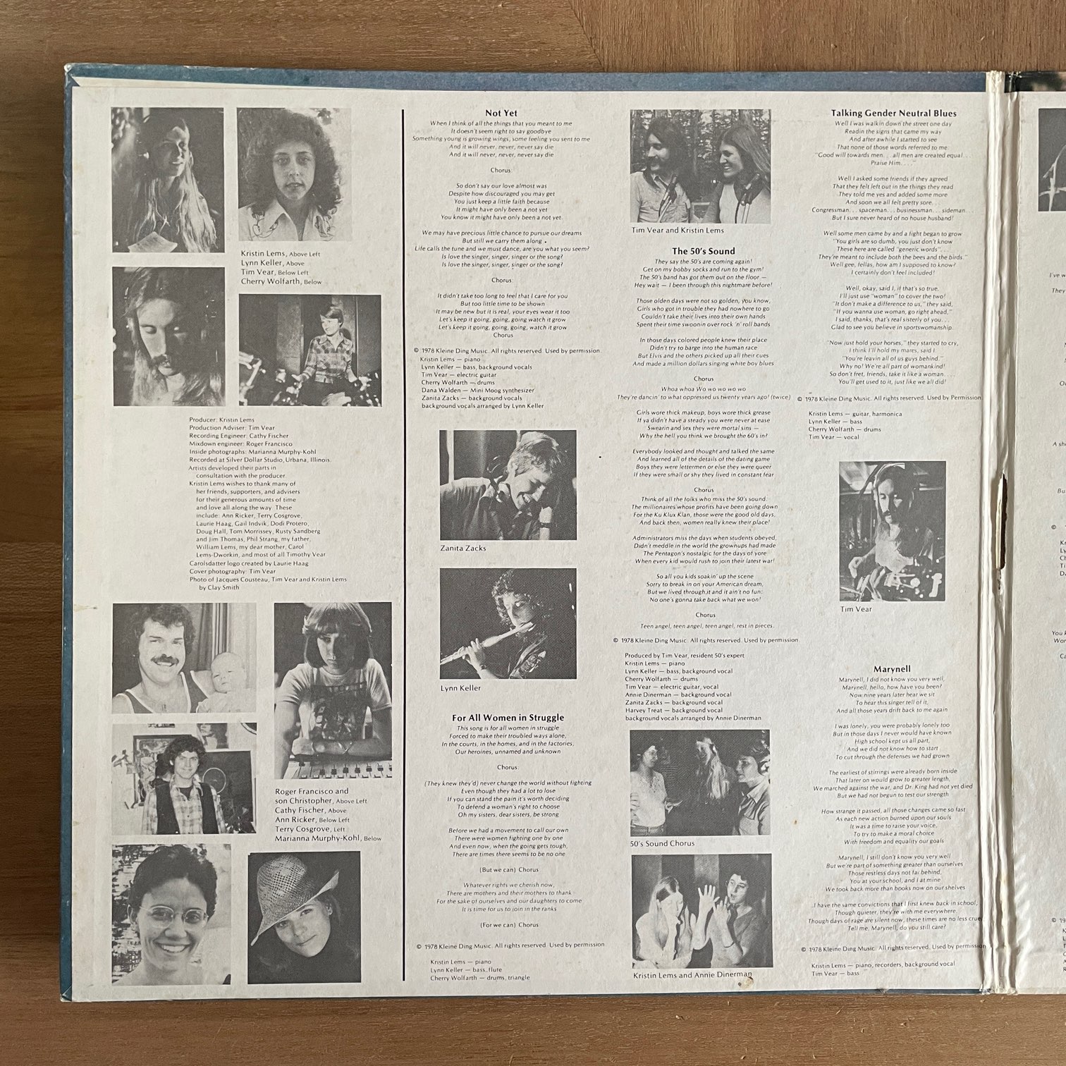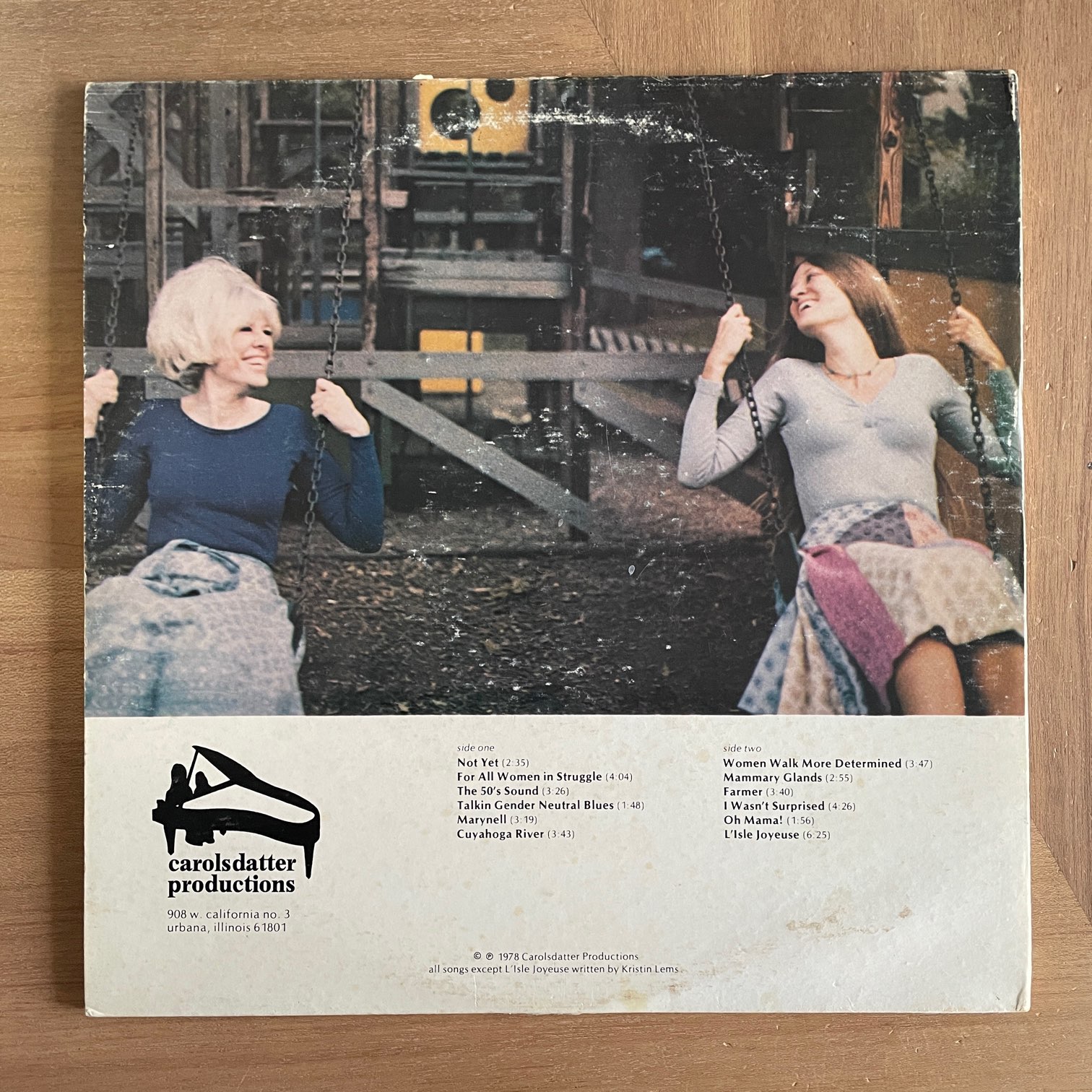 78年carolsdatter productionsからリリースされたアメリカ・オリジナル・自主盤。イリノイ州で活動してたSSWによる1枚目。女性のことを歌っている曲が多いですが、フェミニスト活動もしており音楽はその一環だったようです。基本フォーキーなサウンドで、戦前スウィングや50’sなどを取り入れたような曲もあります。なぜかラストだけドビュッシーのピアノ弾いてます。