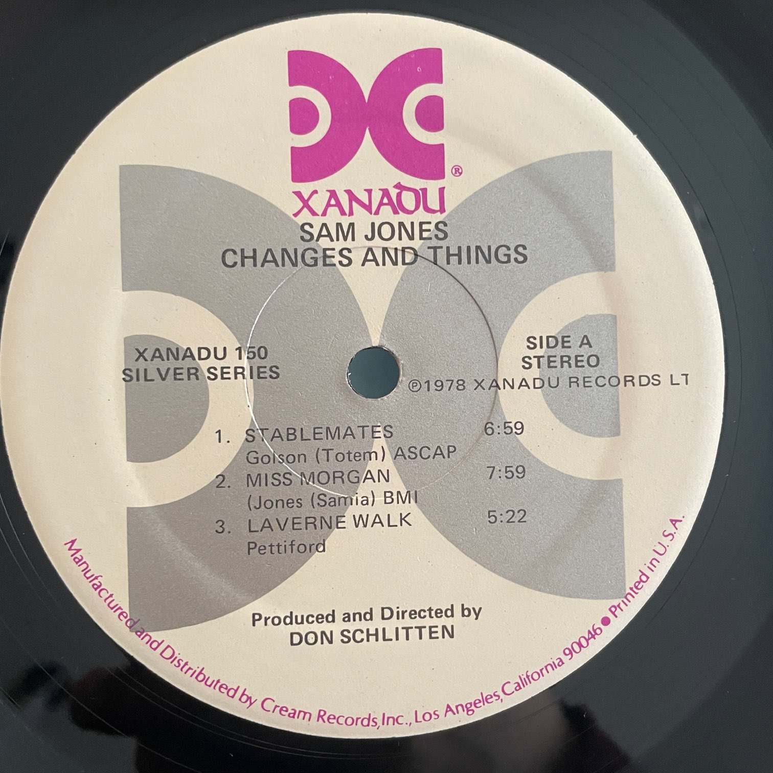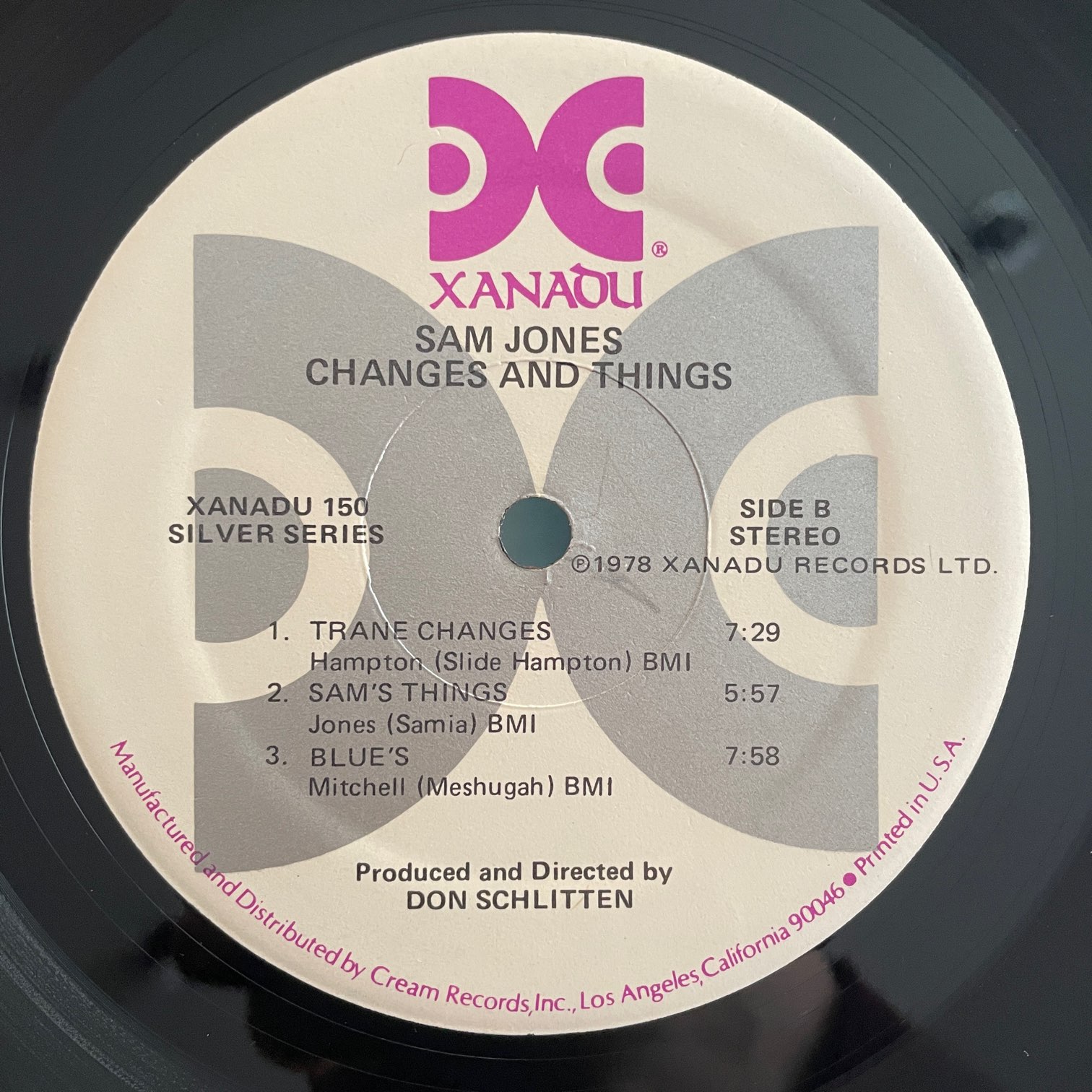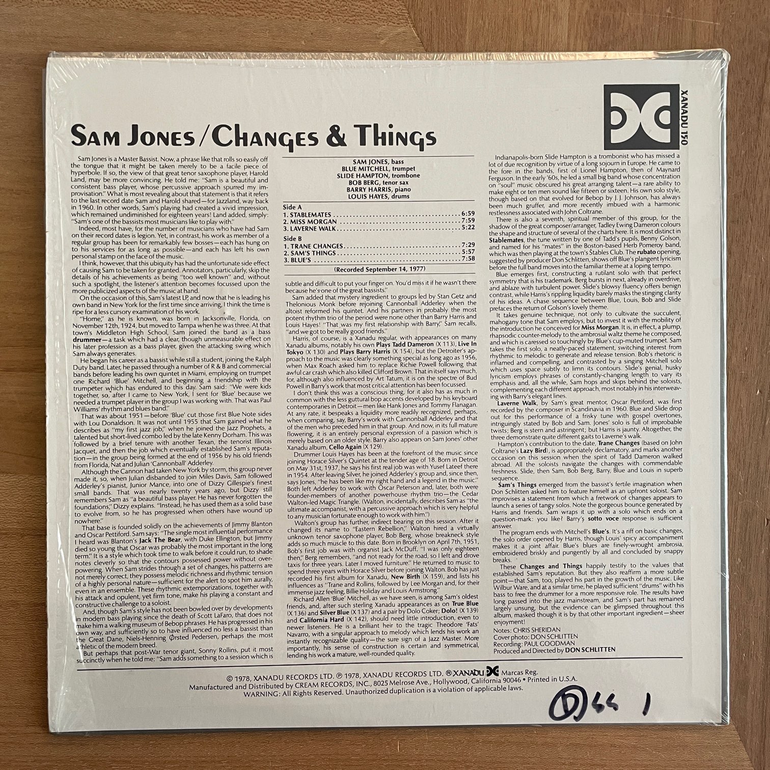 SAM JONES / CHANGES & THINGS SAM JONES / CHANGES & THINGS / XANADU150 US ORIG. 78年xanaduからリリースされたアメリカ・オリジナル。ハードバップ期に活躍・注目されたベーシストの1人サム・ジョーンズの一枚。BLUE MITCHELL(tp)、SLIDE HAMPTON(tb)、BOB BERG(ts)の3人が最高です。彼らを乗せるBARRY HARRIS(p)、LOUIS HAYES(ds)もお見事なハードバップ! 盤質:A- ジャケット:シュリンクつき、取り出し口軽度スレ。 試聴 STABLEMATES https://recordshopgg.com/wp-content/uploads/2026/02/SAM-JONES1.m4a TRANE CHANGES https://recordshopgg.com/wp-content/uploads/2026/02/SAM-JONES2.m4a (商品コード: 5563) 在庫状態 : 在庫有り ¥2,300(税込) 数量