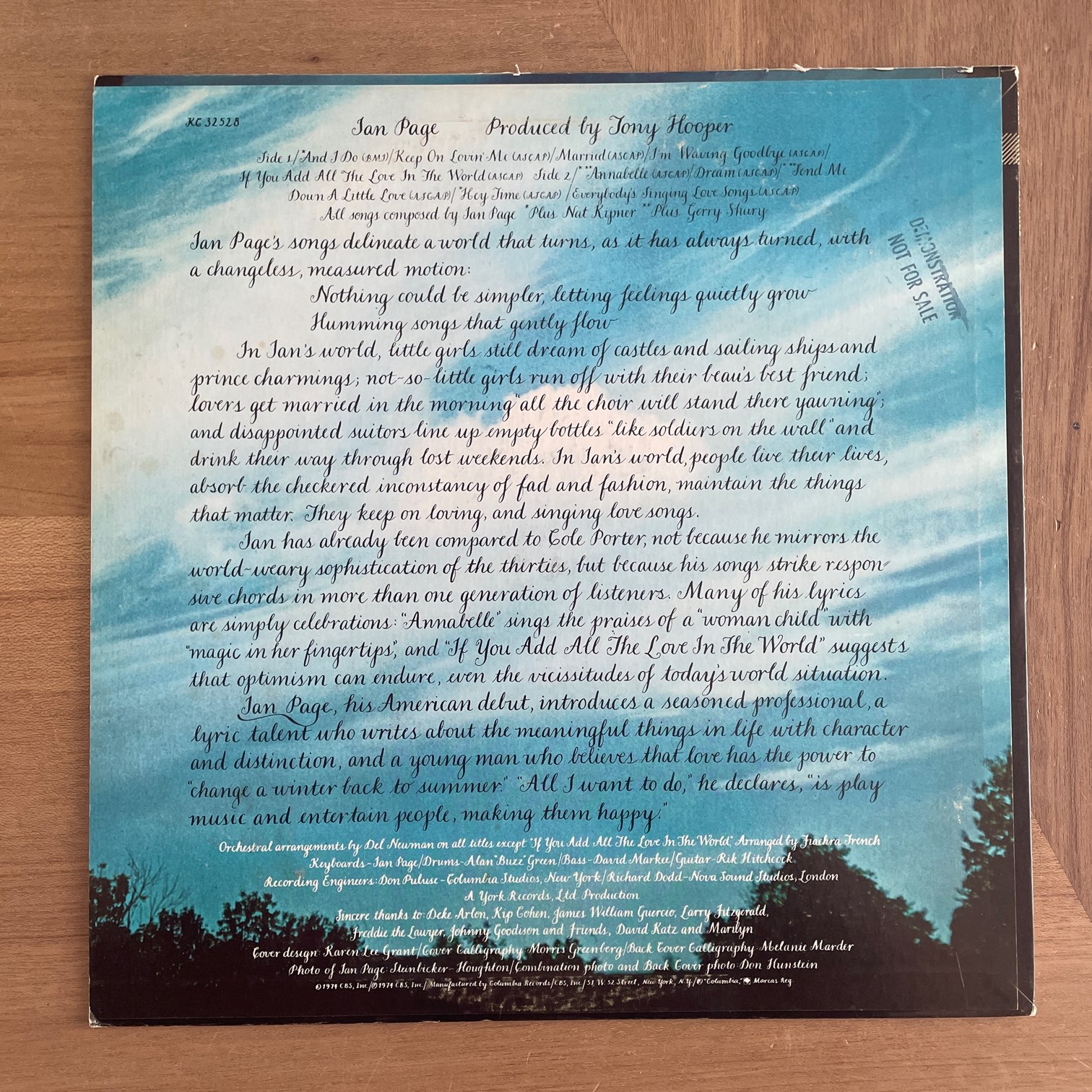 IAN PAGE IAN PAGE / KC32528 US ORIG. 74年columbiaからリリースされたアメリカ・オリジナル。イギリスのSSWだと思うんですが詳細わからず。STRAWBSのTONY HOOPERがPROD.しており、バックメンバーもイギリスのミュージシャンが揃ってます。イギリス人らしいメロデアスな曲を揃えた一枚。 盤質:A- ジャケット:天縁背から10cm抜け、背5cmヒビ、リングウェア、縁・角に軽度スレ。裏プロモスタンプ。 試聴 KEEP ON LOVIN’ ME https://recordshopgg.com/wp-content/uploads/2026/03/IAN-PAGE-1.m4a ANNABELLE https://recordshopgg.com/wp-content/uploads/2026/03/IAN-PAGE-2.m4a (商品コード: 5641) 在庫状態 : 在庫有り ¥1,500(税込) 数量