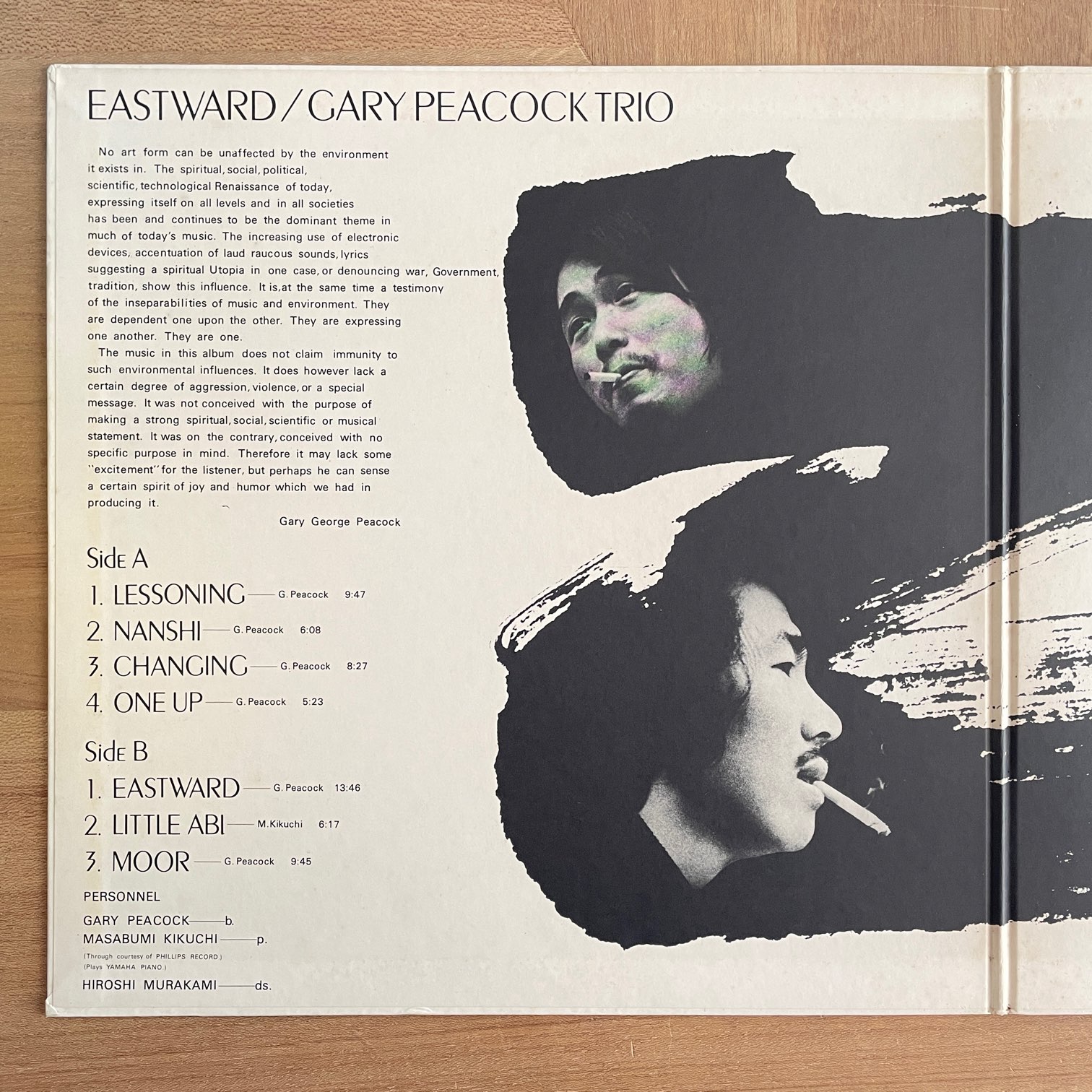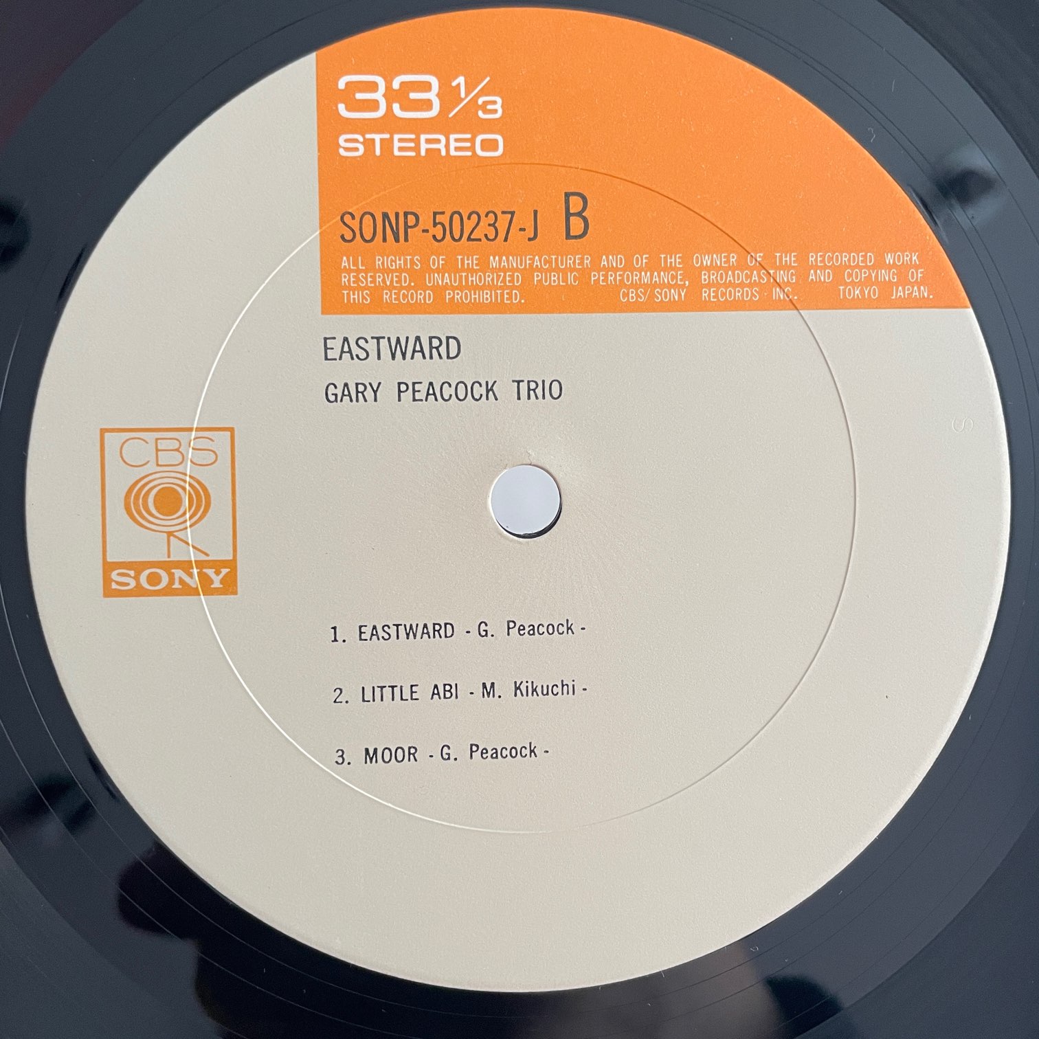 GARY PEACOCK TRIO / EASTWARD GARY PEACOCK TRIO / EASTWARD / SONP-50237J JP ORIG. 再入荷 70年日本のcbs/sonyからのリリース。エヴァンスやキースとも共演している世界的ベーシスト、ゲイリー・ピーコックとピアニスト・菊地雅章とドラムス・村上寛のトリオ。1曲菊地さんのオリジナルですが、他は全てGARY作。 盤質:A- ジャケット:両面・内ジャケにシミ。帯・ライナーなし。 試聴 NANSHI https://recordshopgg.com/wp-content/uploads/2026/03/GARY-PEACOCK-1.m4a LITTLE ABI https://recordshopgg.com/wp-content/uploads/2026/03/GARY-PEACOCK-2.m4a (商品コード: 5672) 在庫状態 : 売り切れ 只今お取扱い出来ません